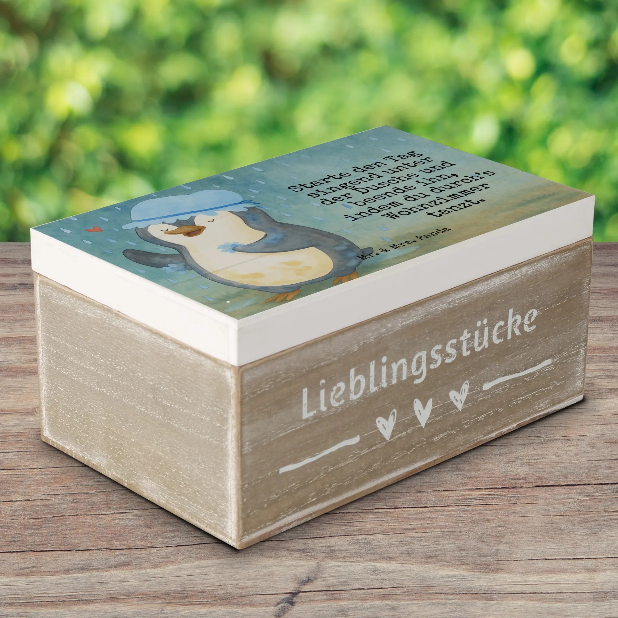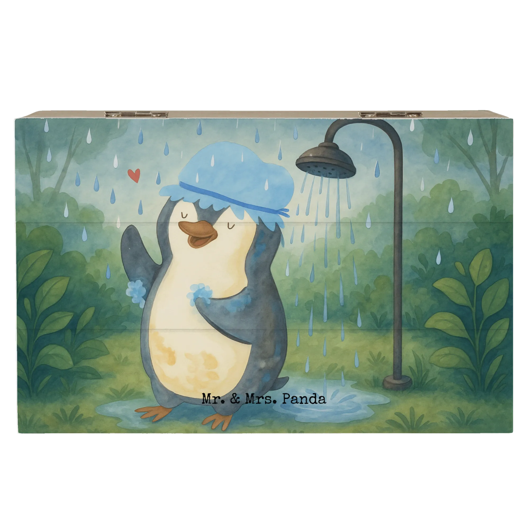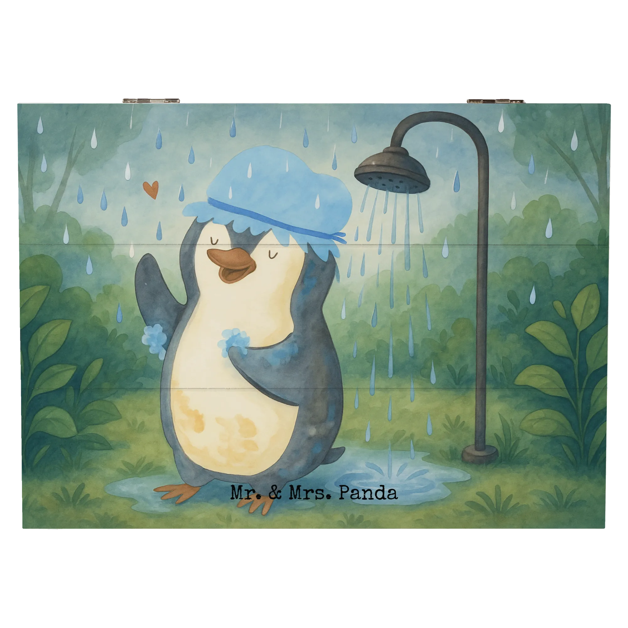 Holzkiste Pinguin Duschen Design Schatzkiste, Aufbewahrungsbox, Geschenkdose, Dekokiste, Erinnerungsbox, Erinnerungskiste, Holzkiste, Schatulle, XXL, Truhe, Geschenkbox, Kiste, Pinguin, Motivation, Neustart, Neuanfang, duschen, Lebensmotto, Dusche, glücklich sein, Pinguine