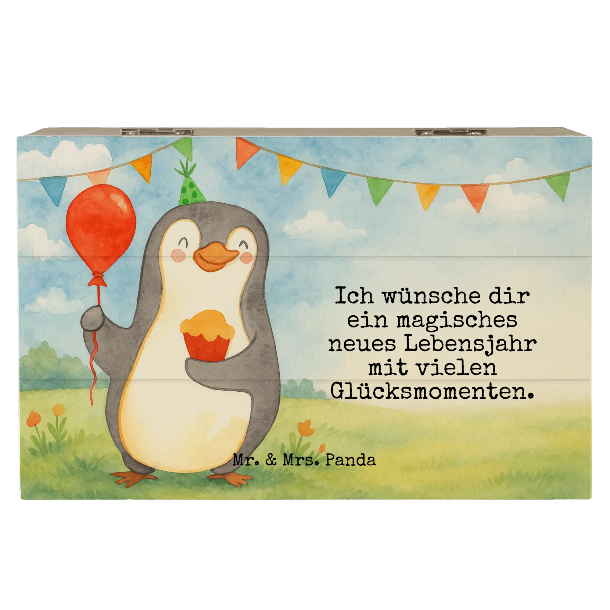 Holzkiste Pinguin Geburtstag Design - 22 x 15 cm - mit Spruch