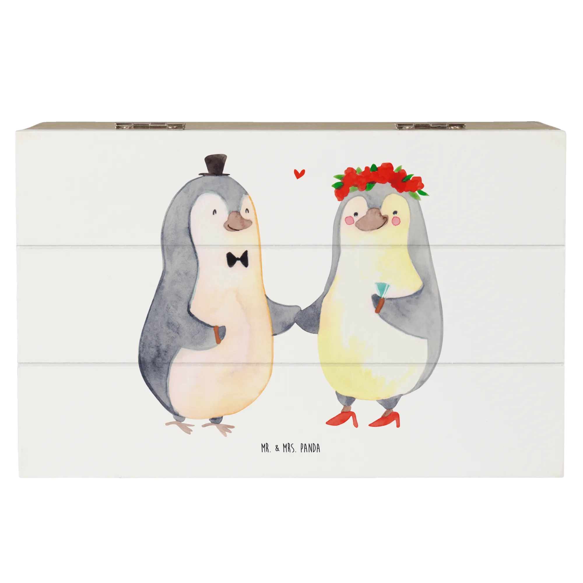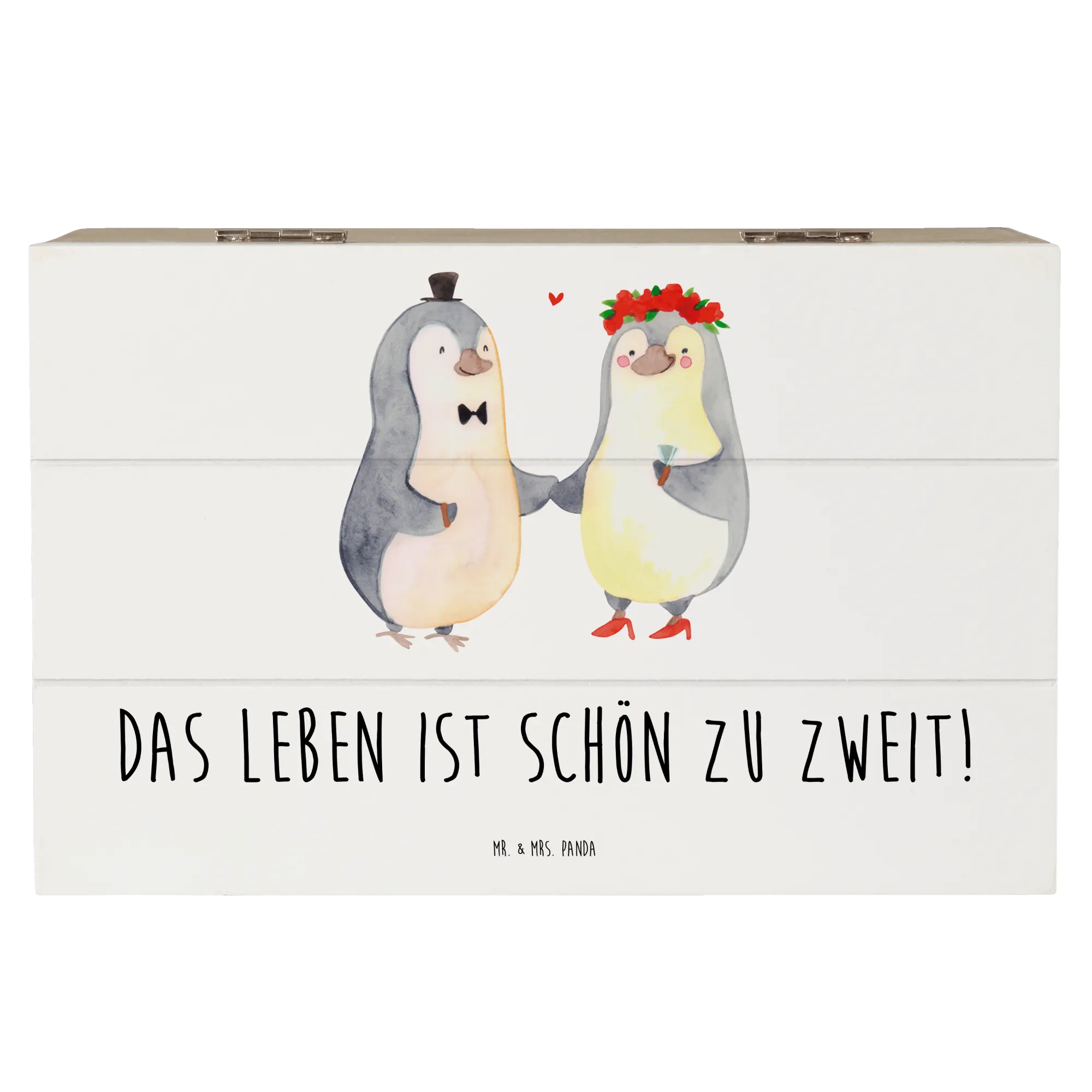 Holzkiste „Pinguin Heirat“ – das perfekte Liebesgeschenk von Mr. & Mrs. Panda