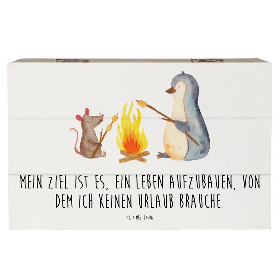 Entdecke unsere bezaubernde Holzkiste mit dem süßen Pinguin Lagerfeuer Motiv von Mr. & Mrs. Panda! Diese wunderschöne Holzkiste ist nicht nur ein auffälliges Dekorationsstück, sondern auch der perfekte Aufbewahrungsort für all deine wertvollen Schätze und Erinnerungen.