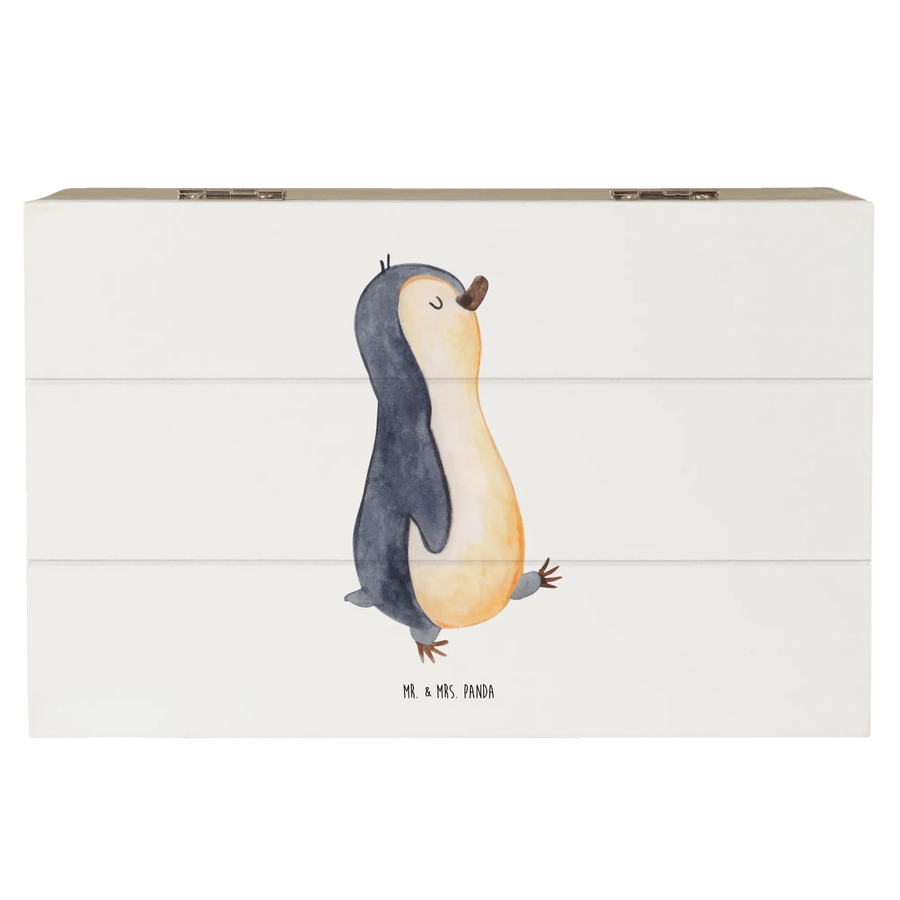 Entdecke die zauberhafte Holzkiste mit dem tollen Motiv "Pinguin marschierend" aus der Pinguin-Kollektion von Mr. & Mrs. Panda. Diese wunderschöne Kiste ist nicht nur ein idealer Aufbewahrungsort für all deine Schätze, sondern auch ein fantastisches Geschenk für zahlreiche Anlässe wie Geburtstage, Hochzeiten oder einfach nur so, um einem lieben Menschen eine Freude zu bereiten.