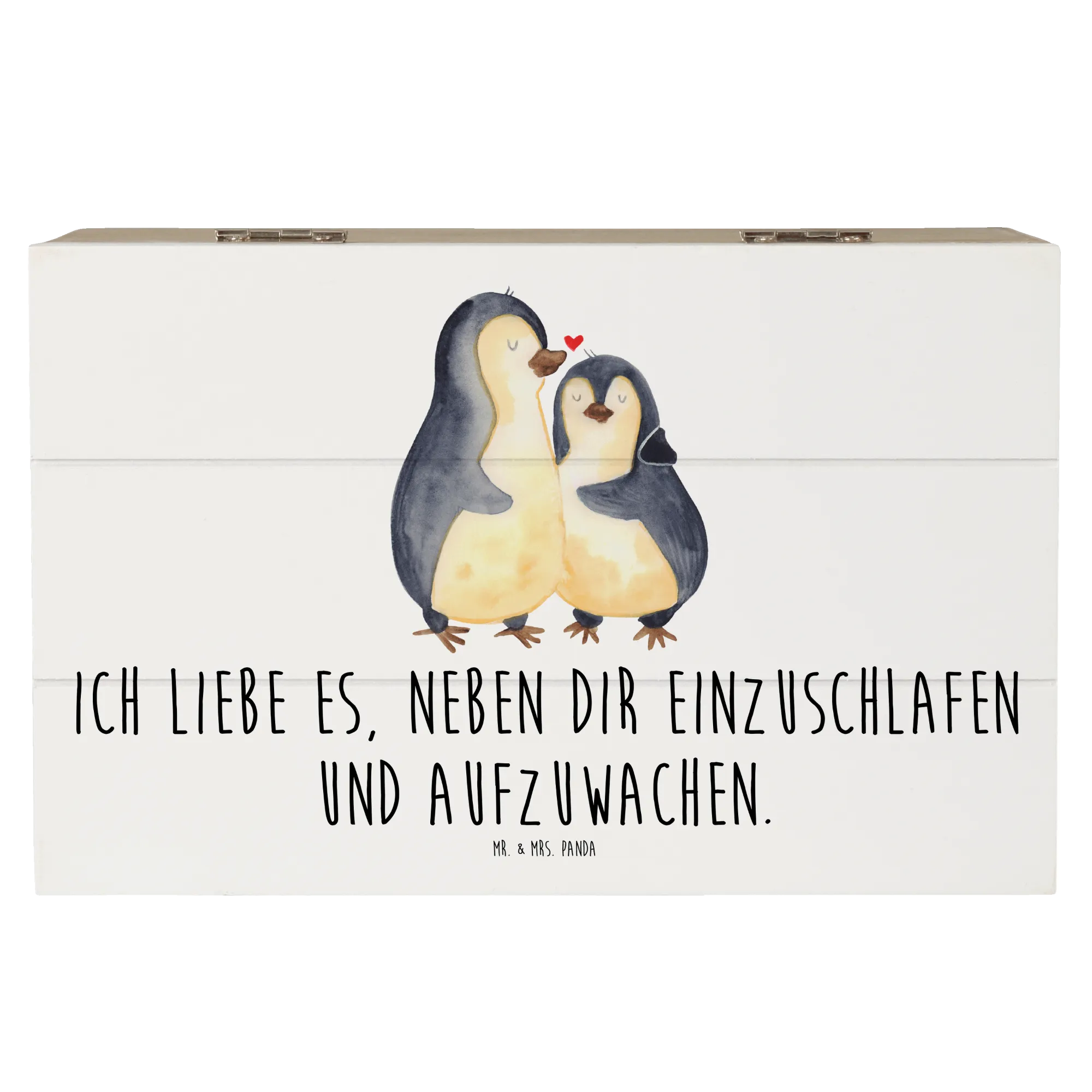 Die Holzkiste "Pinguine Einschlafen" aus der Kollektion Liebe von Mr. & Mrs. Panda ist das ideale Geschenk für alle Verliebten! Diese wunderschöne Holzkiste aus robuster Holzfaser bietet nicht nur Platz für deine wertvollen Erinnerungen, sondern begeistert auch mit ihrem zauberhaften Design.