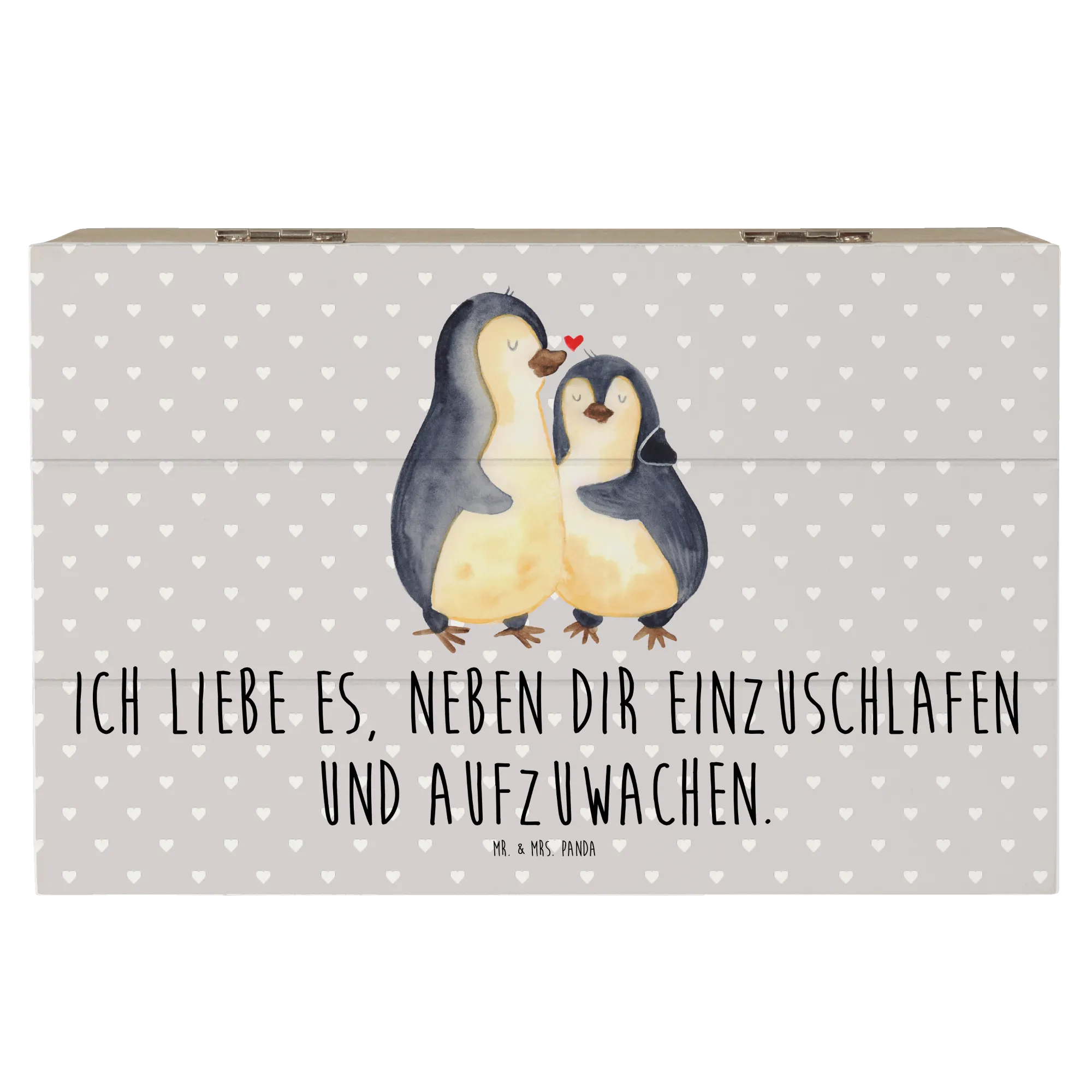 Die wunderschöne Holzkiste von Mr. & Mrs. Panda bringt dein Herz zum Schmelzen! Mit dem zauberhaften Motiv "Pinguine Einschlafen" ist diese Kiste nicht nur ein praktischer Aufbewahrungsort, sondern auch ein liebevolles Geschenk für jeden Anlass.