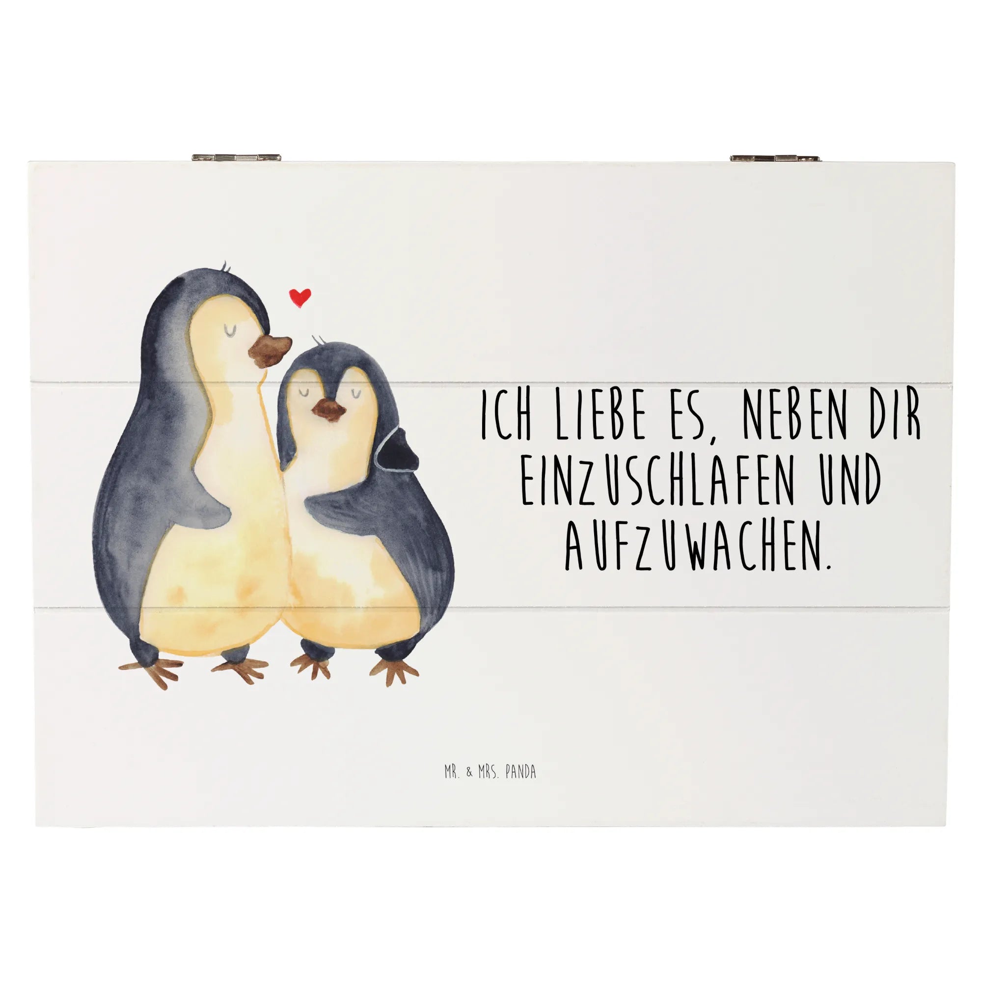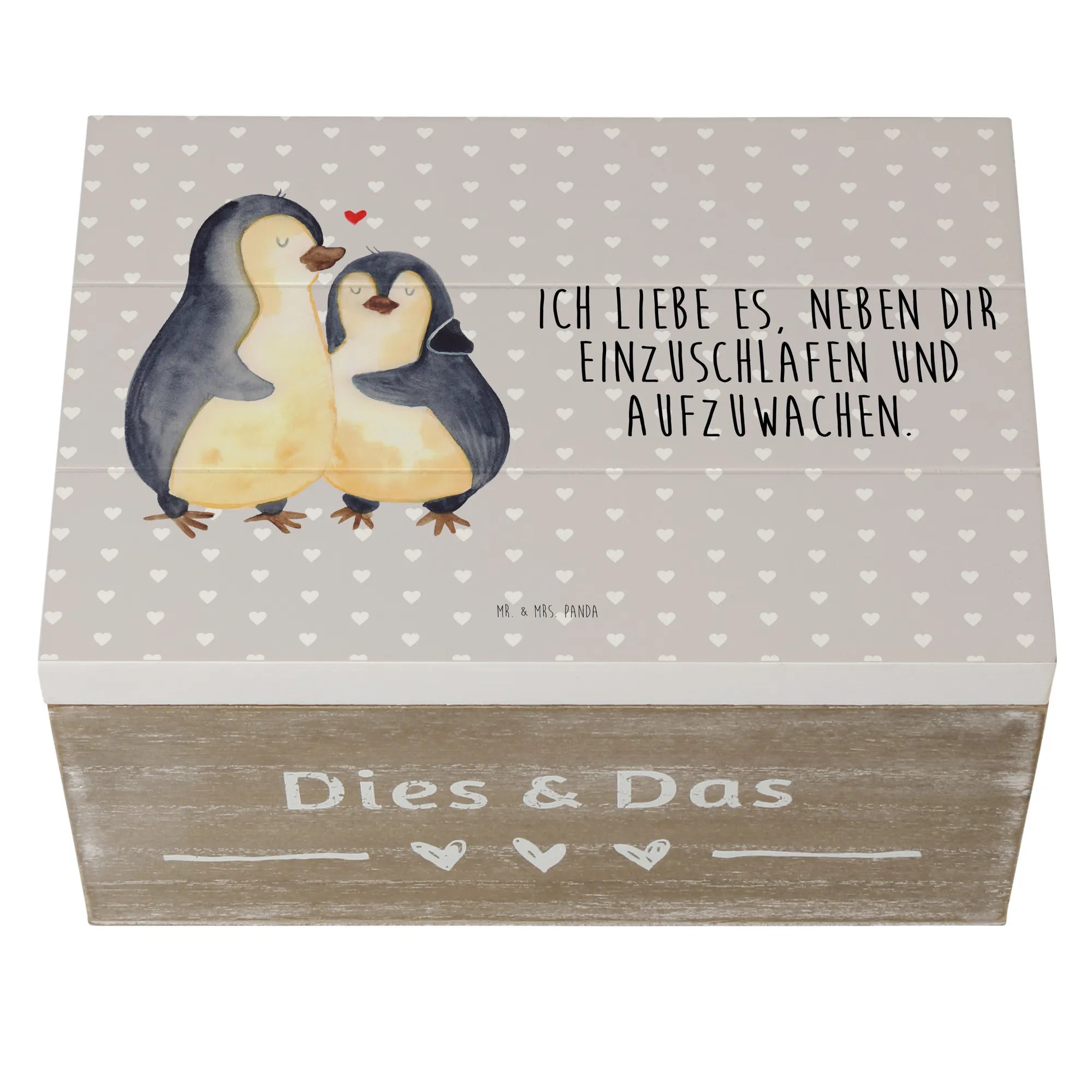 Entdecke die bezaubernde Holzkiste von Mr. & Mrs. Panda mit dem liebevollen Motiv "Pinguine Einschlafen"! Diese wunderschöne Erinnerungskiste ist nicht nur ein echter Hingucker, sondern auch ein perfekt durchdachtes Geschenk für all jene besonderen Anlässe im Leben. Ob für einen Jahrestag, den Hochzeitstag, als Liebesgeschenk zum Valentinstag oder einfach nur als süßes Mitbringsel für Deinen Partner, diese Kiste wird die Herzen höherschlagen lassen!