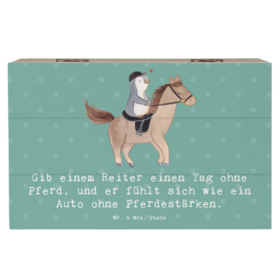 Die wunderschöne Holzkiste von Mr. & Mrs. Panda ist das perfekte Geschenk für alle Reitsportbegeisterten! Mit dem liebevollen Spruch: 'Gib einem Reiter einen Tag ohne Pferd, und er fühlt sich wie ein Auto ohne Pferdestärken.' wird diese Kiste zu einem echten Schatz für Erinnerungen rund um das Thema Pferde und Reitsport.