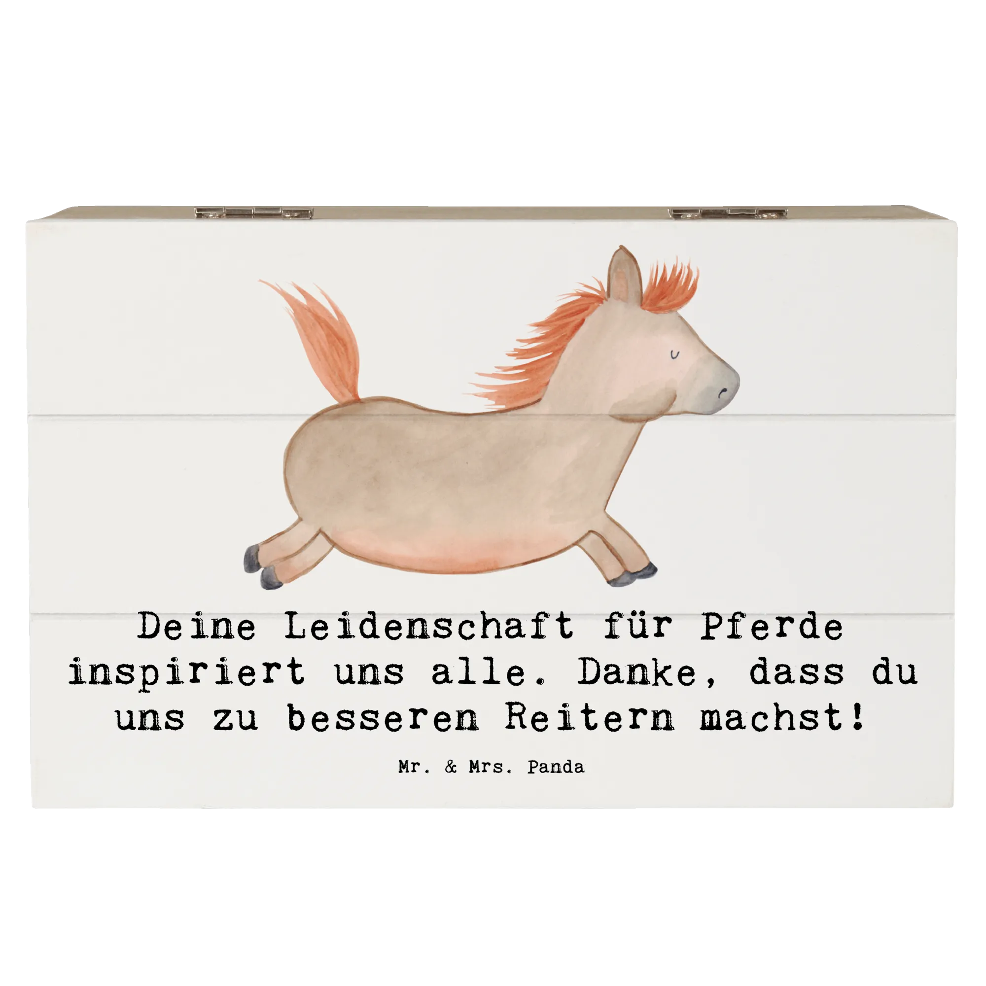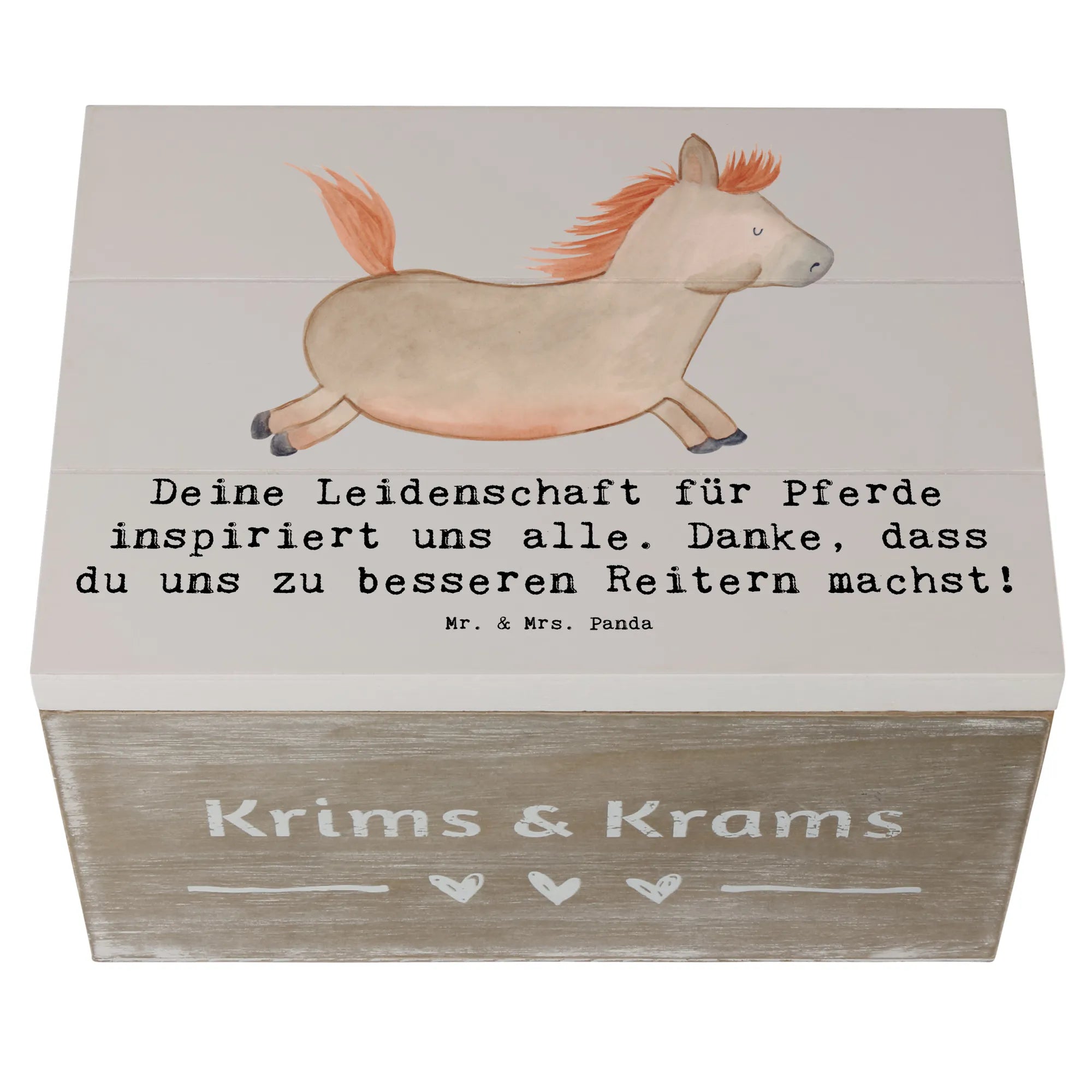 Die wunderschöne Holzkiste von Mr. & Mrs. Panda ist das perfekte Geschenk für jede Trainerin im Reitsport. Mit dem herzlichen Slogan "Deine Leidenschaft für Pferde inspiriert uns alle. Danke, dass du uns zu besseren Reitern machst!" vermittelt diese Kiste Dankbarkeit und Wertschätzung.