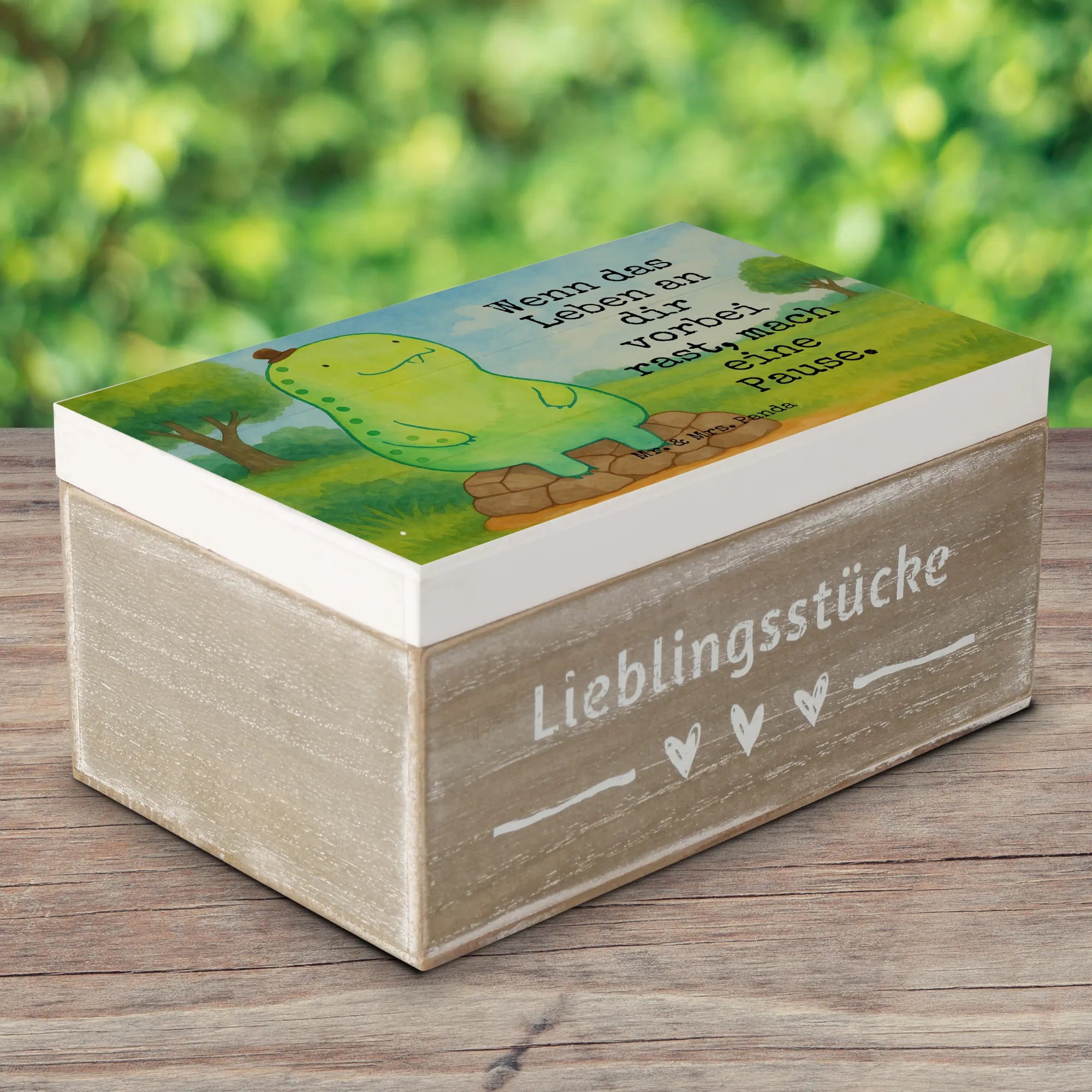 Holzkiste Schildkröte Pause Design - 22 x 15 cm - mit Spruch
