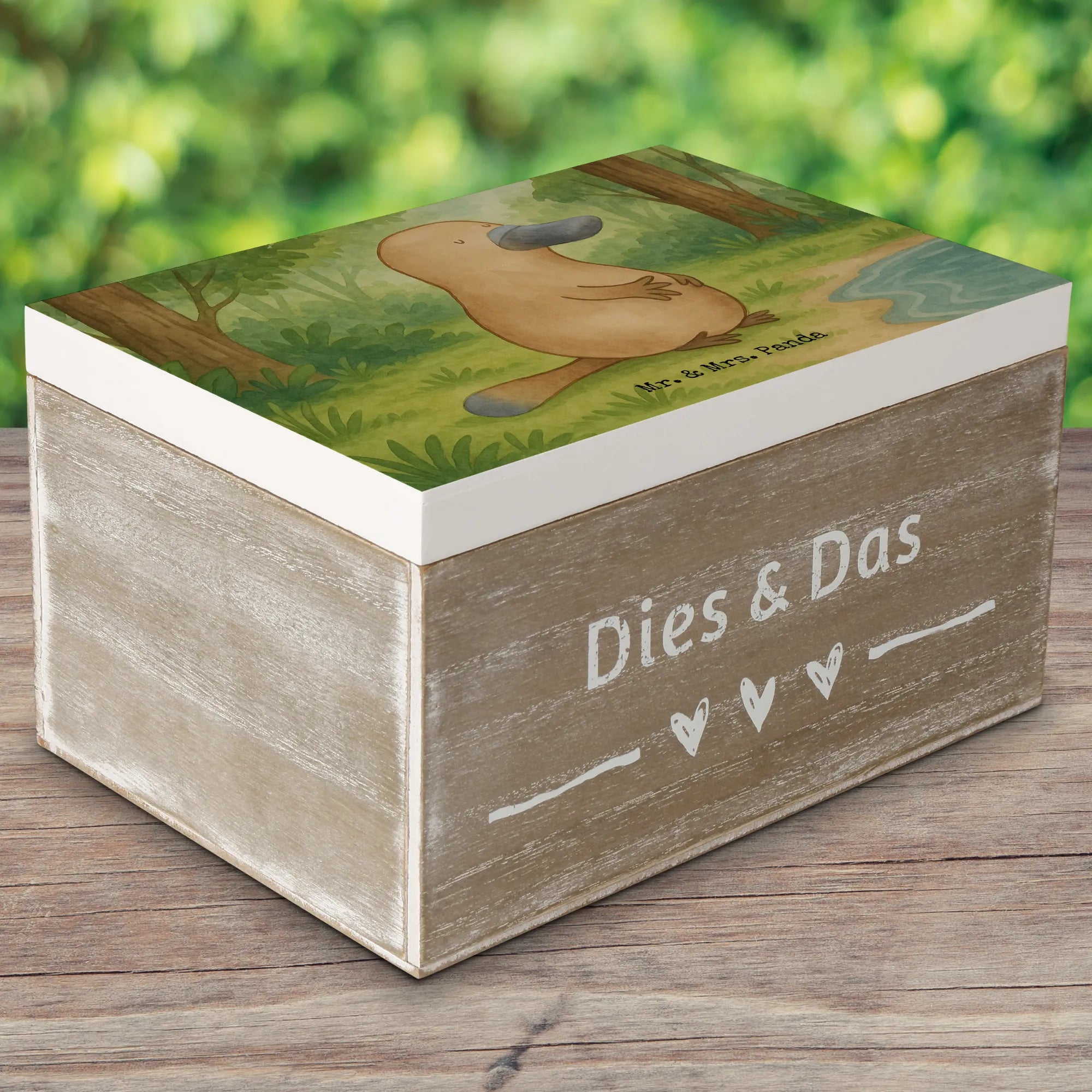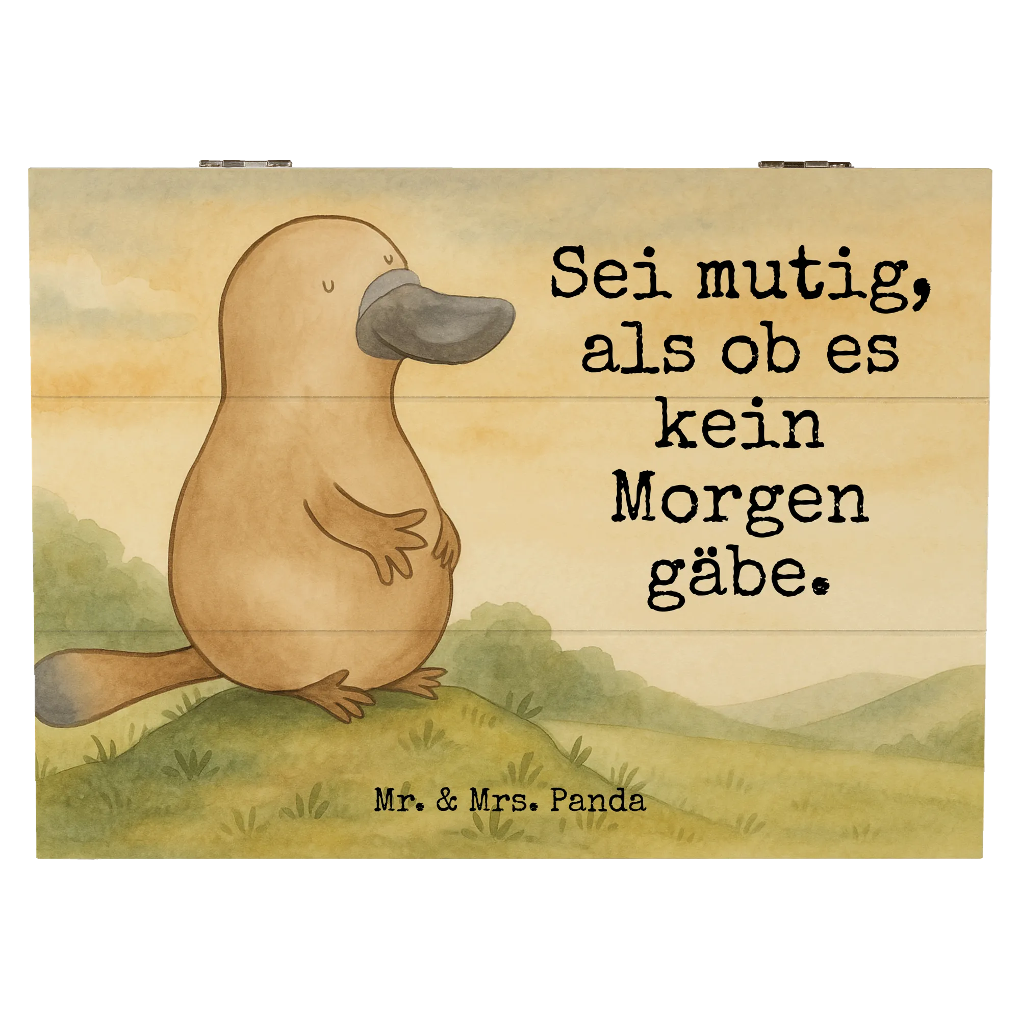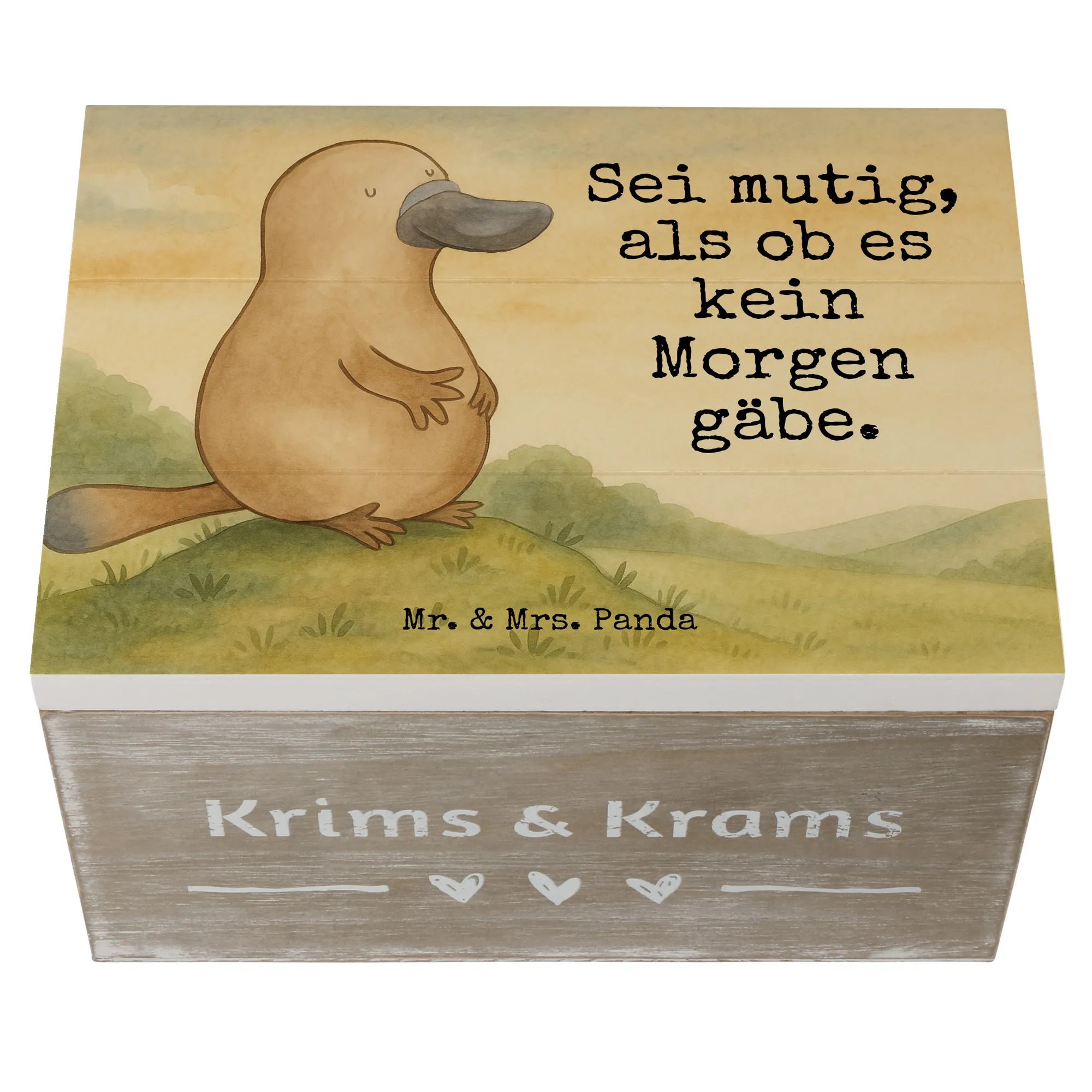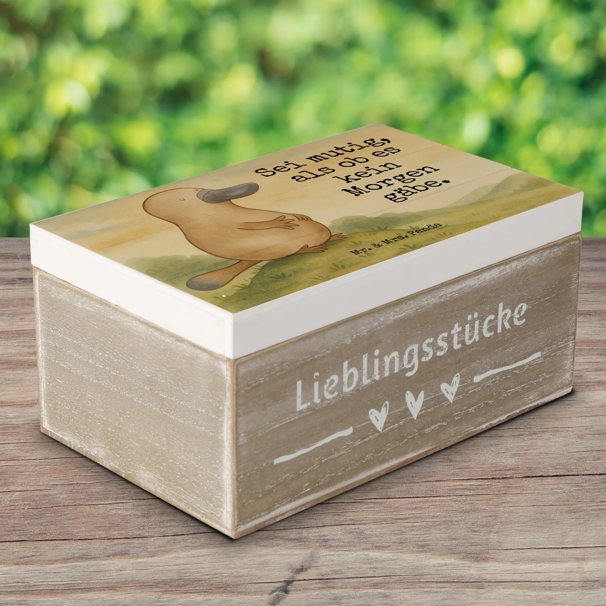 Holzkiste Schnabeltier Mut Design - 22 x 15 cm - mit Spruch