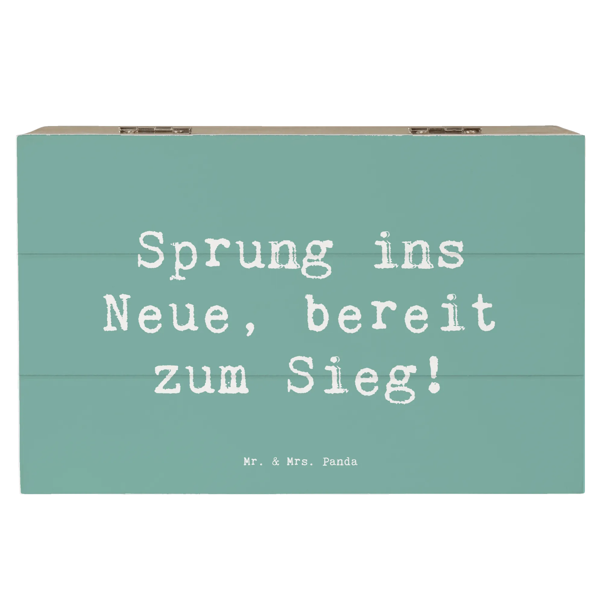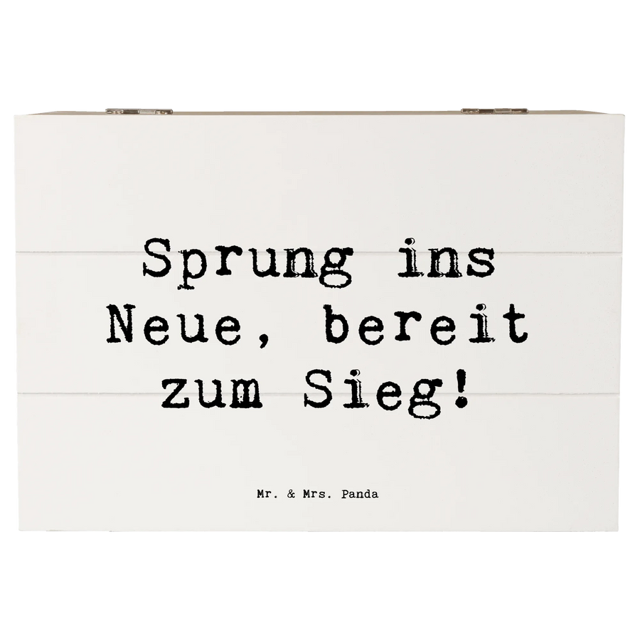 Die wunderschöne Holzkiste 'Sich in einer neuen Sportart versuchen' aus der Mutmacher-Kollektion von Mr. & Mrs. Panda ist das perfekte Geschenk für alle, die sich neu ausprobieren und sich Mut zusprechen wollen.