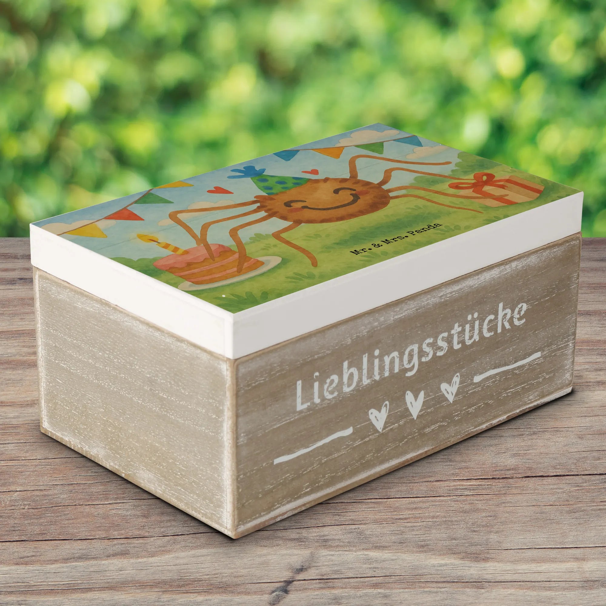 Holzkiste Spinne Agathe Party Design - 22 x 15 cm - mit Spruch