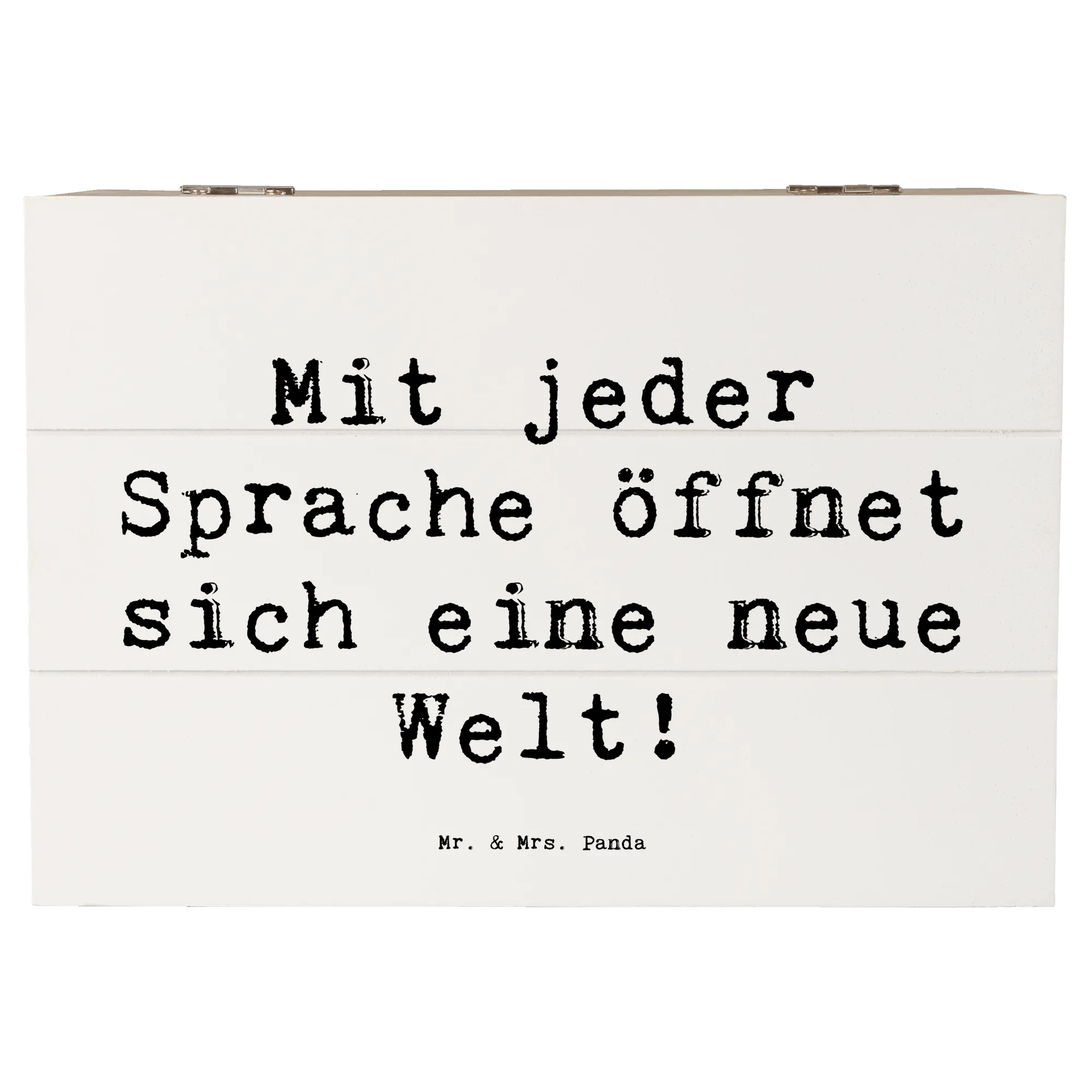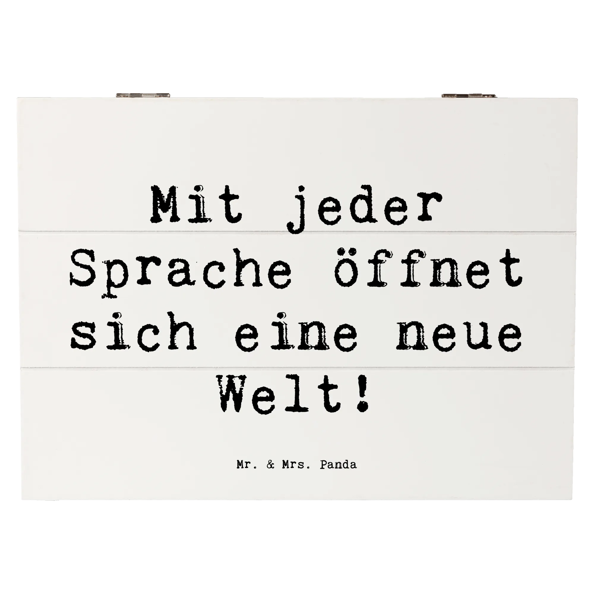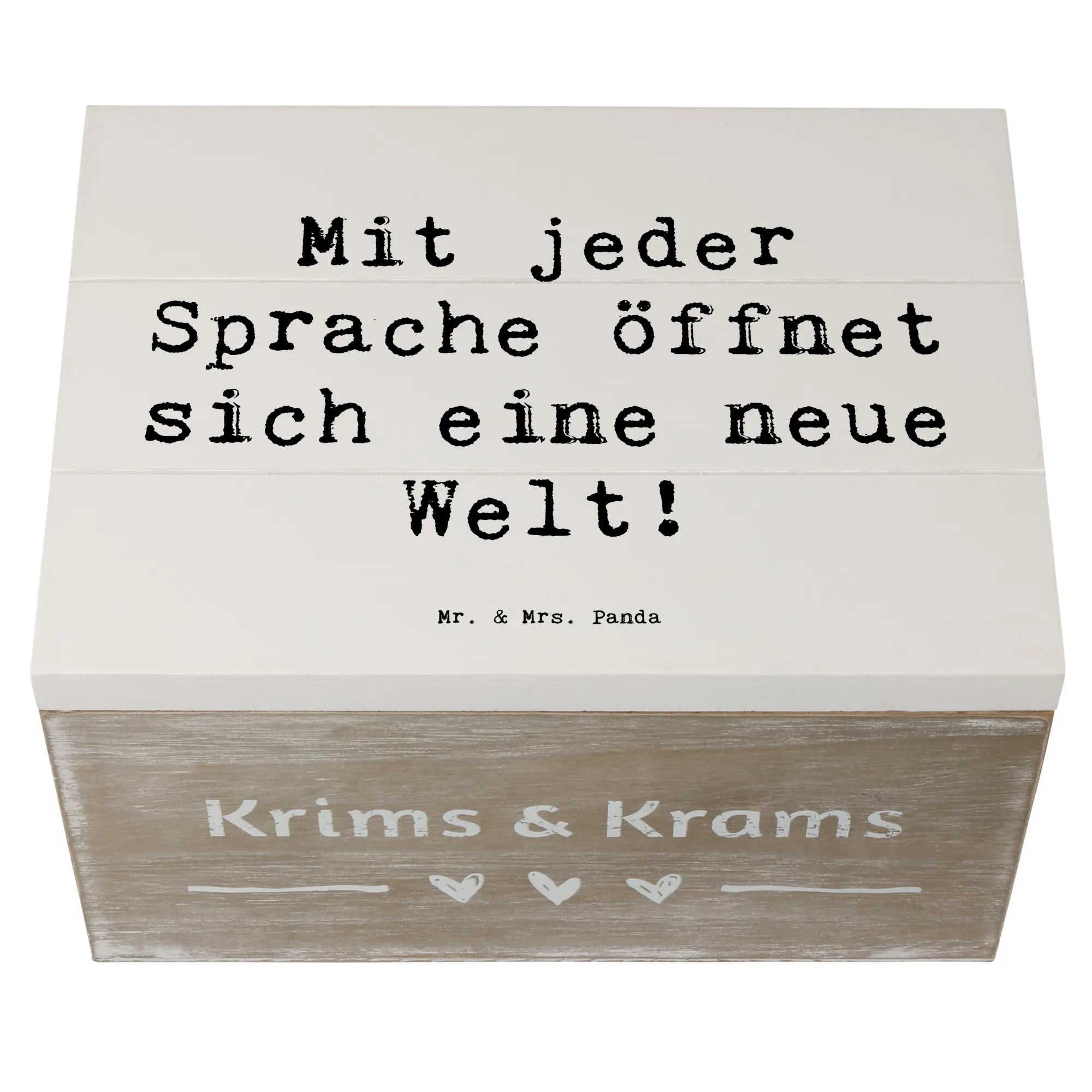 Suchst du nach einem perfekten Geschenk, das Herzen berührt? Dann ist die wunderschöne Holzkiste von Mr. & Mrs. Panda genau das Richtige für dich! Diese nostalgische Schatzkiste, bedruckt mit dem inspirierenden Motto "Mit jeder Sprache öffnet sich eine neue Welt!", ist mehr als nur eine Kiste – sie ist ein Ausdruck von Mut und Zuversicht. Sie steht in einer Reihe mit unseren beliebten Erinnerungskisten und eignet sich hervorragend als Aufbewahrungsort für all die besonderen Momente deines Lebens. Ob für Fotos von der Kommunion deines Kindes, als wertvolle Erinnerungsbox für deine eigene Kindheit oder einfach als Dekokiste für kleine Schätze, die du gerne in deinem Herzen trägst.