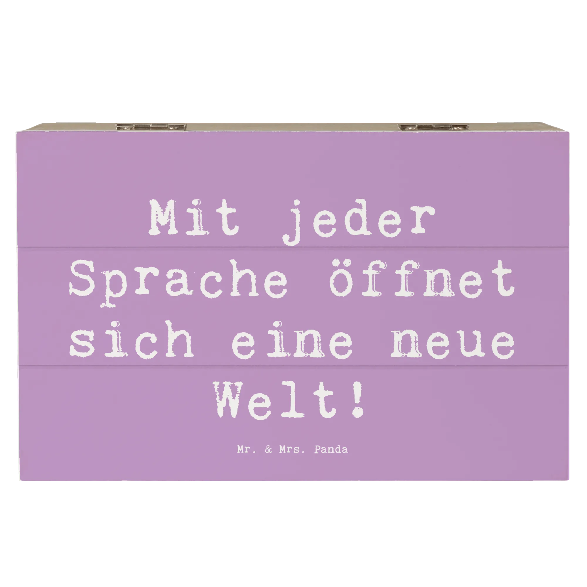 Die wunderschöne Holzkiste von Mr. & Mrs. Panda ist nicht nur eine Aufbewahrungsbox, sondern ein wahrer Schatz für all deine Erinnerungen. Diese stilvolle Kiste mit dem inspirierenden Motto "Mit jeder Sprache öffnet sich eine neue Welt!" ist perfekt für alle, die die Schönheit der Sprachen lieben und sich gerne mit der Welt verbinden.