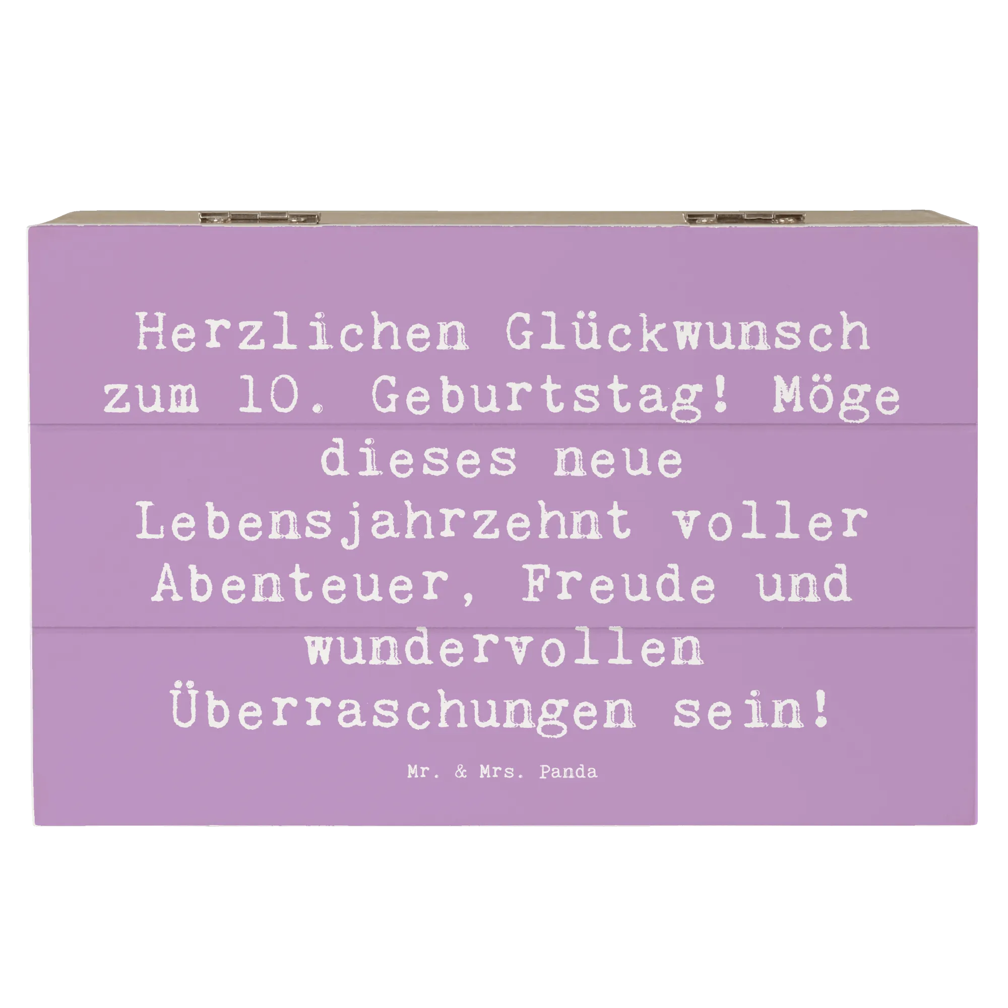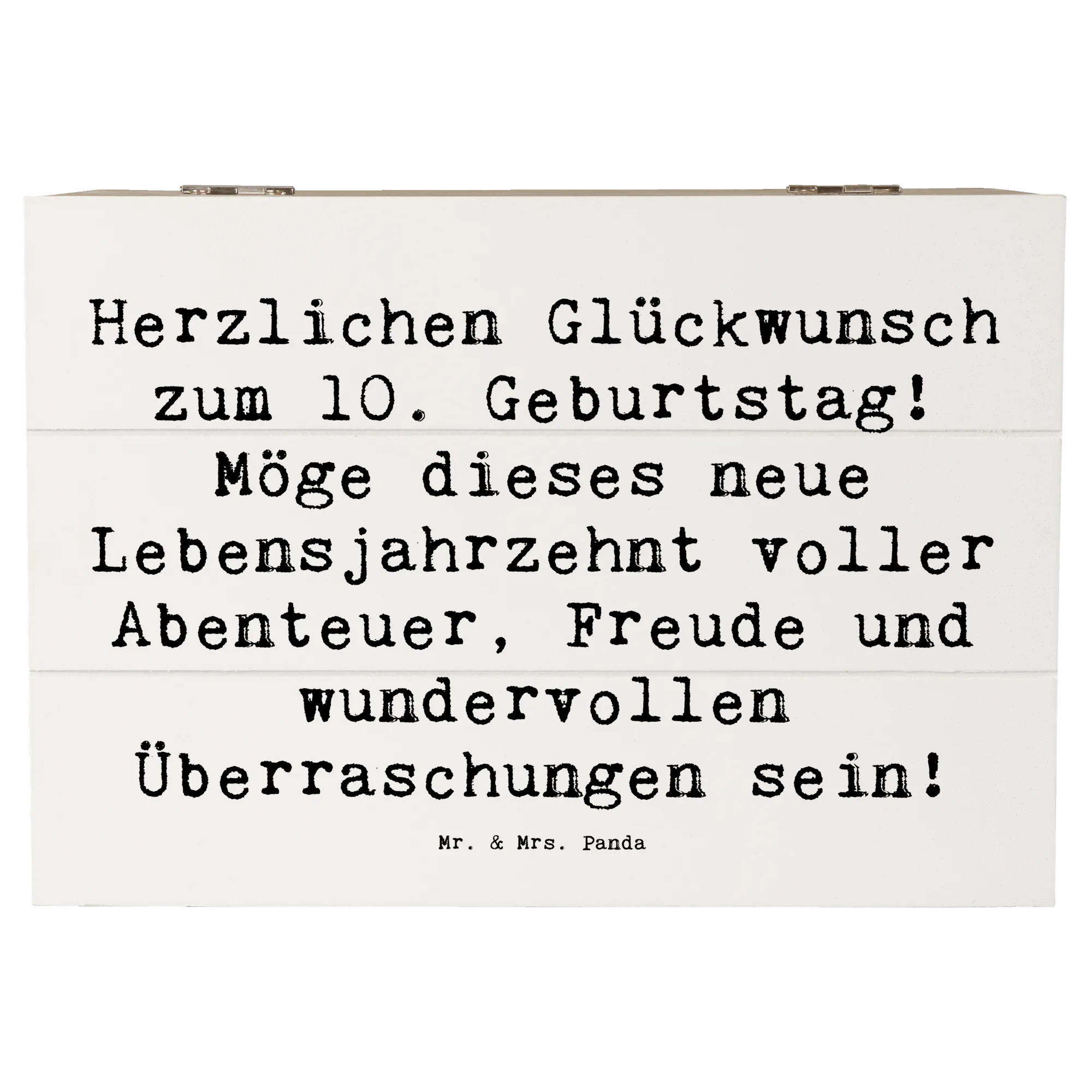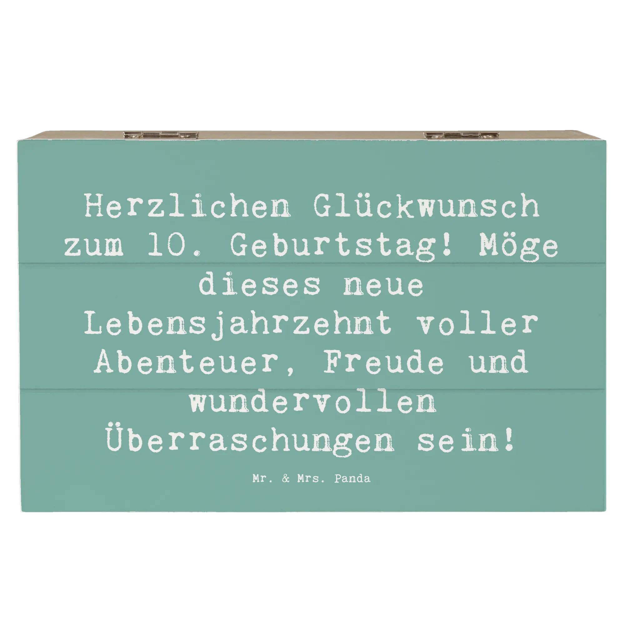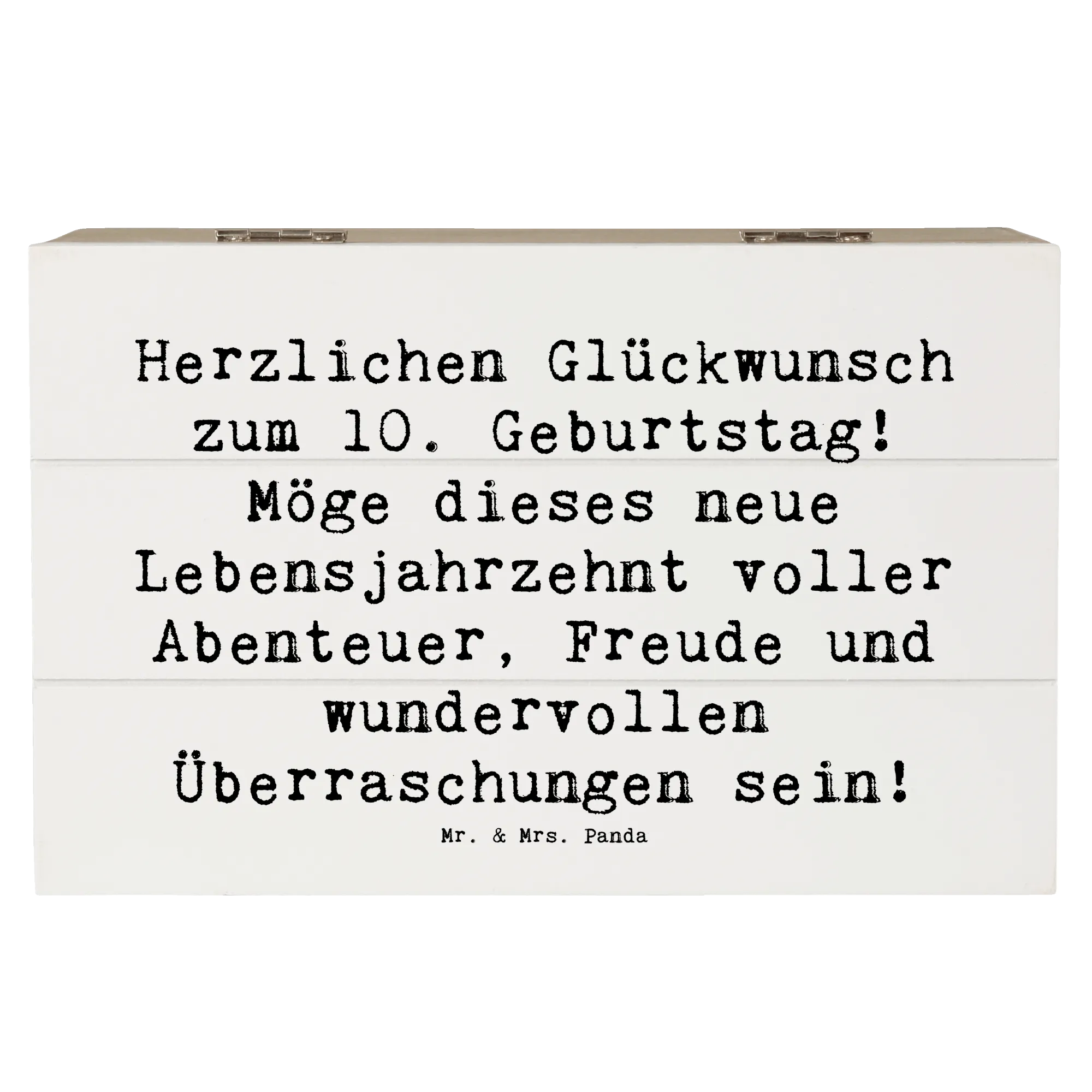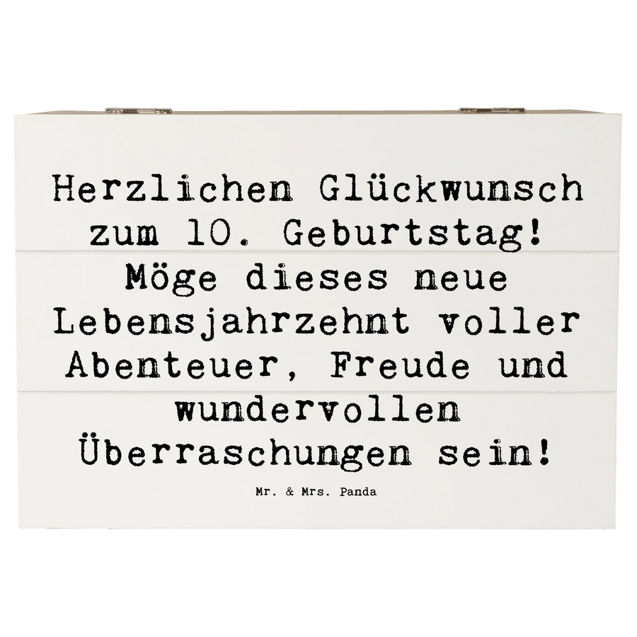 Die bezaubernde Holzkiste von Mr. & Mrs. Panda ist das perfekte Geschenk zum 10. Geburtstag! Sie ist nicht nur unvergesslich wegen ihres charmanten Designs, das den Spruch 'Herzlichen Glückwunsch zum 10. Geburtstag! Möge dieses neue Lebensjahrzehnt voller Abenteuer, Freude und wundervollen Überraschungen sein!' enthält.