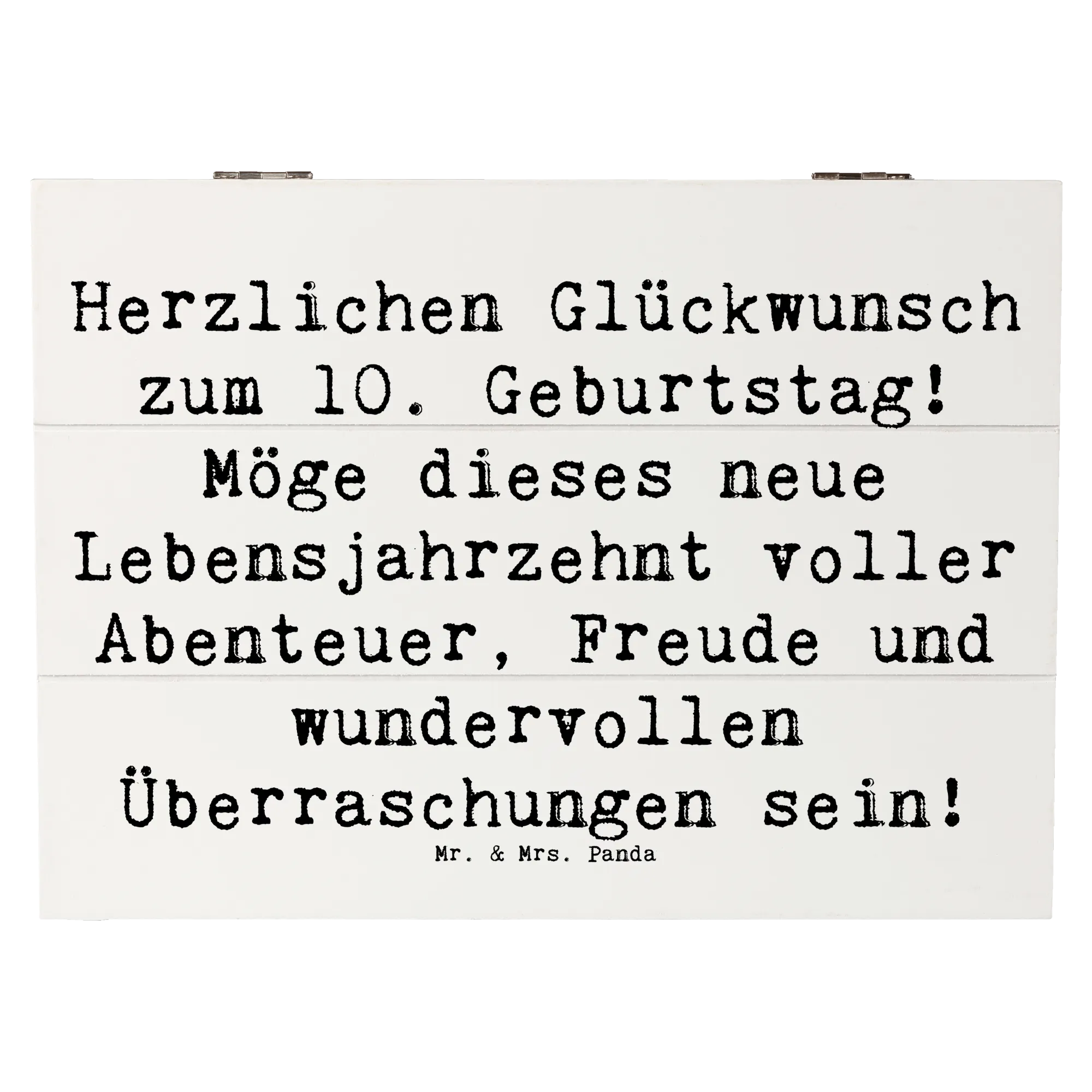 Du suchst das perfekte Geschenk zum 10. Geburtstag? Dann ist die wunderschöne Holzkiste von Mr. & Mrs. Panda genau das Richtige für dich! Unsere Erinnerungskiste bietet nicht nur einen idealen Platz für all die besonderen Schätze deines Lieblings, sondern strahlt auch einen ganz besonderen Charme aus. Mit dem Motiv "Herzlichen Glückwunsch zum 10. Geburtstag! Möge dieses neue Lebensjahrzehnt voller Abenteuer, Freude und wundervollen Überraschungen sein!" wird diese Kiste zum perfekten Begleiter für das nächste Lebensjahr.