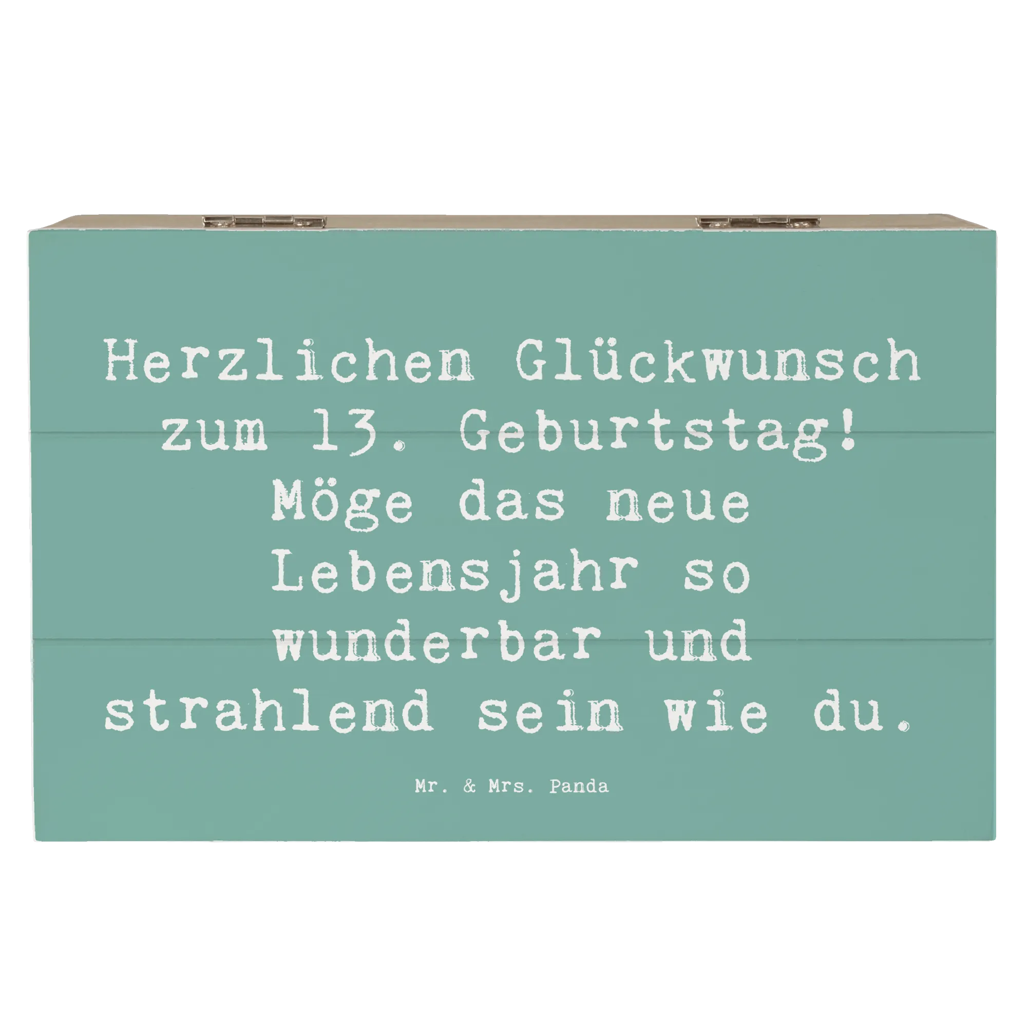 Die Holzkiste "Herzlichen Glückwunsch zum 13. Geburtstag!" von Mr. & Mrs. Panda ist das perfekte Geschenk für alle, die einen besonderen Tag feiern. Mit einer Größe von 19 x 12 cm bietet diese wunderschöne Kiste aus robuster Holzfaser viel Platz für wertvolle Erinnerungen.