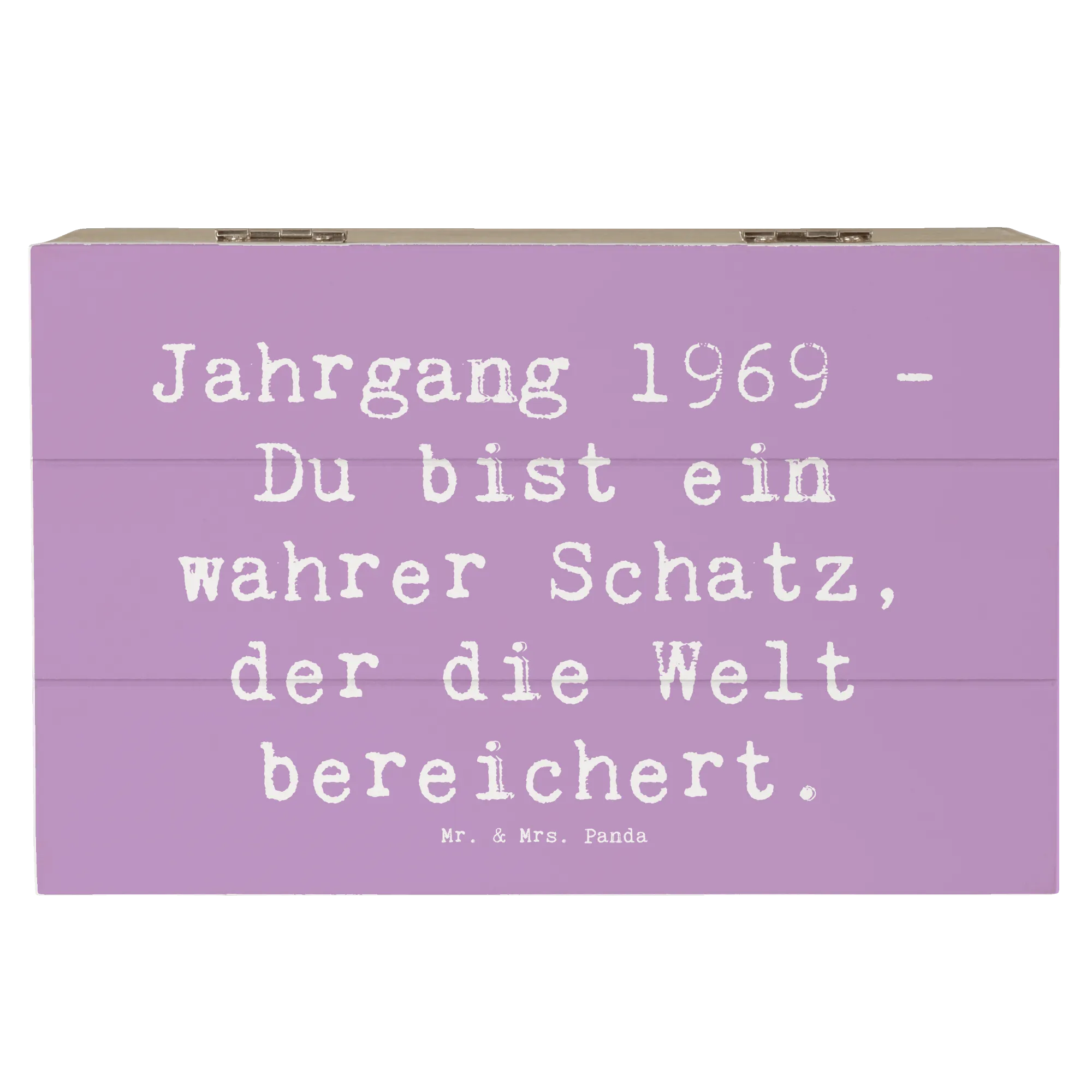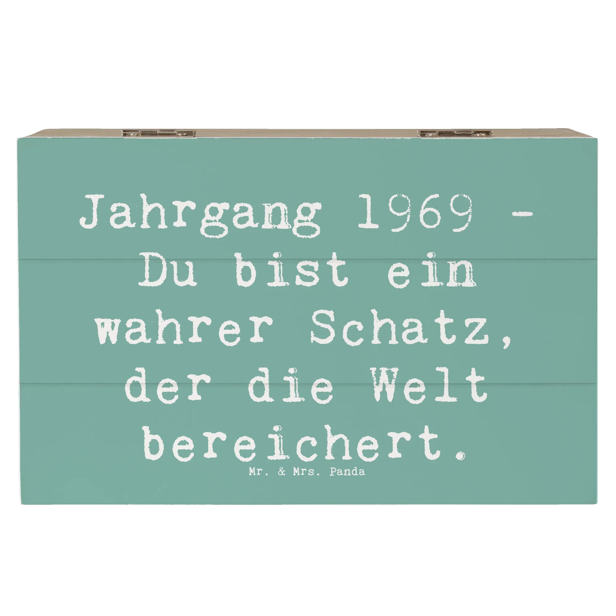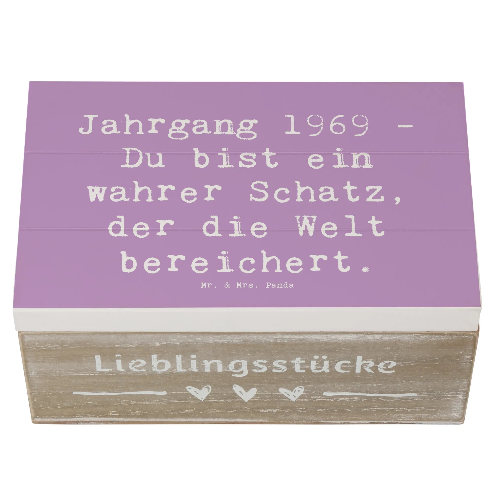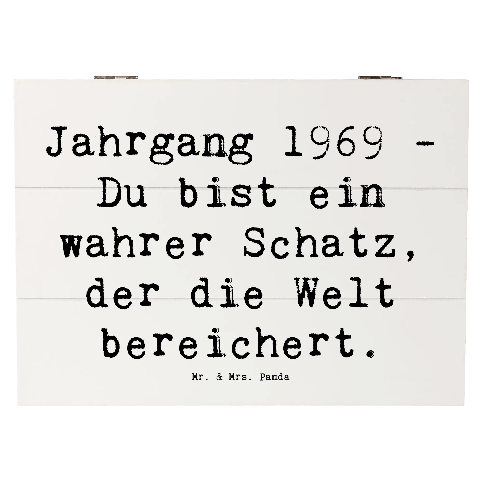 Die wunderschöne Holzkiste von Mr. & Mrs. Panda ist der perfekte Begleiter für alle, die im Jahr 1969 das Licht der Welt erblickt haben. Mit dem liebevollen Slogan 'Jahrgang 1969 - Du bist ein wahrer Schatz, der die Welt bereichert.' wird diese Holzkiste zu einem unvergesslichen Geschenk, das gleichermaßen als Erinnerungsbox, Dekokiste und Aufbewahrungsbox dient.