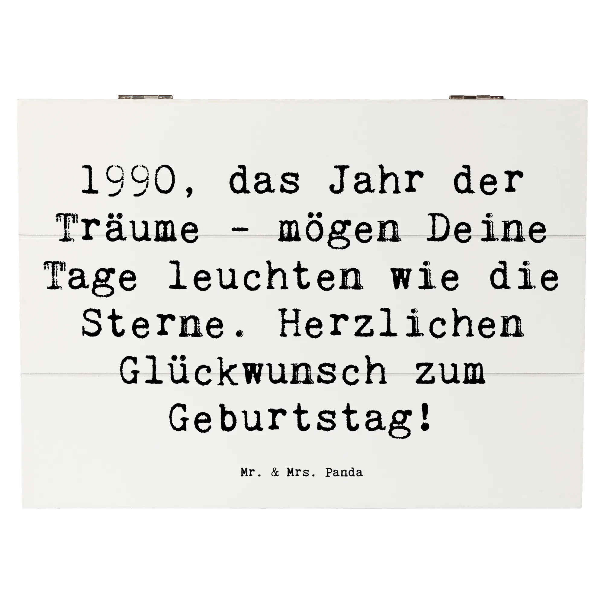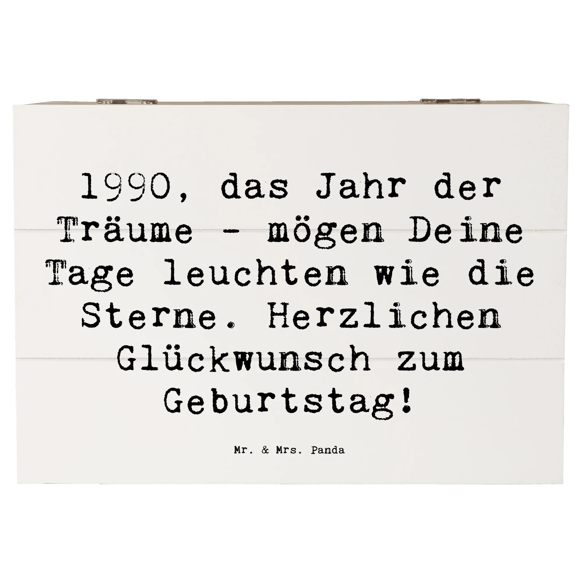 Wenn du auf der Suche nach dem perfekten Geschenk für einen besonderen Menschen bist, dann ist die Holzkiste "1990, das Jahr der Träume" von Mr. & Mrs. Panda genau das Richtige für dich!