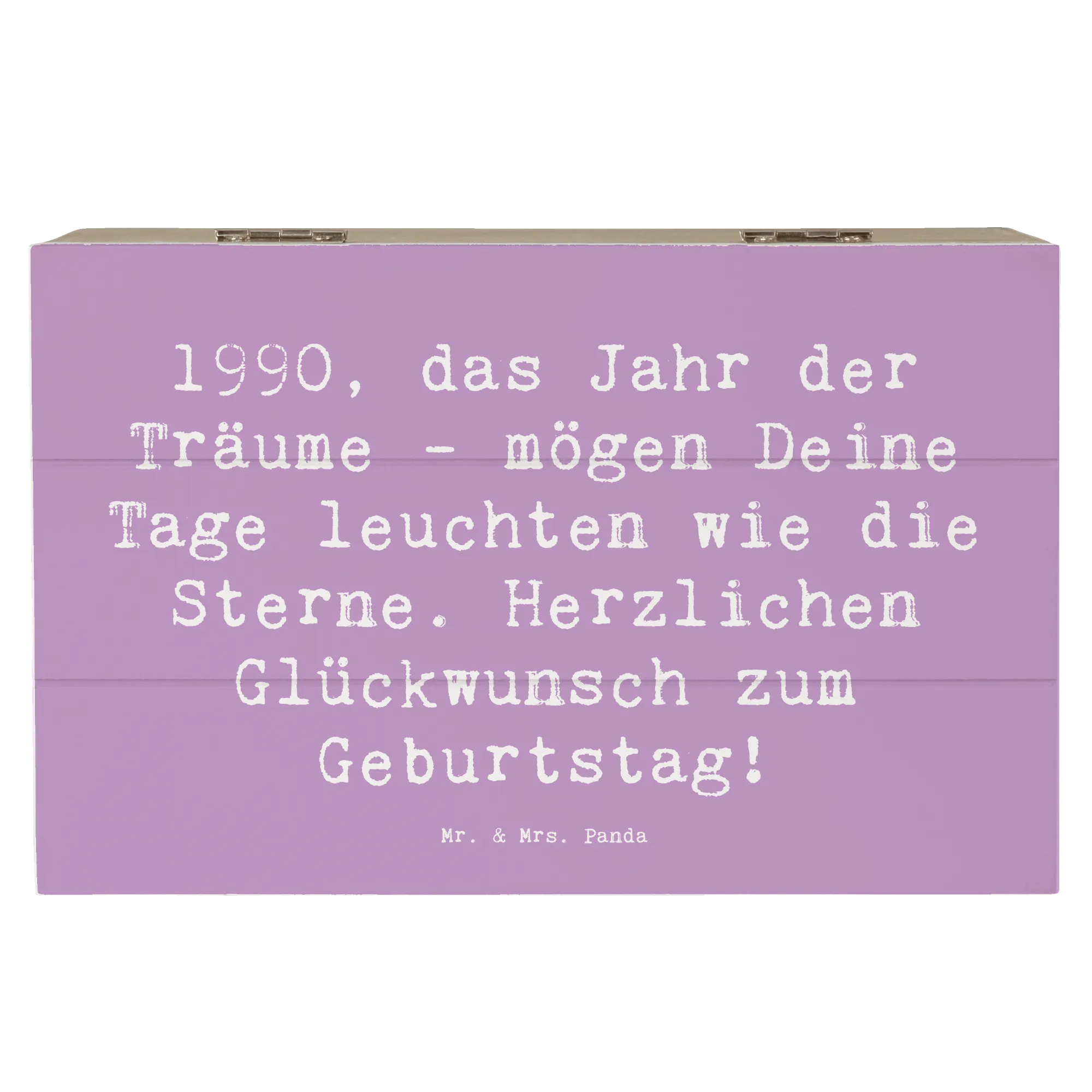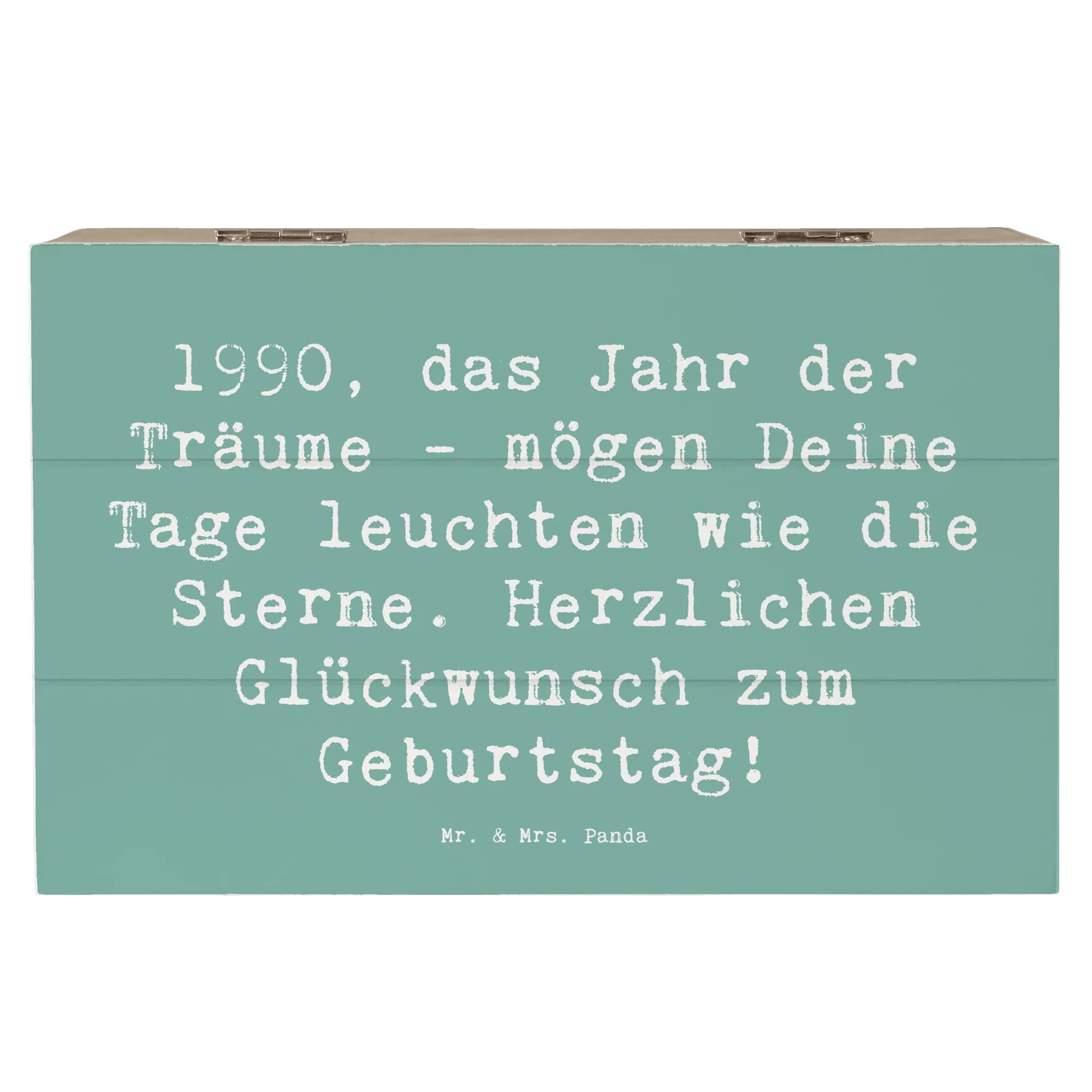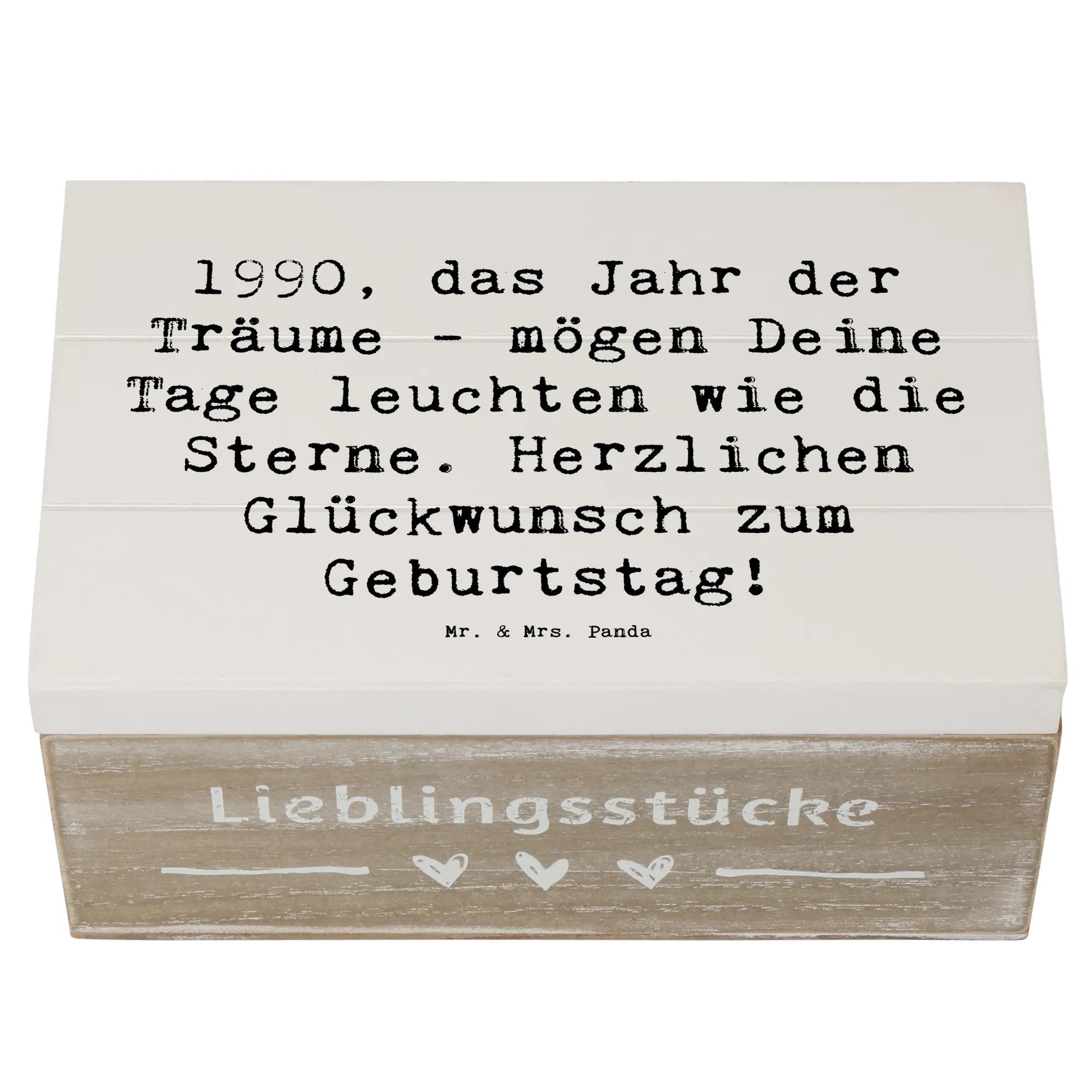 Die wunderschöne Holzkiste von Mr. & Mrs. Panda ist das perfekte Geschenk für alle, die 1990 geboren wurden und ihren Geburtstag gebührend feiern möchten! Mit dem liebevollen Slogan "1990, das Jahr der Träume - mögen Deine Tage leuchten wie die Sterne. Herzlichen Glückwunsch zum Geburtstag!" zaubert sie ein Lächeln auf jedes Gesicht.