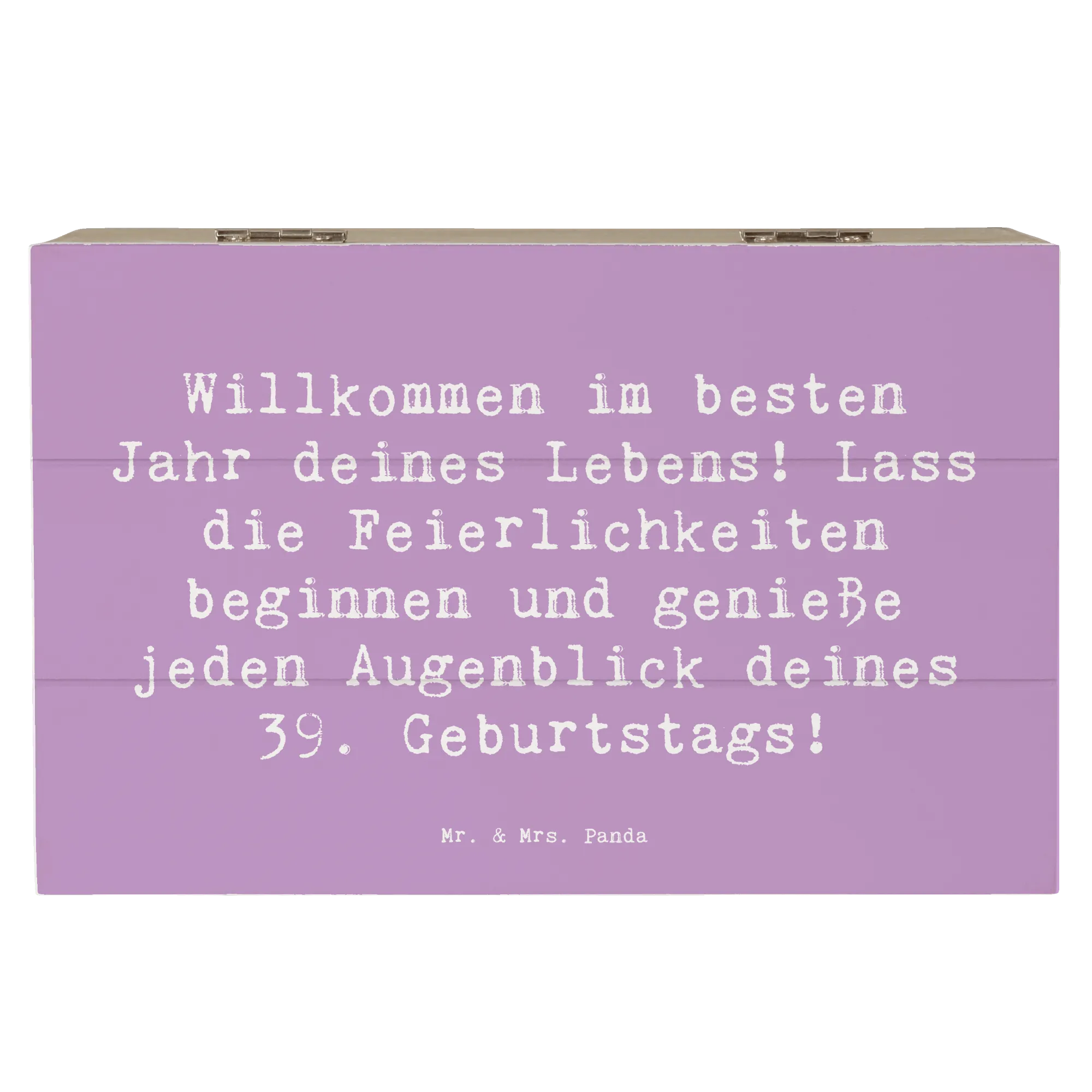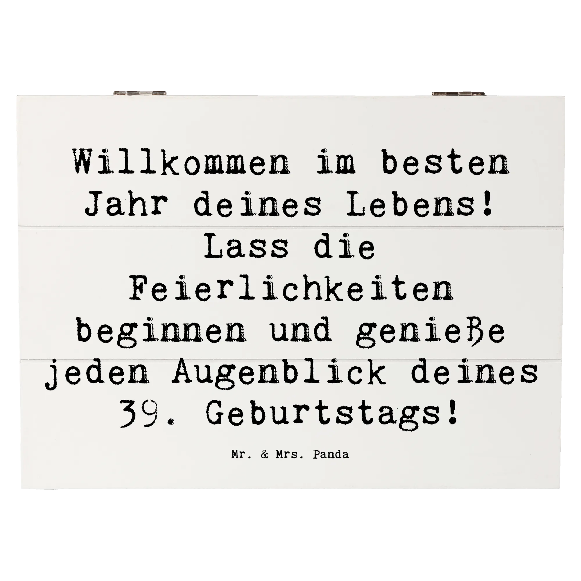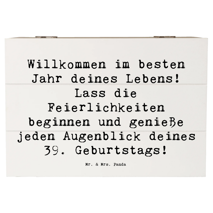 Die wunderschöne Holzkiste von Mr. & Mrs. Panda ist das perfekte Geschenk für alle, die ihren 39. Geburtstag auf eine besondere Art und Weise feiern möchten. Mit dem liebenswerten Spruch "Willkommen im besten Jahr deines Lebens! Lass die Feierlichkeiten beginnen und genieße jeden Augenblick deines 39. Geburtstags!" wird die Kiste zum idealen Begleiter für jeden Jubilar.