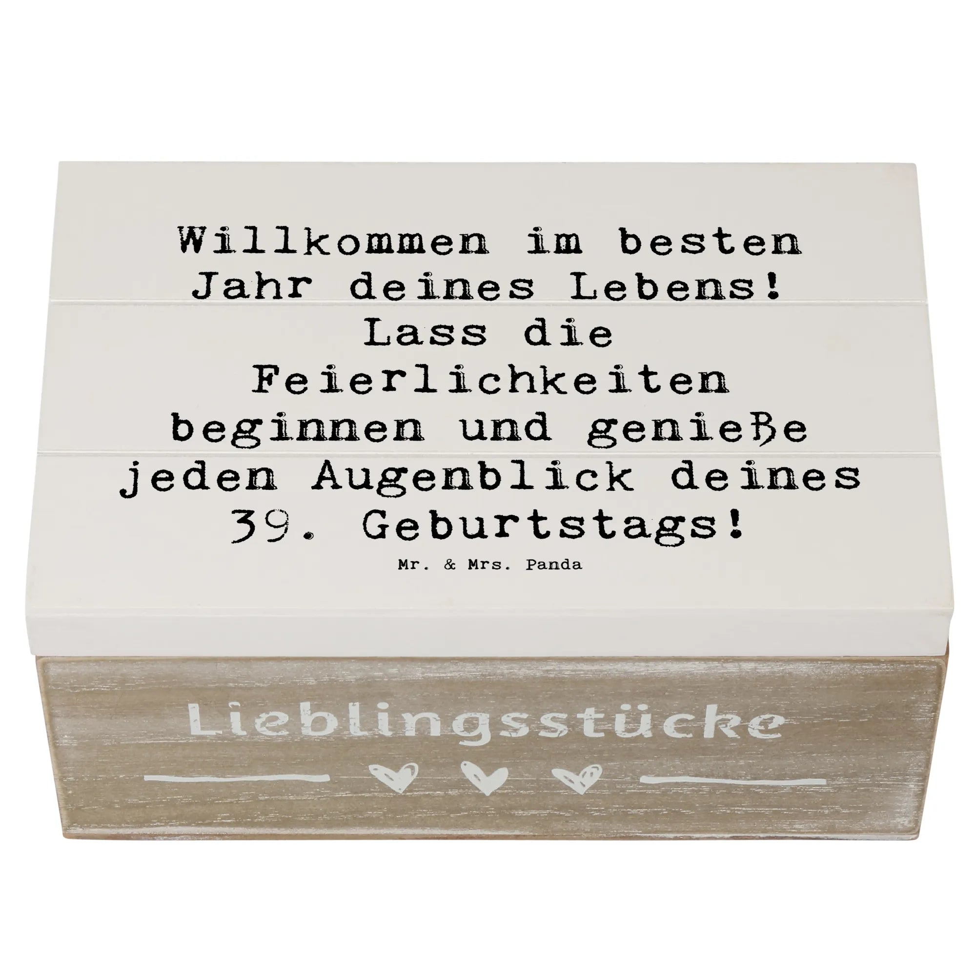 Die wunderschöne Holzkiste von Mr. & Mrs. Panda ist das perfekte Geschenk für deinen 39. Geburtstag!