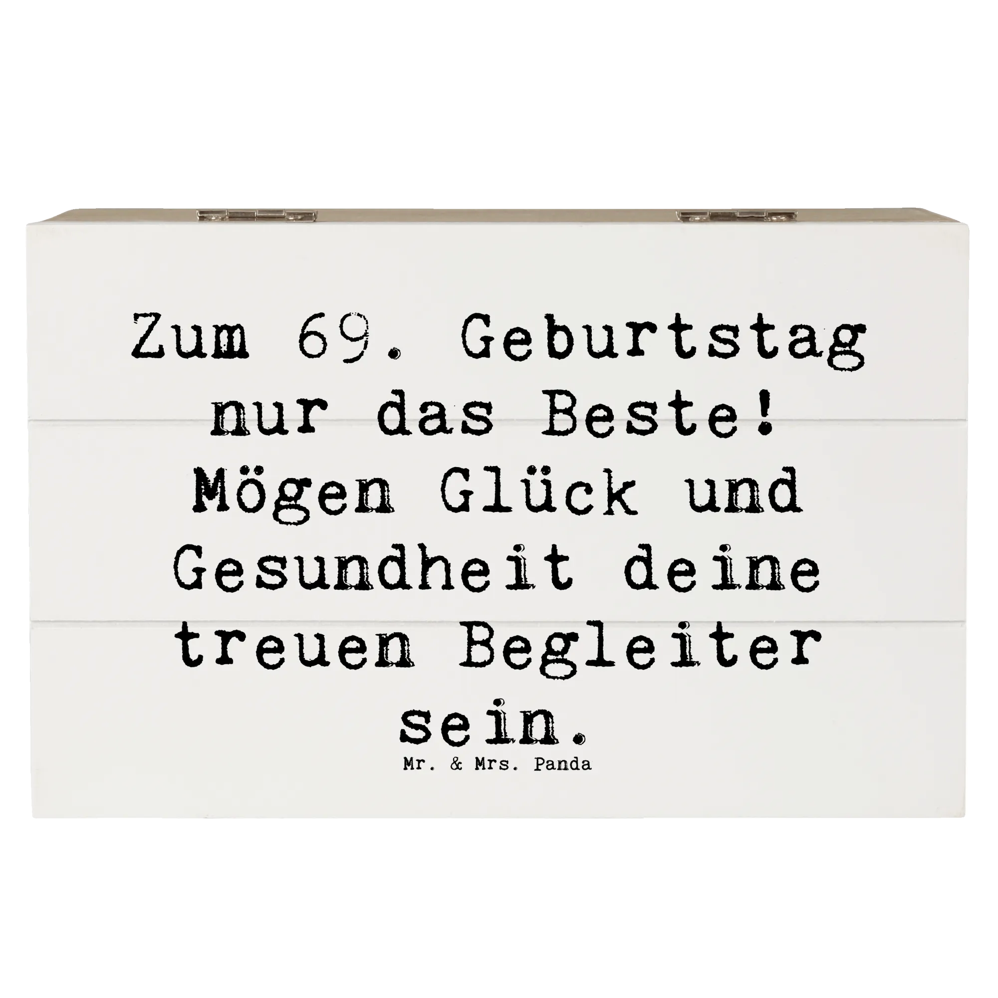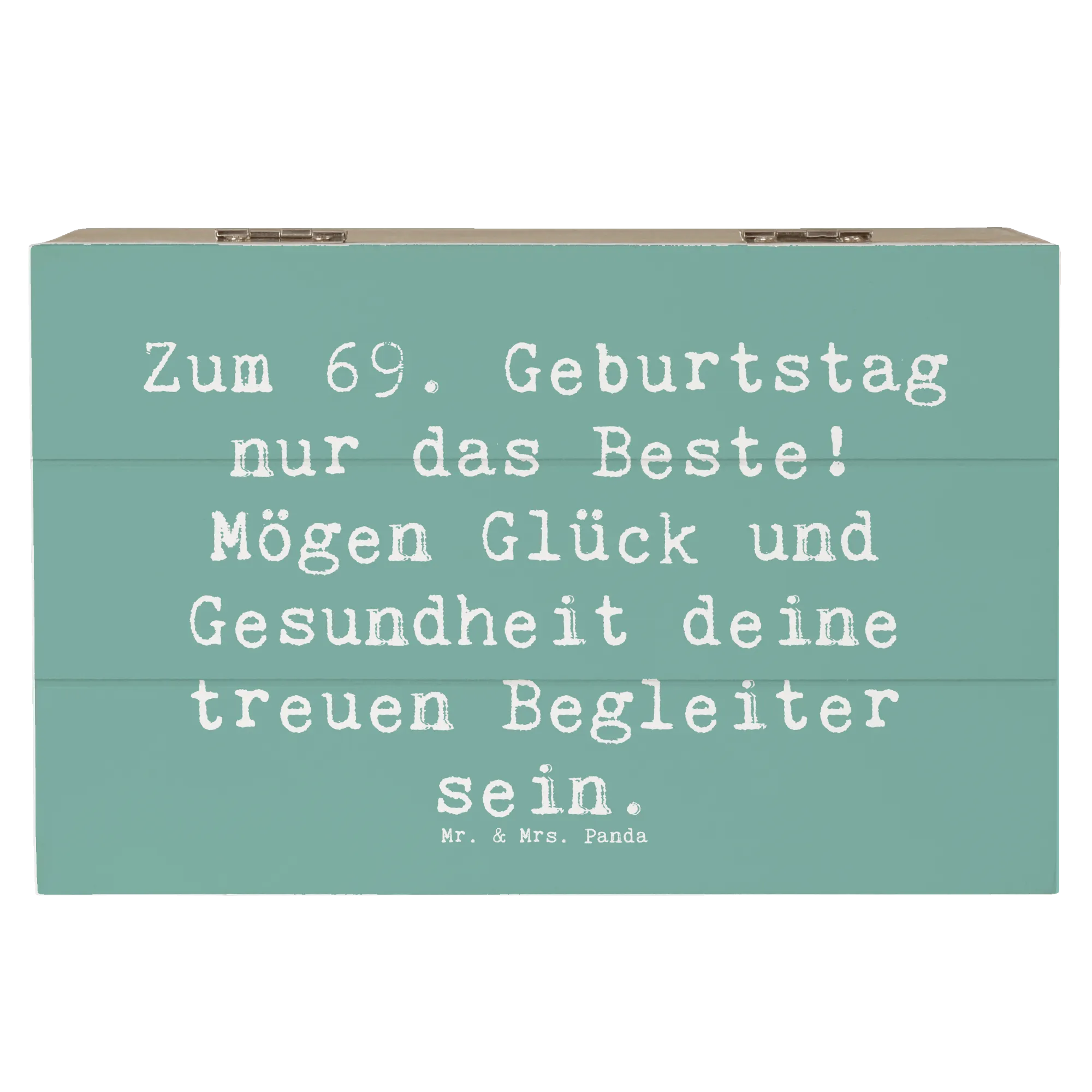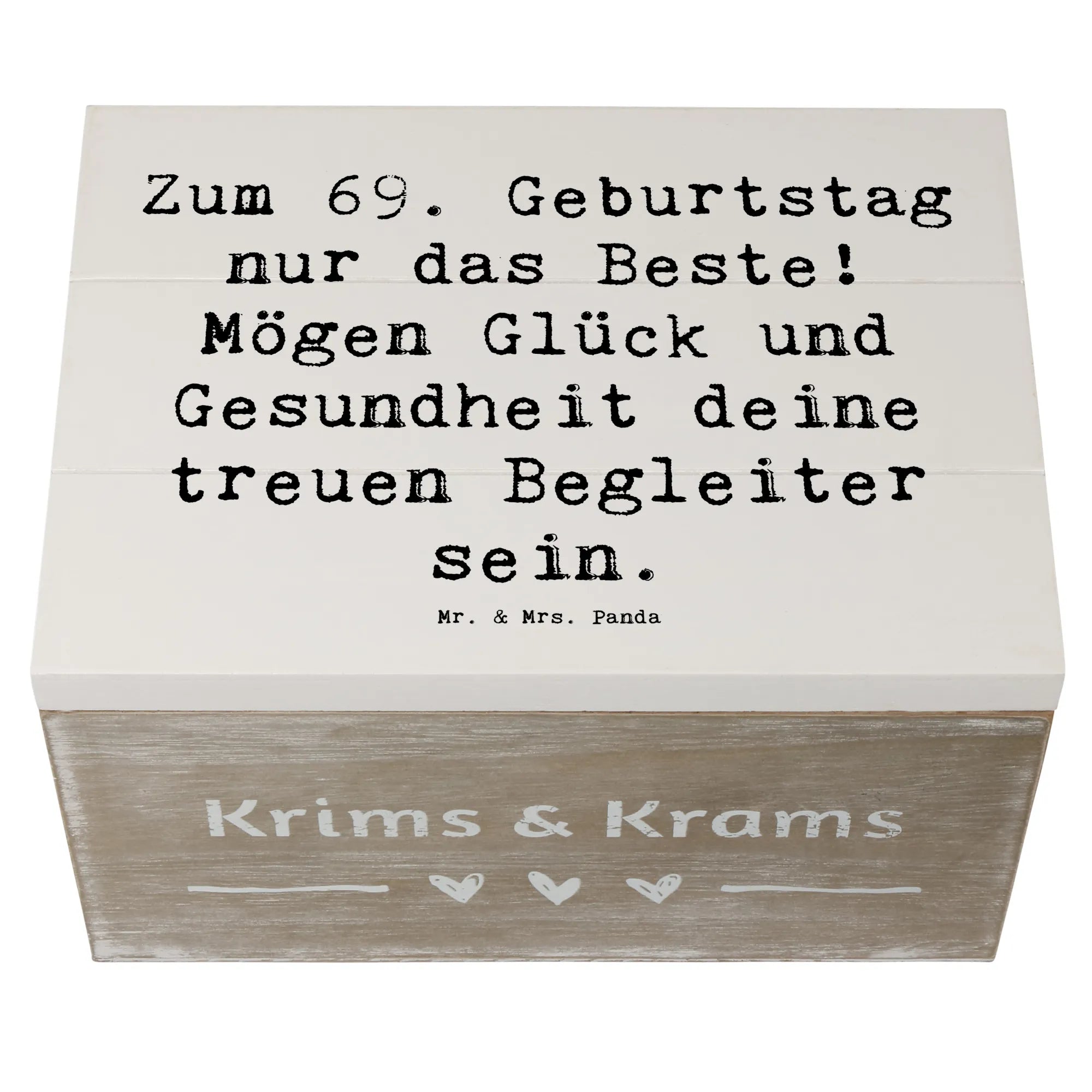 Die wunderschöne Holzkiste von Mr. & Mrs. Panda ist das perfekte Geschenk zum 69. Geburtstag! Mit ihrem liebevollen Motiv und dem Spruch 'Zum 69. Geburtstag nur das Beste! Mögen Glück und Gesundheit deine treuen Begleiter sein.' bringt sie Freude und steht für unvergessliche Momente.