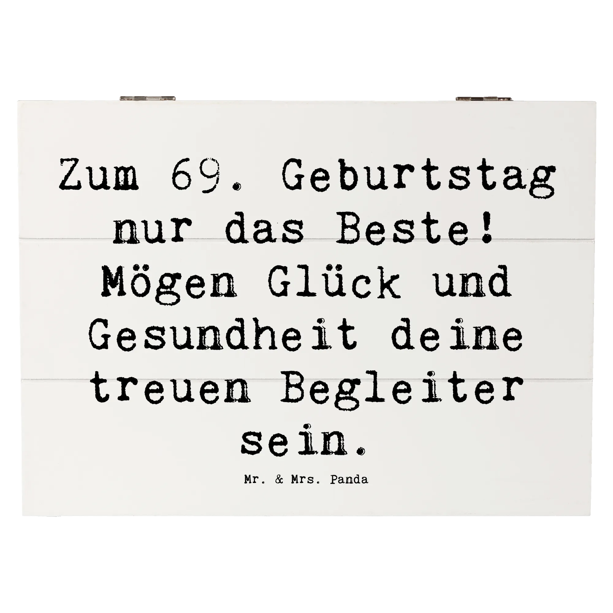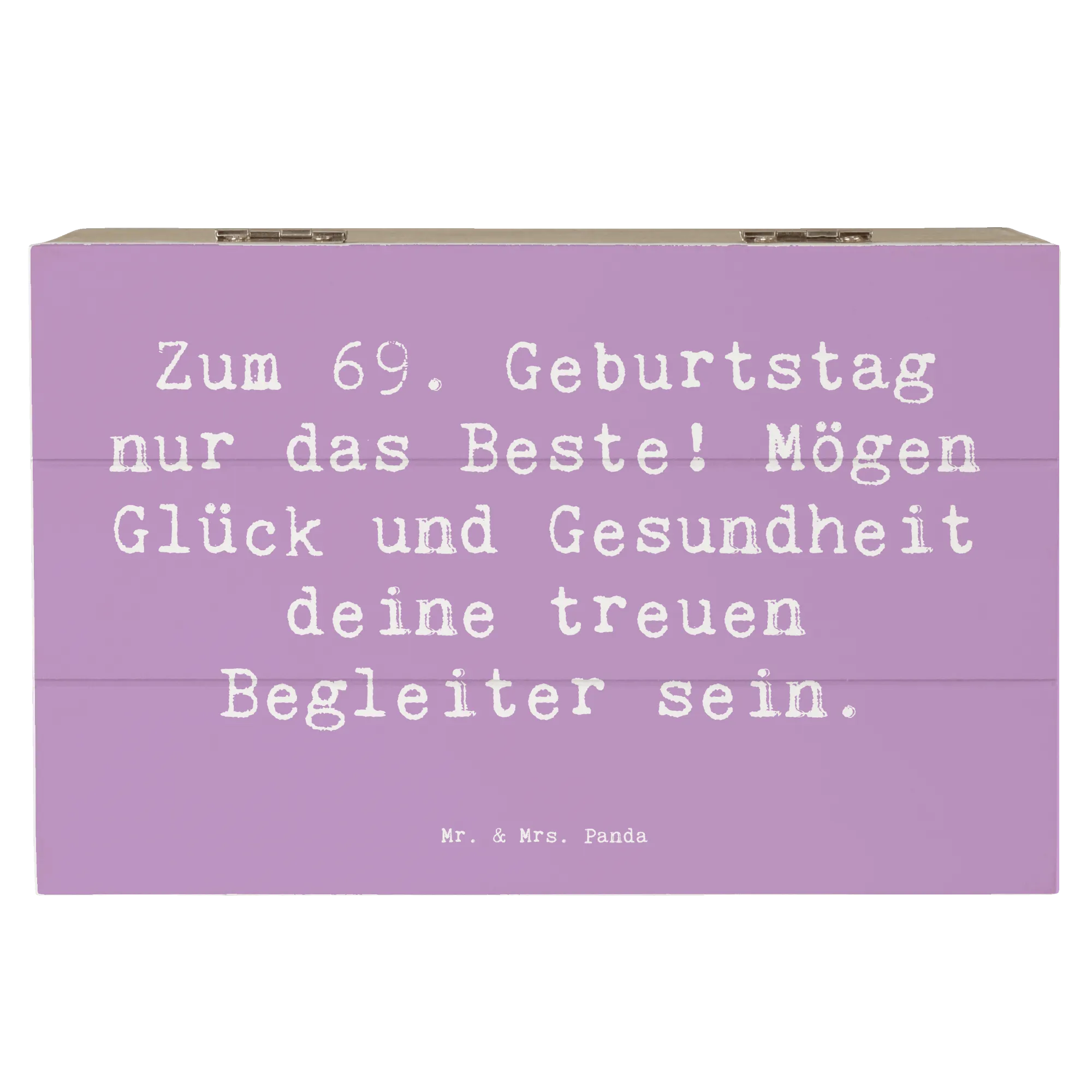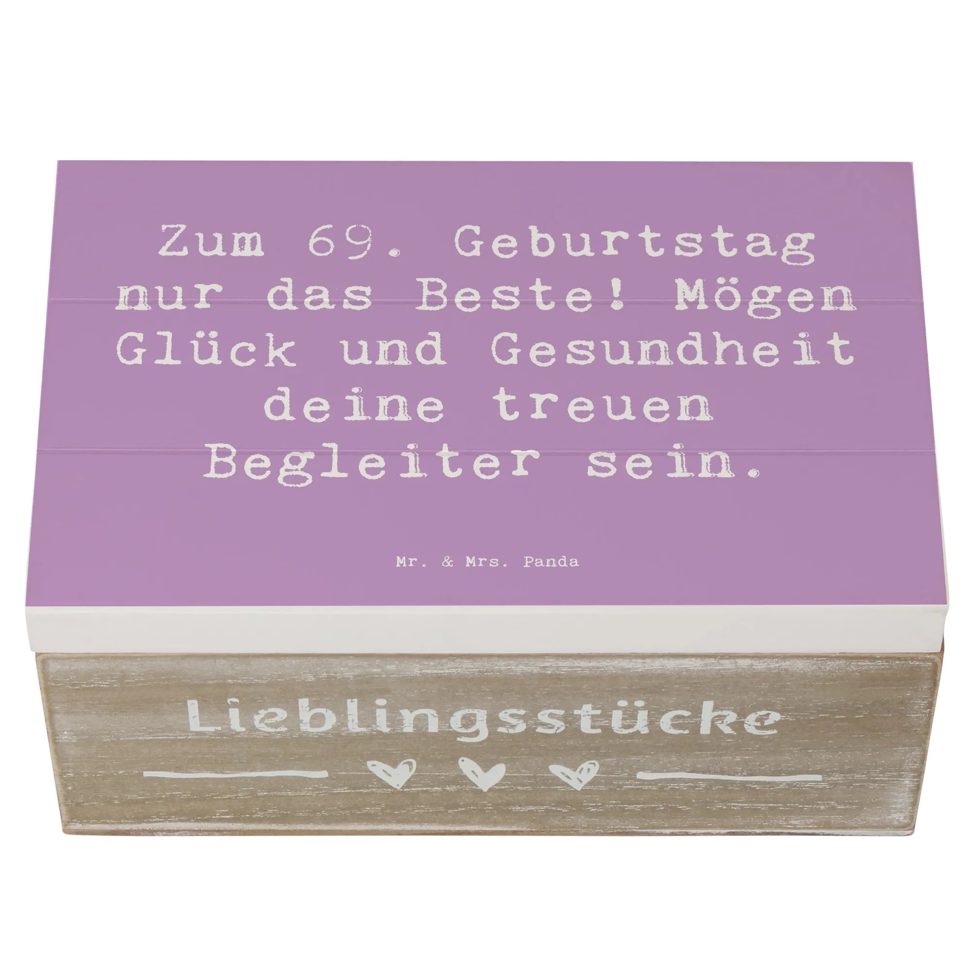 Die wunderschöne Holzkiste von Mr. & Mrs. Panda ist das perfekte Geschenk zum 69. Geburtstag! Mit ihrem liebevollen Motiv und dem Spruch 'Zum 69. Geburtstag nur das Beste! Mögen Glück und Gesundheit deine treuen Begleiter sein.' bringt sie Freude und steht für unvergessliche Momente.