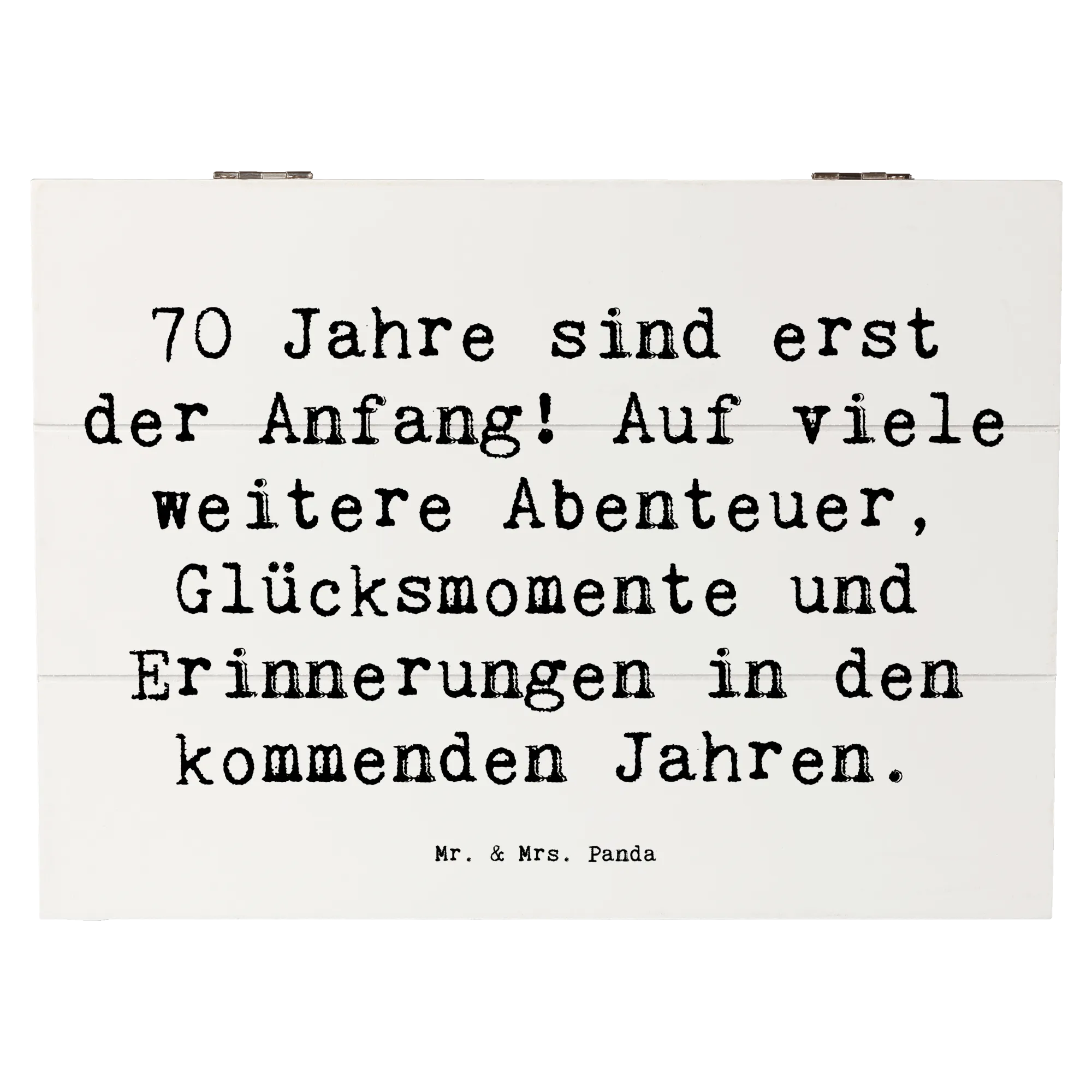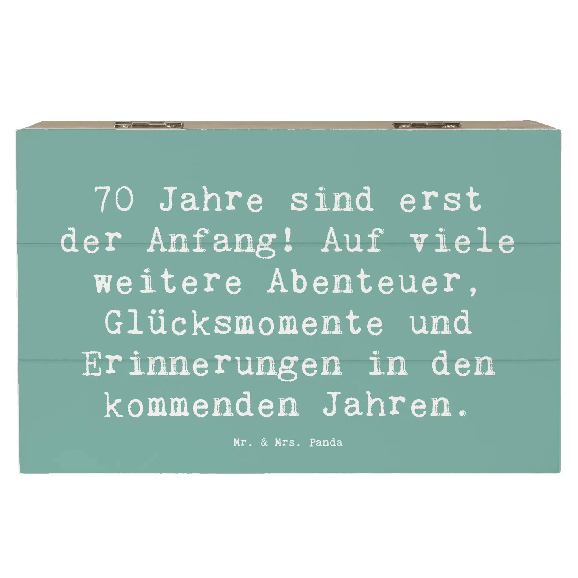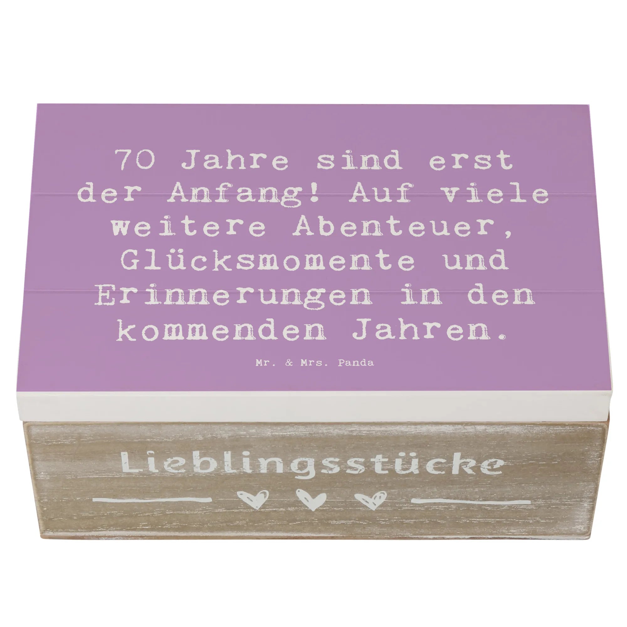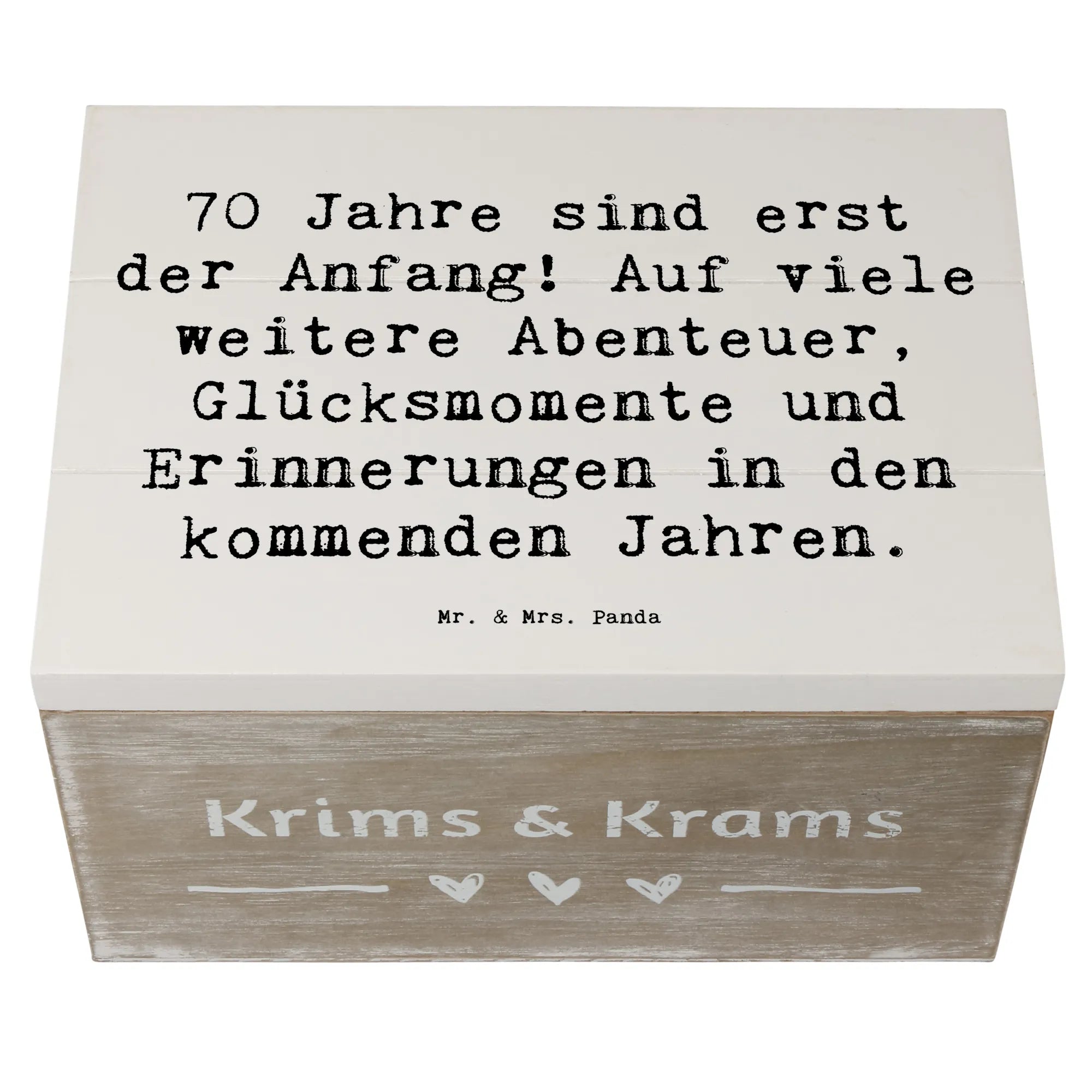 Die wunderschöne Holzkiste von Mr. & Mrs. Panda ist das perfekte Geschenk zum 70. Geburtstag! Sie ist ein wahrer Schatz für die Erinnerungen, die wir im Leben sammeln. Mit dem liebevollen Spruch '70 Jahre sind erst der Anfang! Auf viele weitere Abenteuer, Glücksmomente und Erinnerungen in den kommenden Jahren.' lädt diese Kiste dazu ein, all die kostbaren Momente zu bewahren.