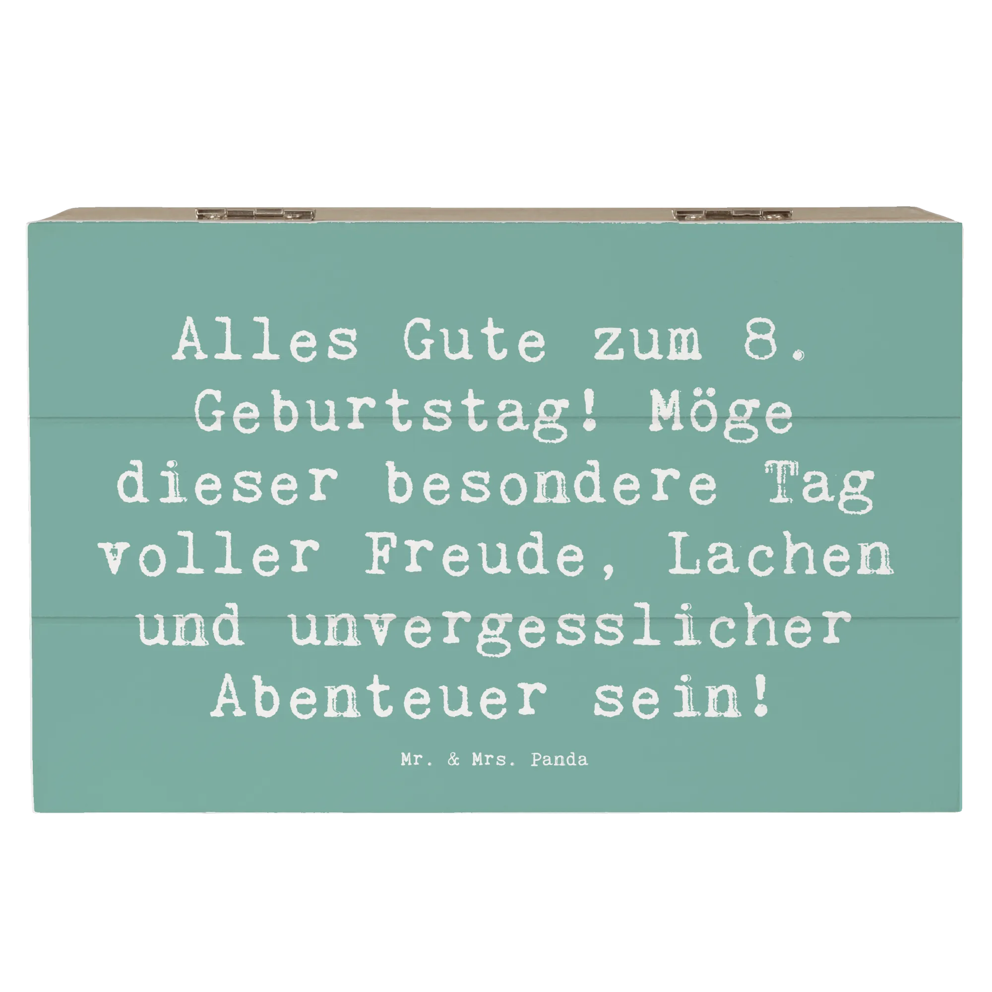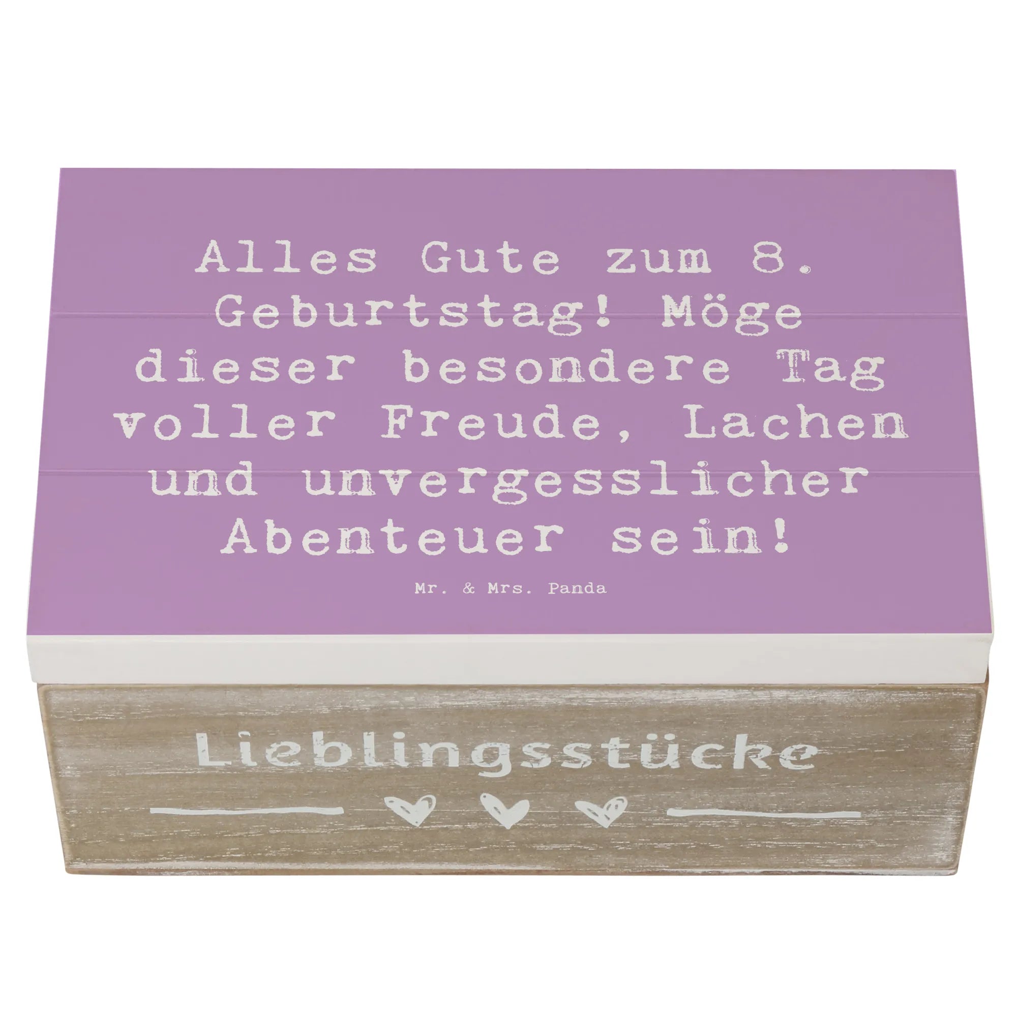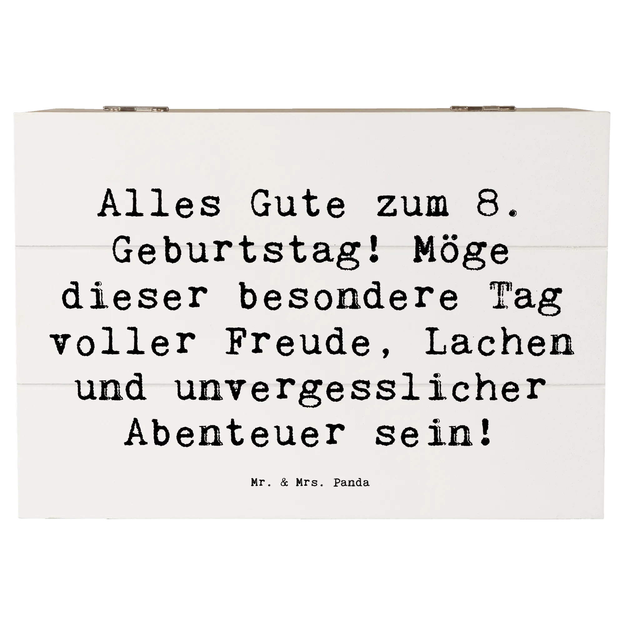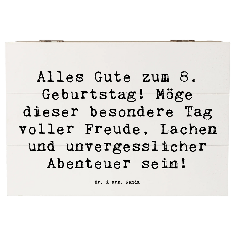 Diese wunderschöne Holzkiste von Mr. & Mrs. Panda ist das perfekte Geschenk zum 8. Geburtstag! Bedruckt mit dem liebevollen Spruch "Alles Gute zum 8. Geburtstag! Möge dieser besondere Tag voller Freude, Lachen und unvergesslicher Abenteuer sein!", bringt sie alles mit, was du für einen gelungenen Geburtstag brauchst.