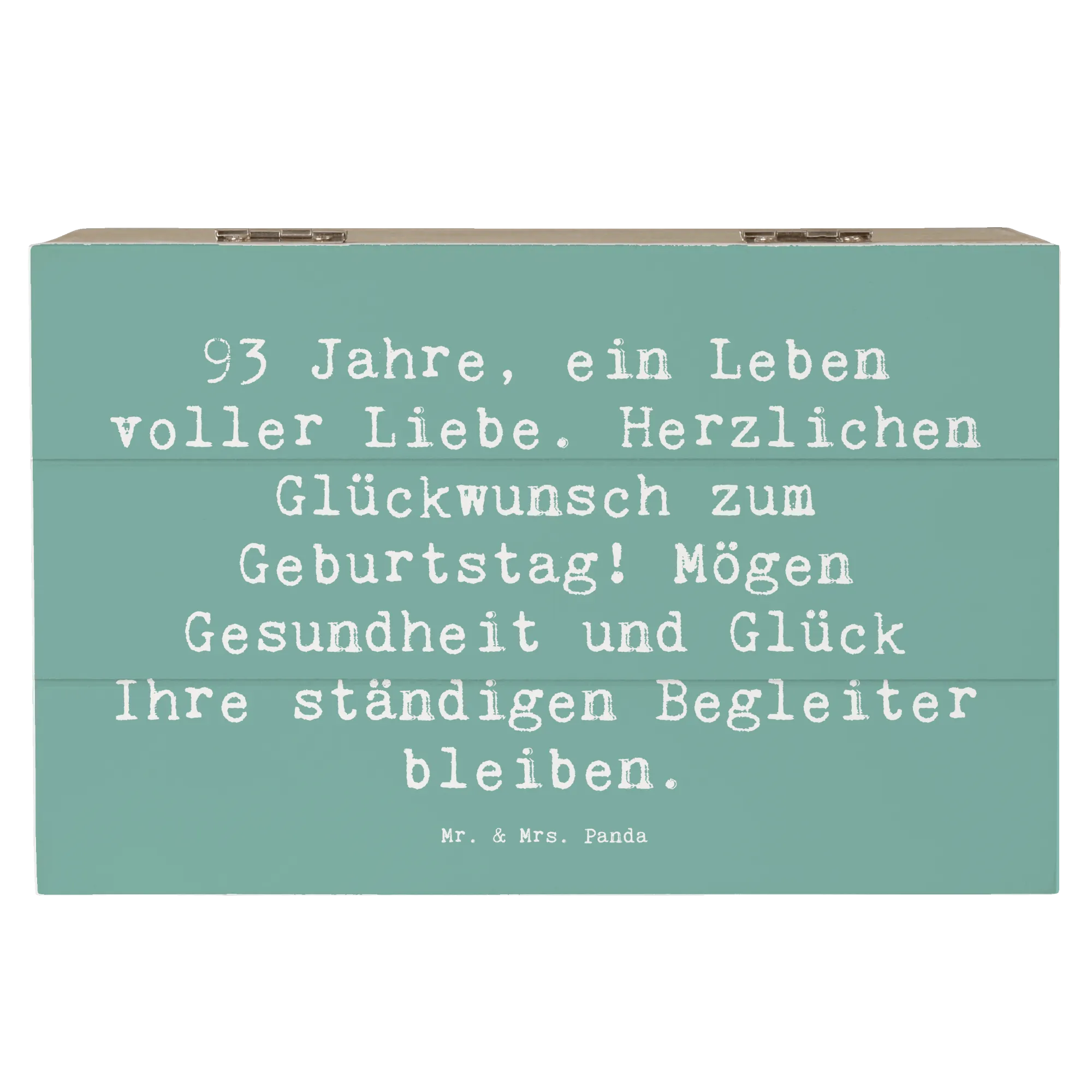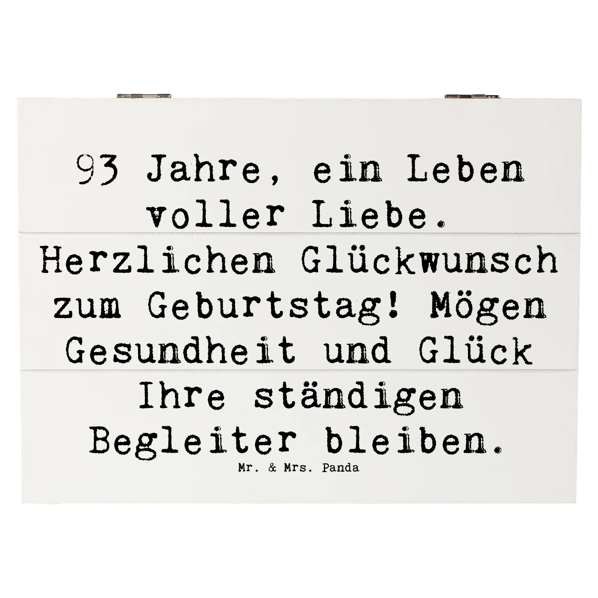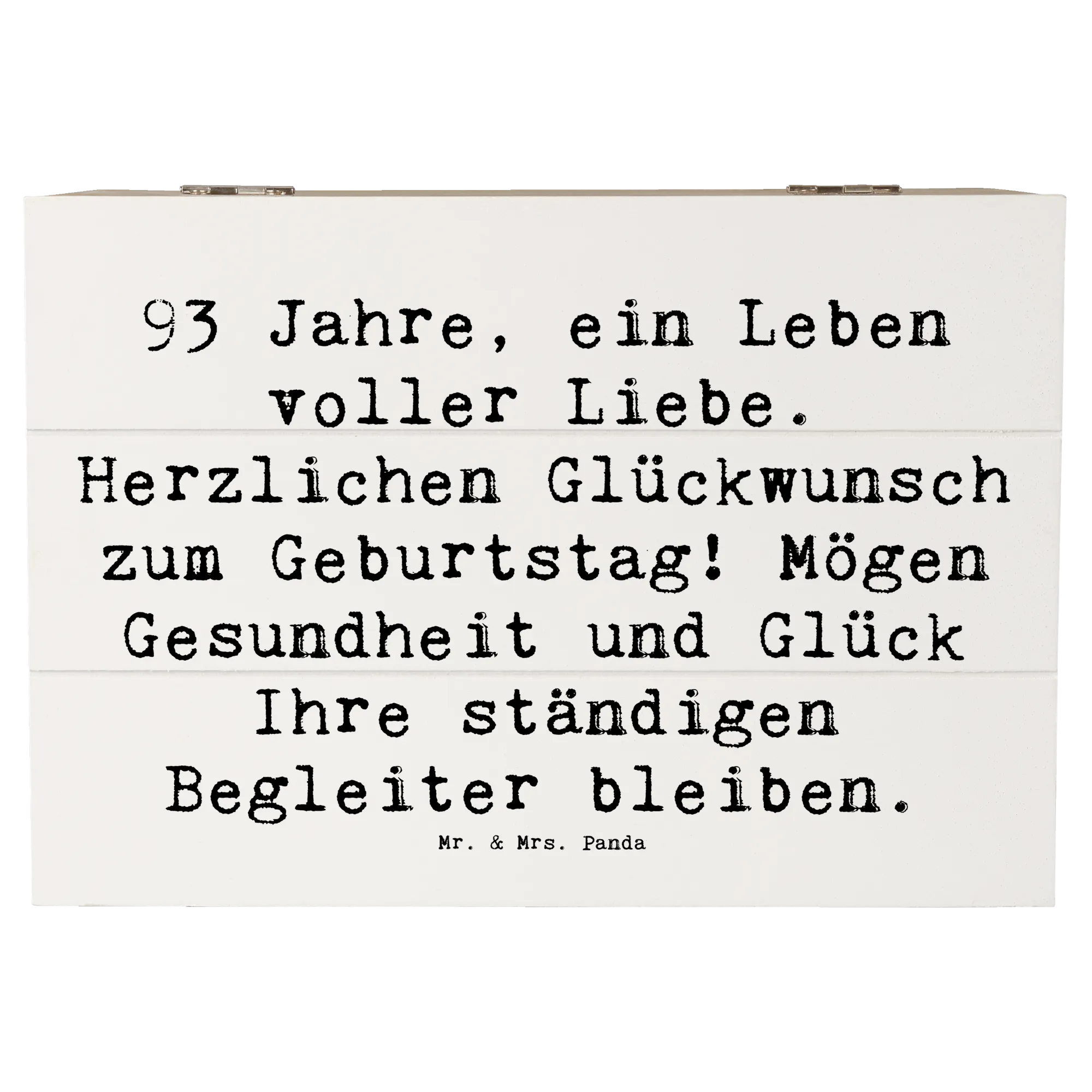 Die wunderschöne Holzkiste von Mr. & Mrs. Panda mit dem Motiv zum 93. Geburtstag ist das ideale Geschenk, um diesen besonderen Tag gebührend zu feiern! Mit dem liebevollen Spruch '93 Jahre, ein Leben voller Liebe. Herzlichen Glückwunsch zum Geburtstag! Mögen Gesundheit und Glück Ihre ständigen Begleiter bleiben.' bringt diese Erinnerungskiste nicht nur ein Lächeln ins Gesicht, sondern hält auch die wertvollsten Schätze und Erinnerungen der letzten 93 Jahre sicher aufbewahrt.