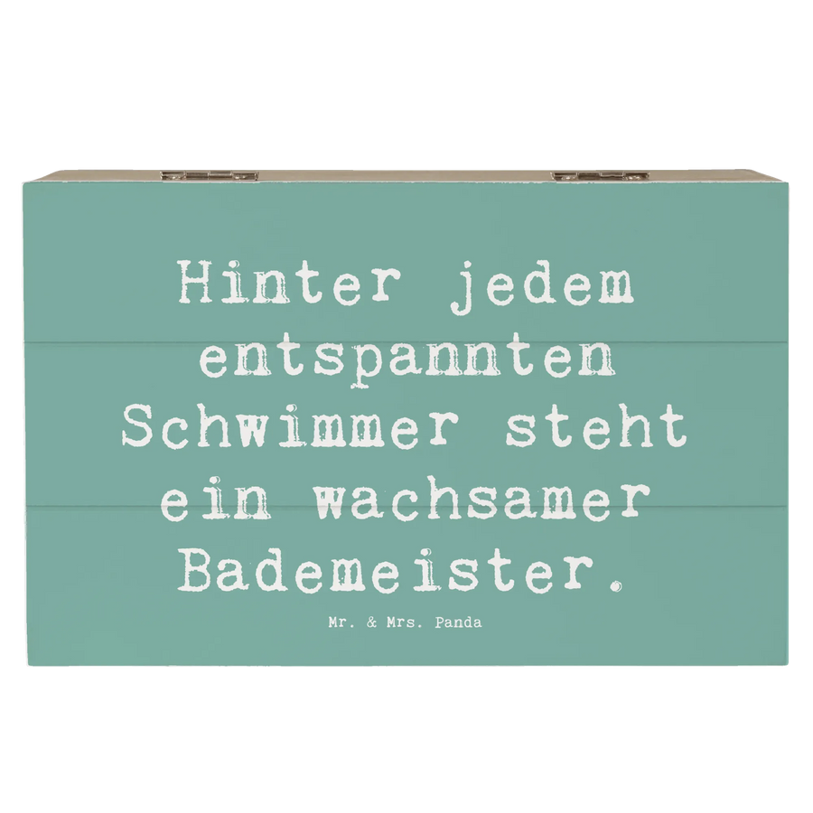 Der Spruch "Hinter jedem entspannten Schwimmer steht ein wachsamer Bademeister" macht diese Kiste zu einem perfekten Highlight in jedem Raum oder Büro. Ideal als nachhaltige und wiederverwendbare Geschenkbox ist sie nicht nur ein praktisches Accessoire, sondern zeigt auch Wertschätzung und Gedanken an den Beschenkten.