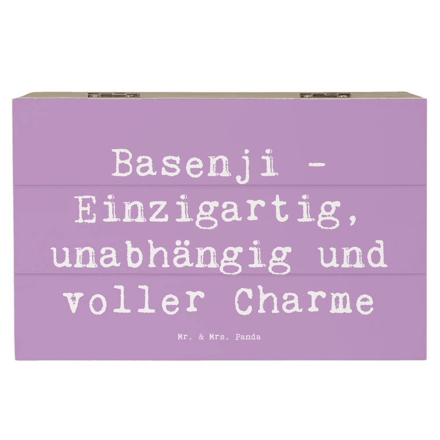 Die wunderschöne Holzkiste von Mr. & Mrs. Panda mit dem Motiv Basenji ist das perfekte Geschenk für jeden Hundefan! Mit ihrem einzigartigen Design, das die charmante Hunderasse Basenji feiert, zieht sie garantiert alle Blicke auf sich.