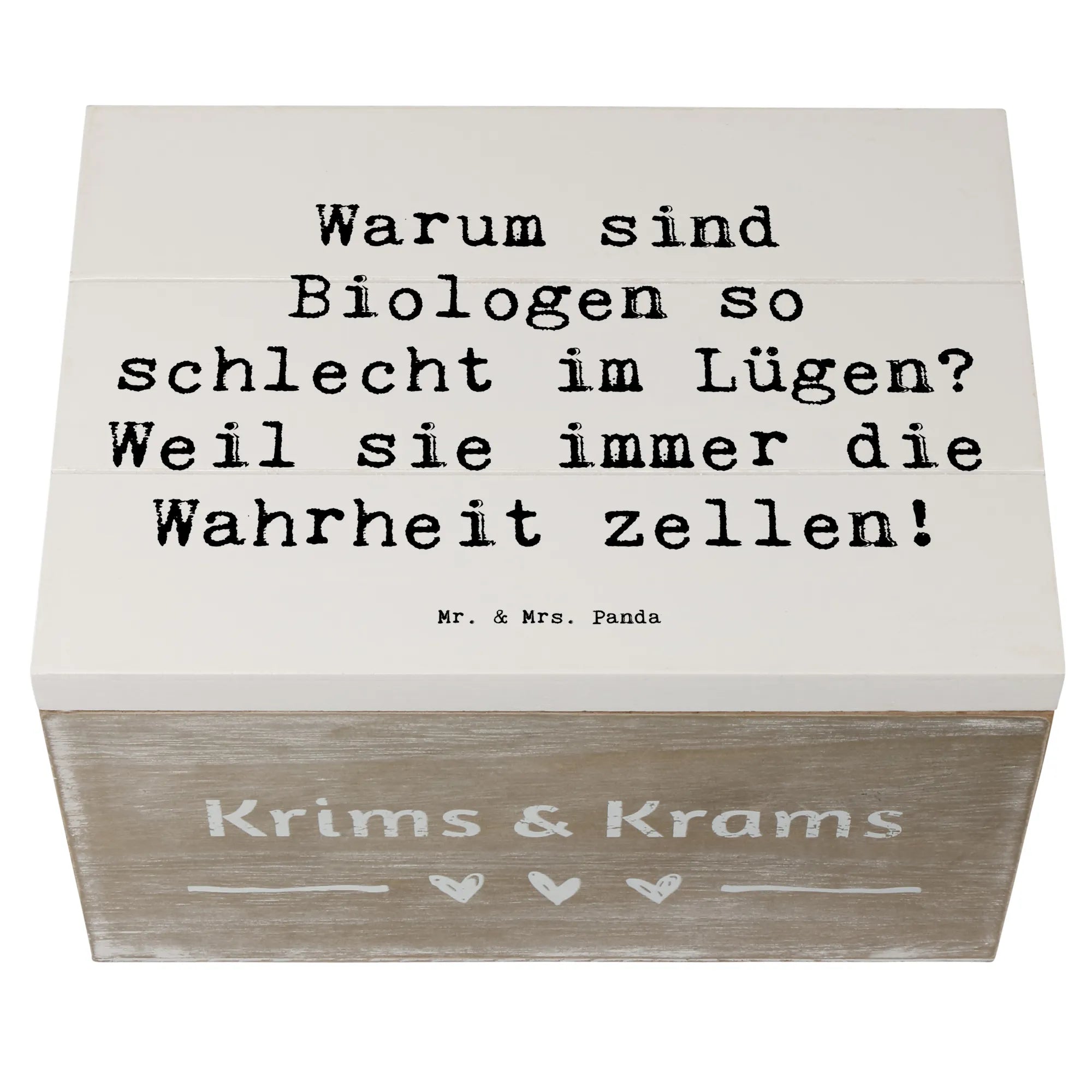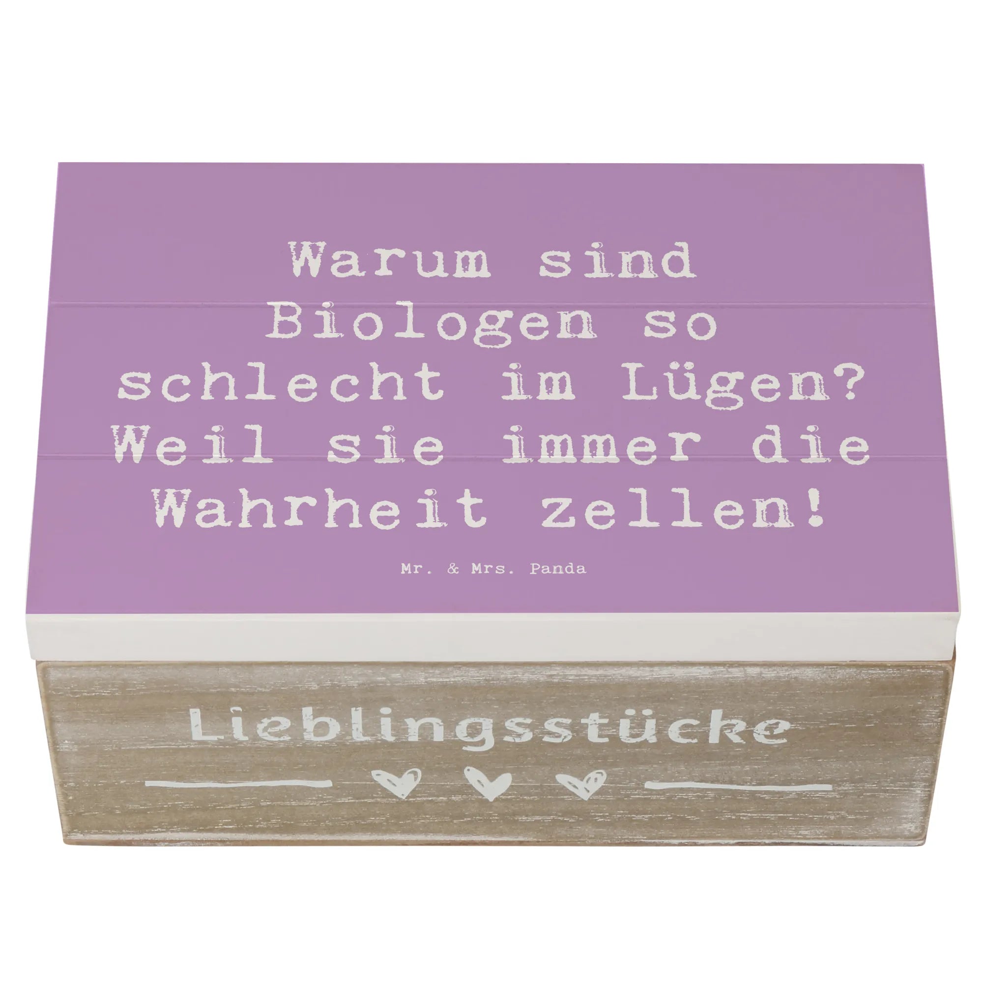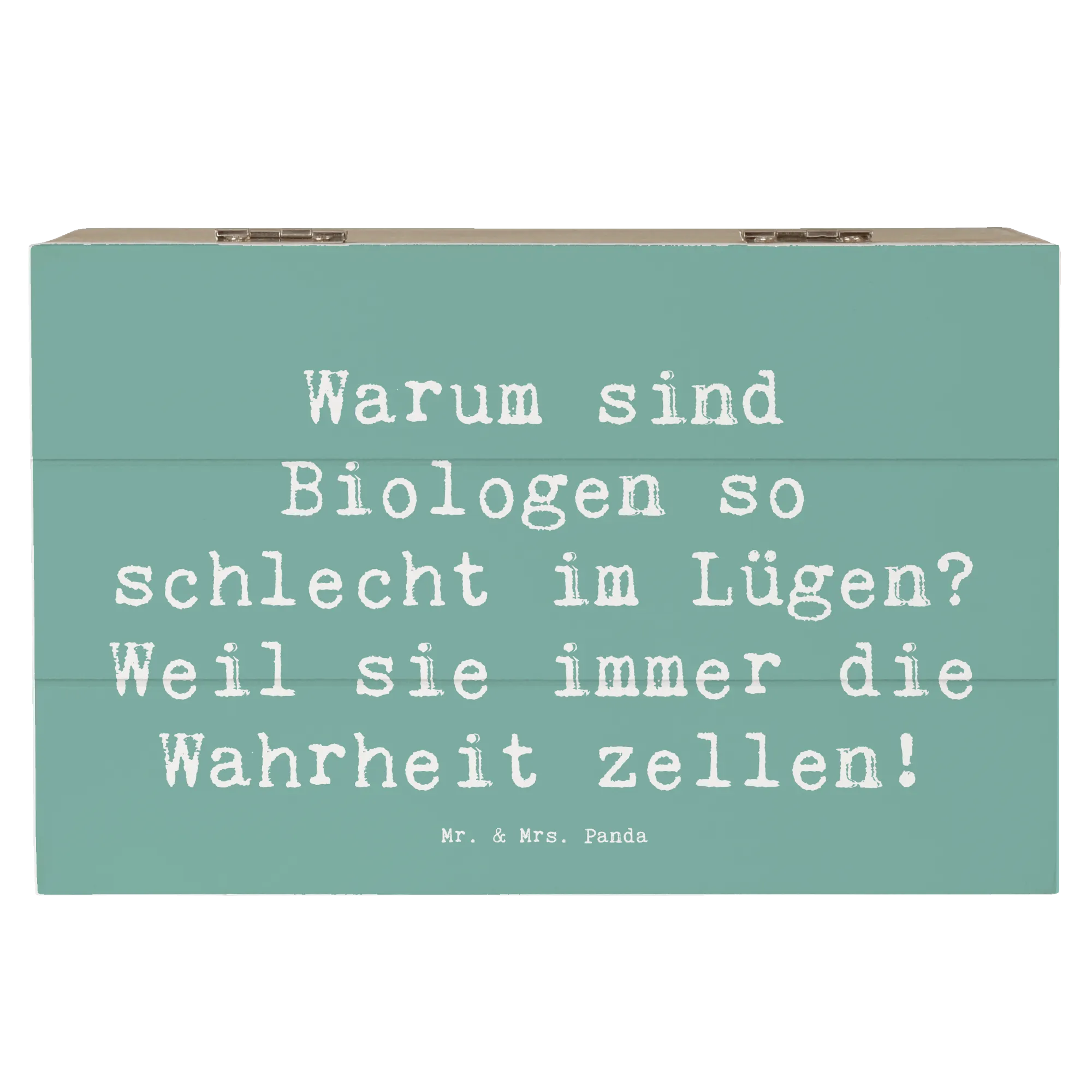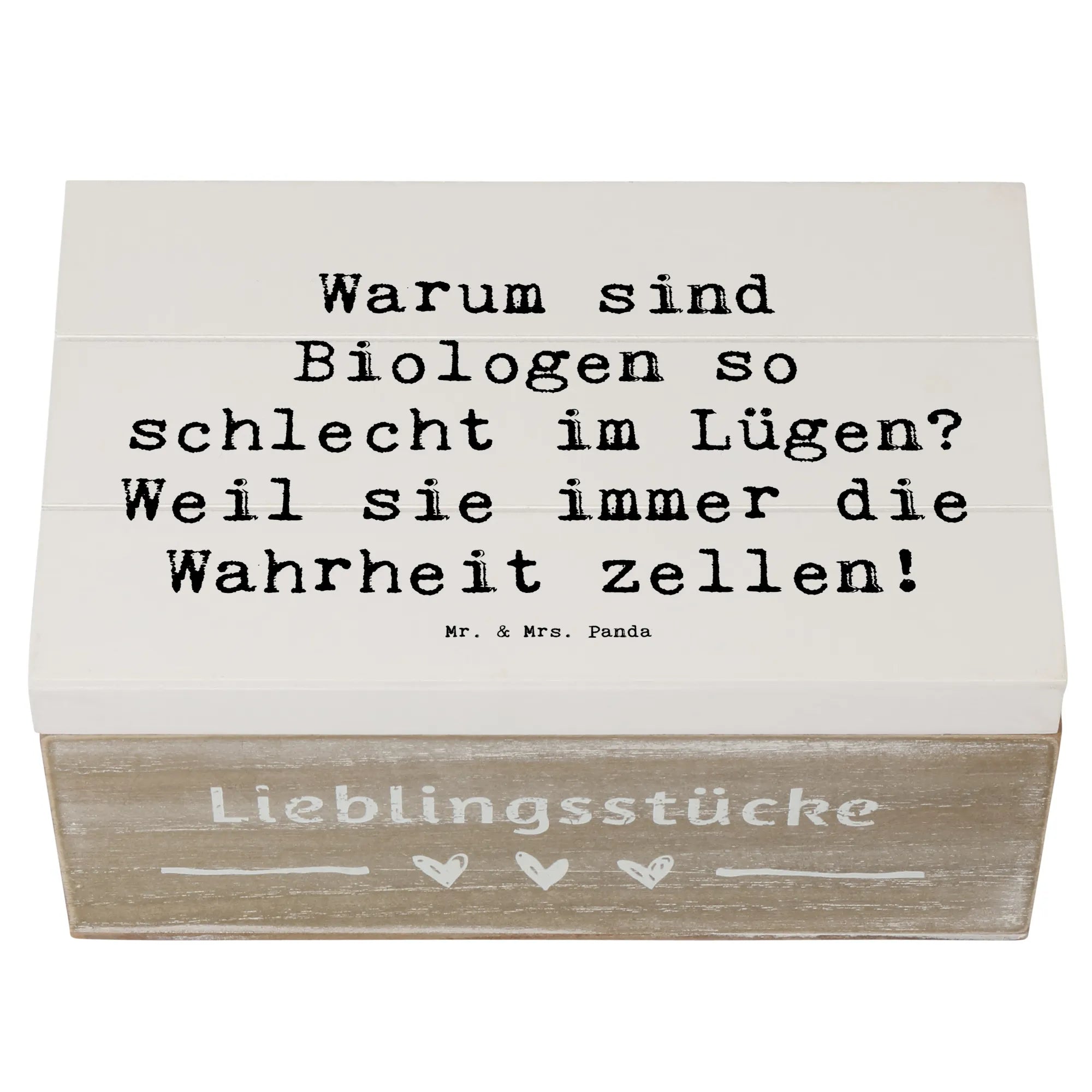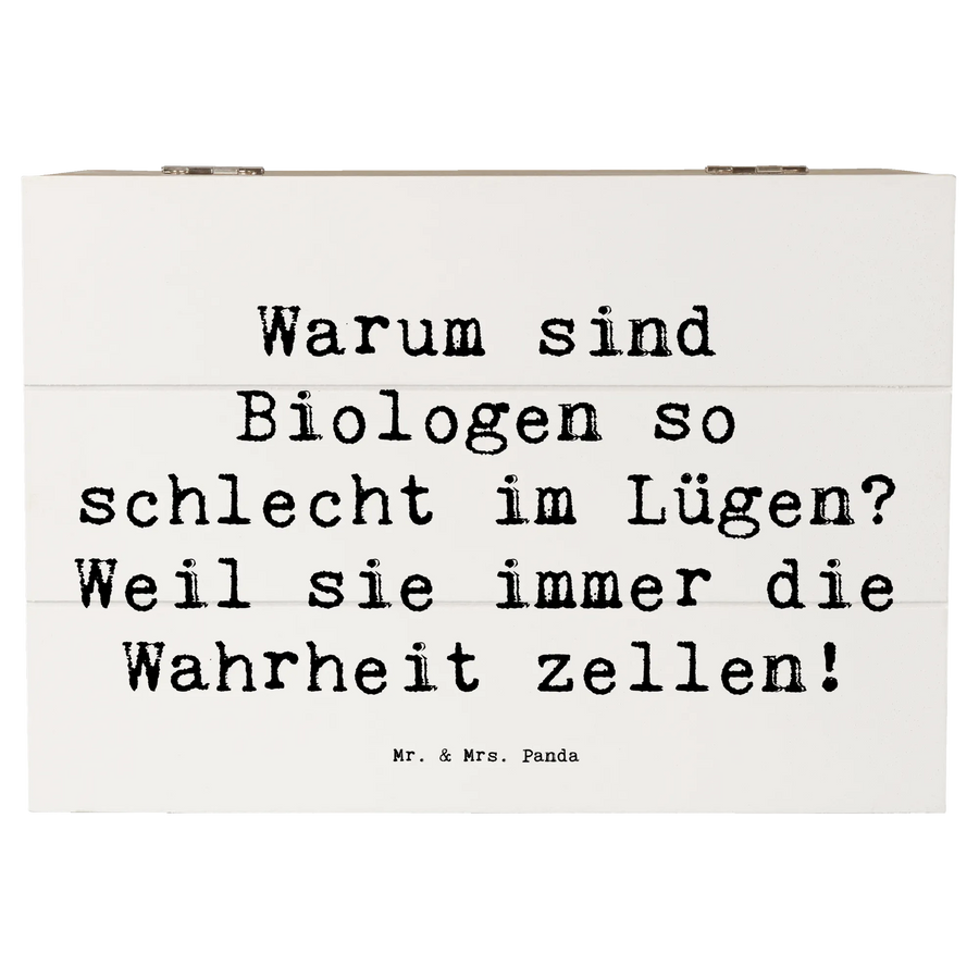 Entdecke die bezaubernde Holzkiste von Mr. & Mrs. Panda, die speziell für alle Biologinnen und Biologen entworfen wurde! Mit dem liebevollen Spruch "Warum sind Biologen so schlecht im Lügen? Weil sie immer die Wahrheit zellen!" bringt diese Kiste nicht nur ein Lächeln auf Dein Gesicht, sondern ist auch der perfekte Aufbewahrungsort für all Deine wertvollen Erinnerungen. Ob Du sie für Deine Kindheitserinnerungen, Fotos oder kleine Schätze nutzt – diese Erinnerungskiste ist vielseitig einsetzbar und bietet einen sicheren Platz für alles, was Dir am Herzen liegt.
