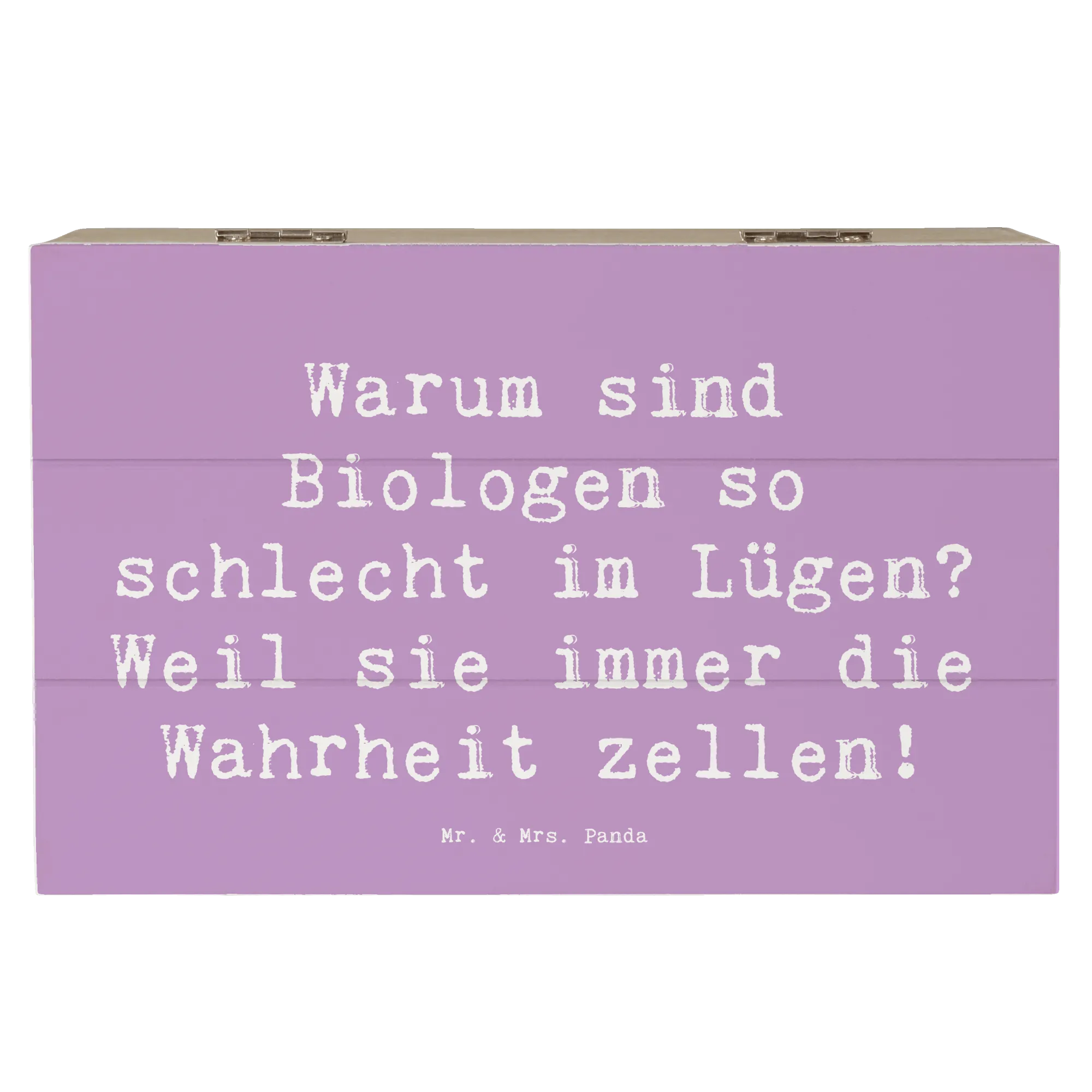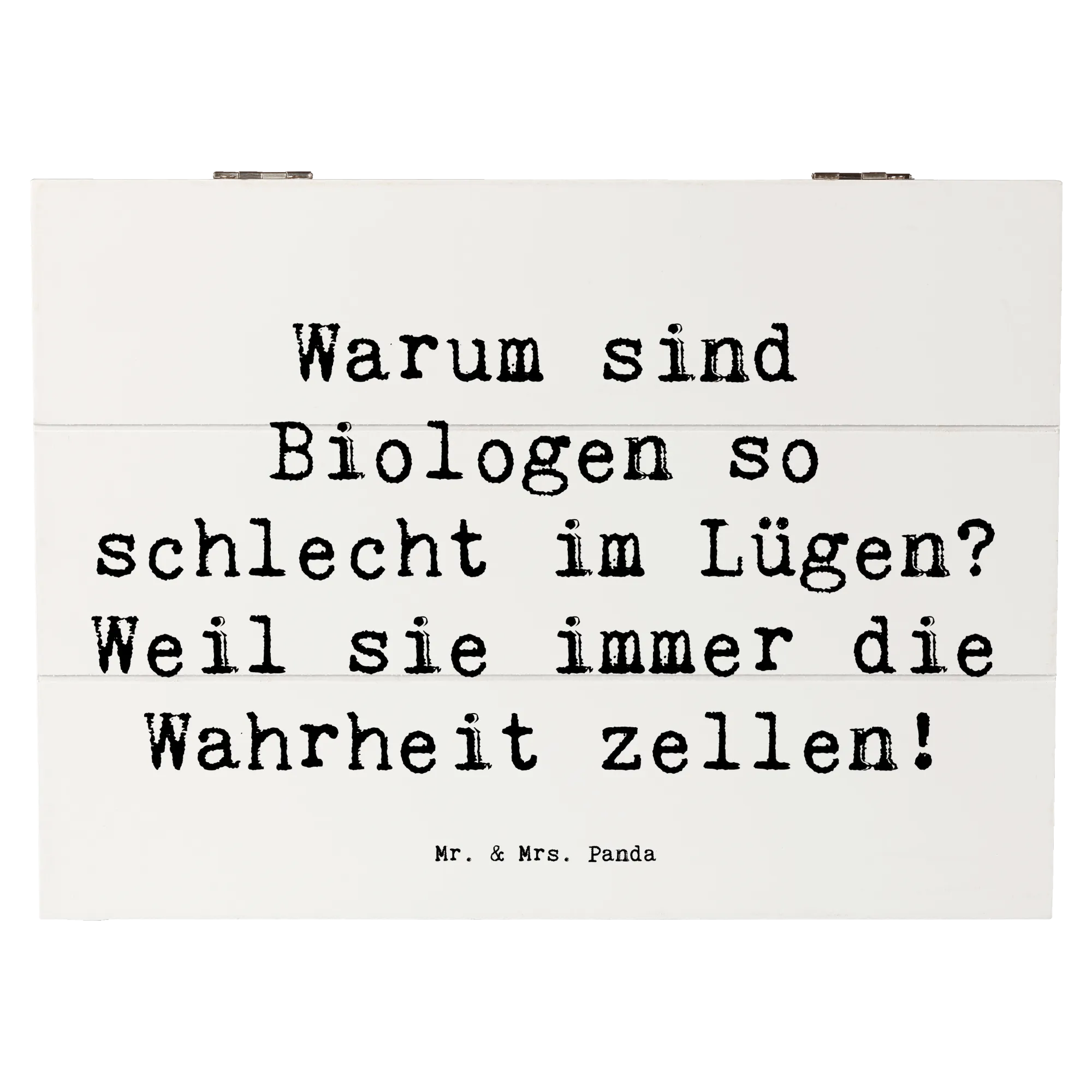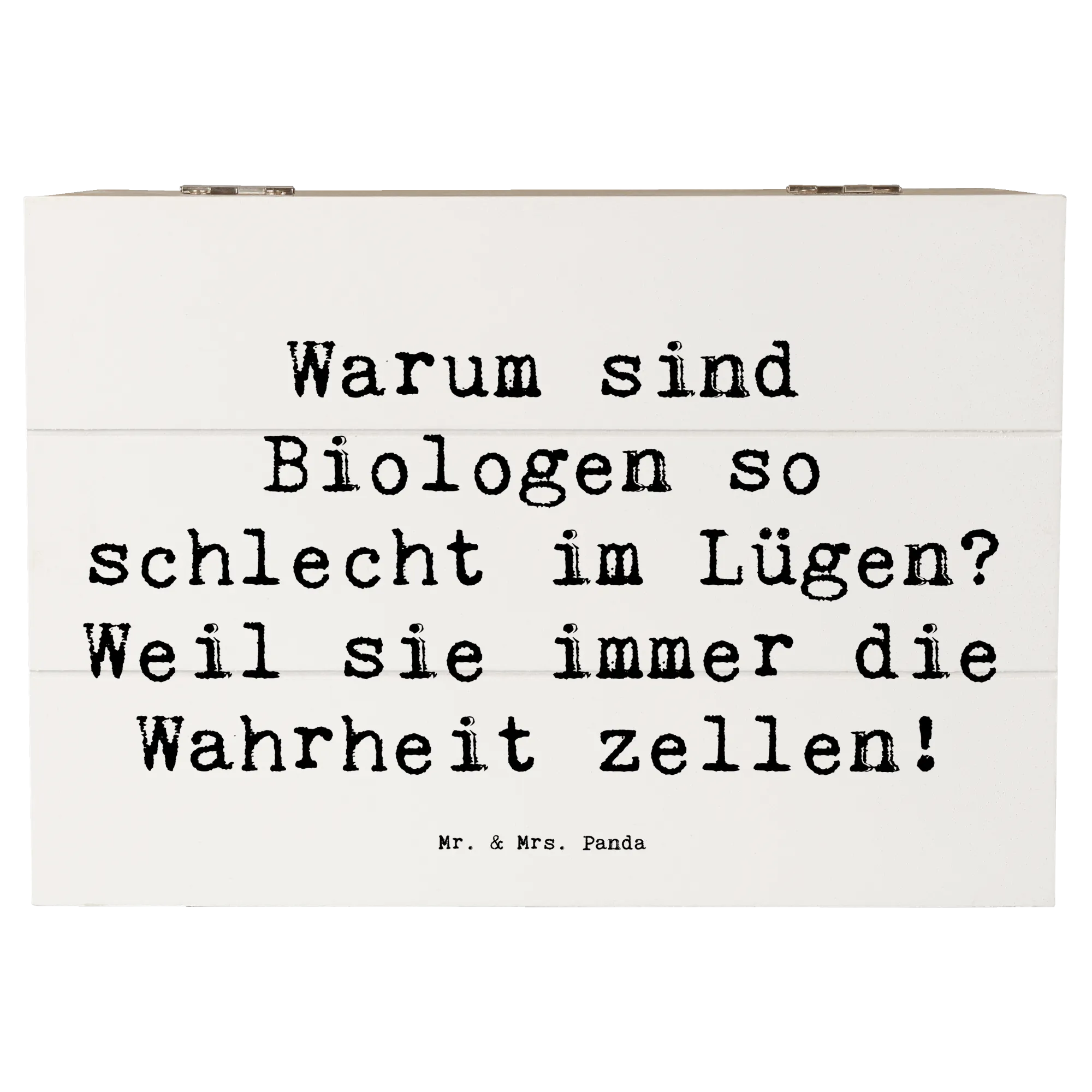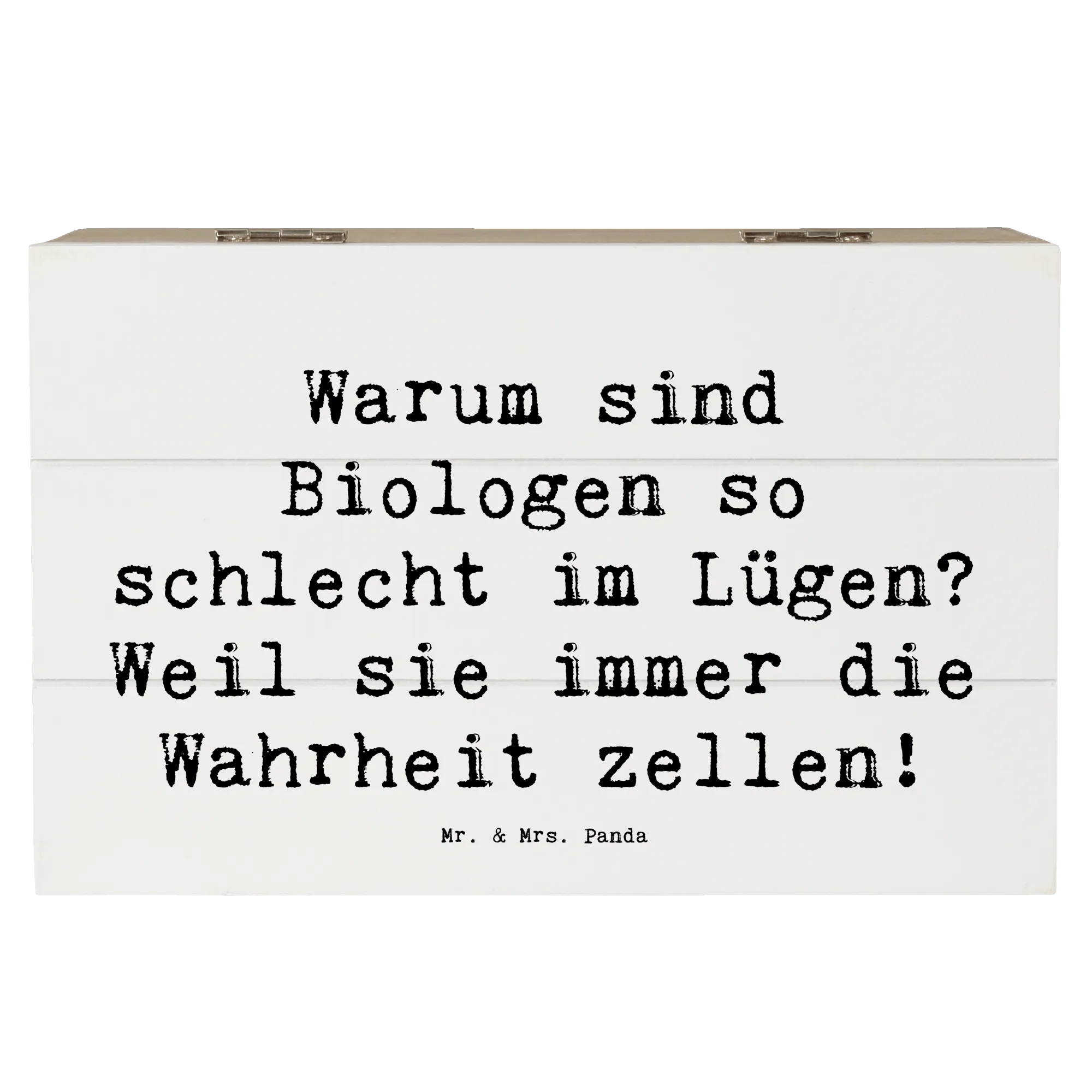 Entdecke die bezaubernde Holzkiste von Mr. & Mrs. Panda, die speziell für alle Biologinnen und Biologen entworfen wurde! Mit dem liebevollen Spruch "Warum sind Biologen so schlecht im Lügen? Weil sie immer die Wahrheit zellen!" bringt diese Kiste nicht nur ein Lächeln auf Dein Gesicht, sondern ist auch der perfekte Aufbewahrungsort für all Deine wertvollen Erinnerungen. Ob Du sie für Deine Kindheitserinnerungen, Fotos oder kleine Schätze nutzt – diese Erinnerungskiste ist vielseitig einsetzbar und bietet einen sicheren Platz für alles, was Dir am Herzen liegt.