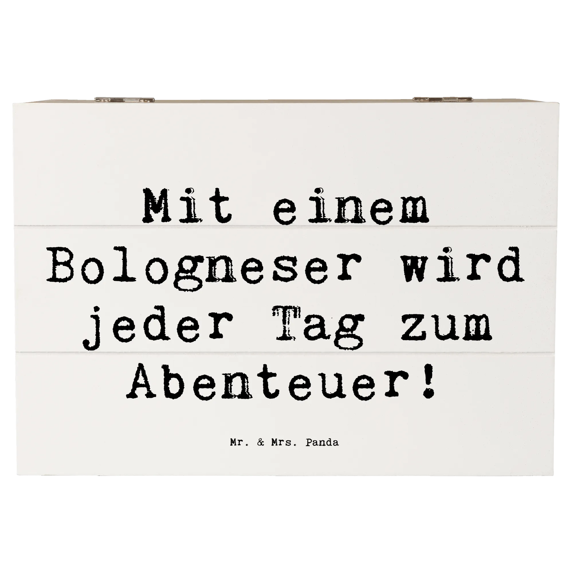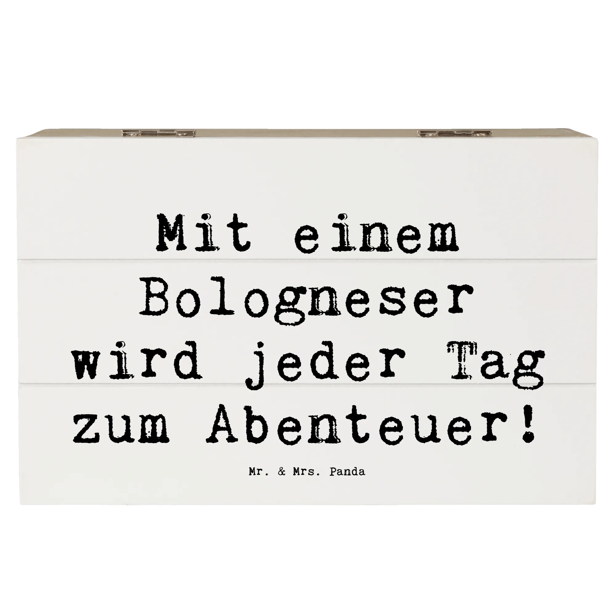 Holzkiste Spruch Bologneser Abenteuer - 22 x 15 cm - Weiß