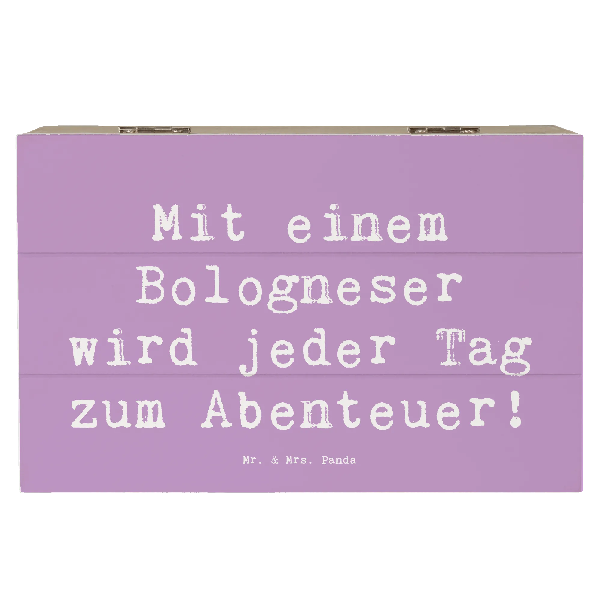 Und das Beste? Wenn du einen Hundefan kennst, ist diese Kiste das ideale Geschenk! Mit dem Spruch 'Mit einem Bologneser wird jeder Tag zum Abenteuer!' zaubert sie jedem ein Lächeln ins Gesicht.