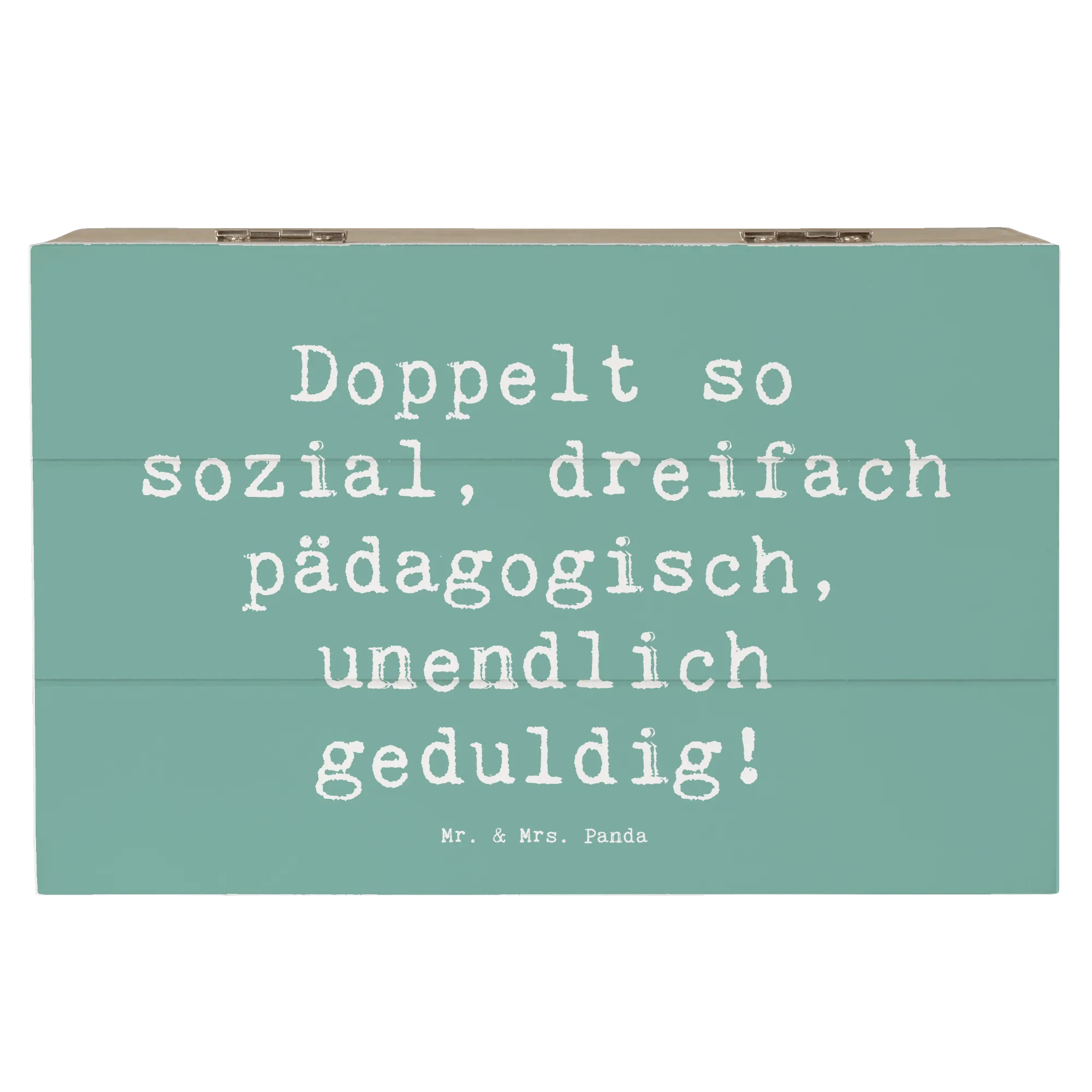 Entdecke die wunderschöne Holzkiste von Mr. & Mrs. Panda, die speziell für Sozialpädagogen entworfen wurde! Diese besondere Kiste ist nicht nur ein stilvolles Aufbewahrungselement, sondern auch ein liebevolles Geschenk, das die Leidenschaft und den Einsatz von Fachleuten in diesem wichtigen Beruf feiert. Mit der liebevollen Aufschrift "Doppelt so sozial, dreifach pädagogisch, unendlich geduldig!" bringt diese Kiste Freude in jedes Zuhause und eignet sich perfekt als Erinnerungskiste für besondere Anlässe.