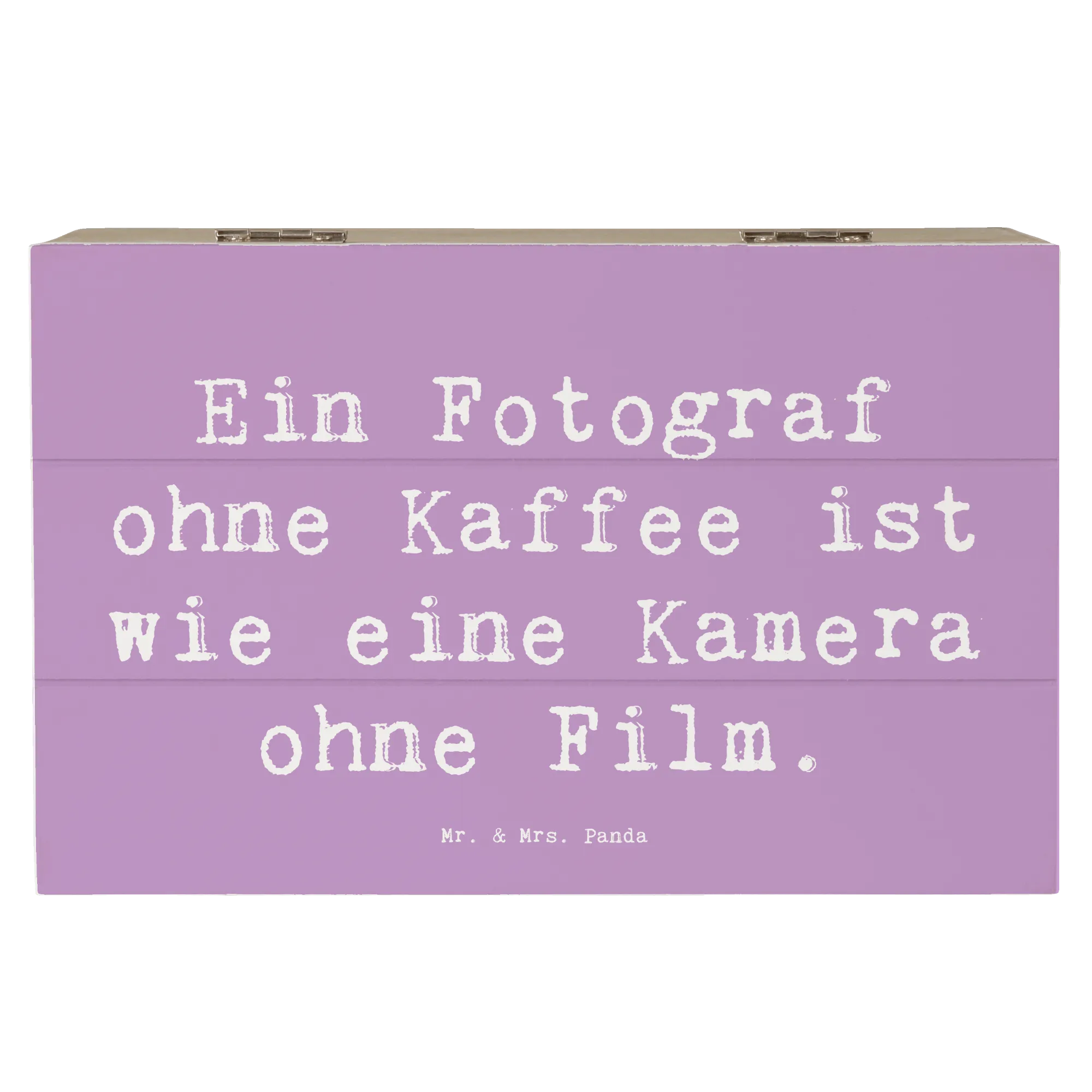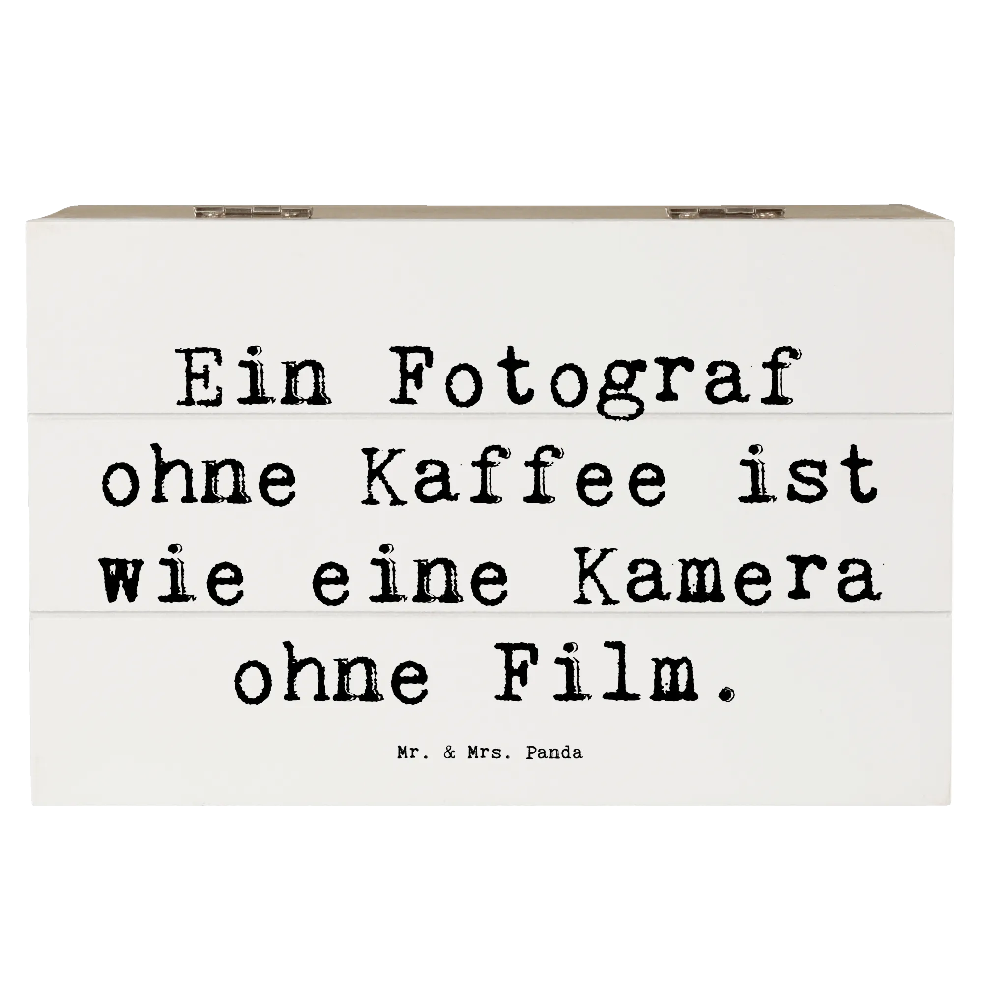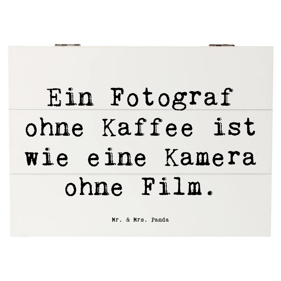 Die Holzkiste Fotograf aus der Kollektion Berufe von Mr. & Mrs. Panda ist das perfekte Geschenk für jeden, der sein kreatives Schaffen liebt und Wert auf liebevolle Details legt. Diese wunderschöne Kiste mit dem Spruch 'Ein Fotograf ohne Kaffee ist wie eine Kamera ohne Film.' ist mehr als nur eine Aufbewahrungsbox; sie ist ein echtes Highlight in jedem Raum!