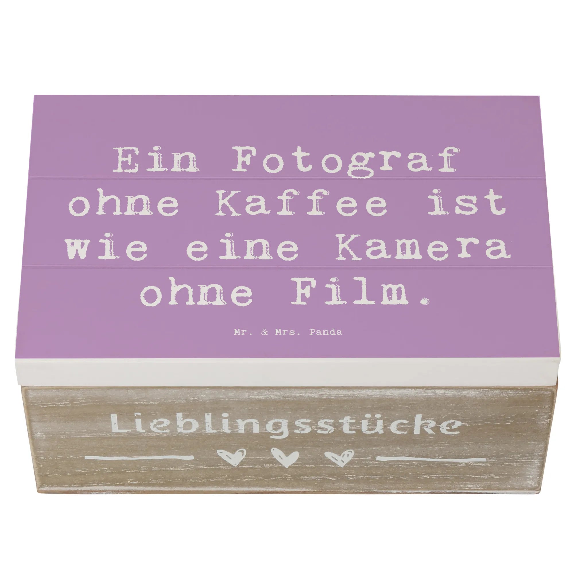 Wer seine Liebe zur Fotografie zeigen möchte, findet in dieser Kiste eine wunderbare Möglichkeit. Zudem ist sie auch eine tolle Geschenkidee für Fotografen, die ihren Beruf mit Herz und Leidenschaft ausüben. Mit jeder Kiste von Mr. & Mrs. Panda erhältst Du ein Stück Kunst, das nicht nur durch den liebevollen Spruch besticht, sondern auch durch die Qualität und das durchdachte Design.