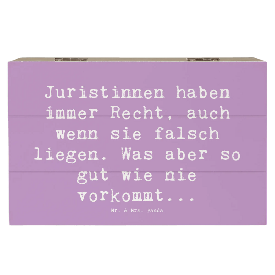 Entdecke die wunderschöne Holzkiste von Mr. & Mrs. Panda, perfekt für alle Juristinnen! Mit dem zauberhaften Spruch „Juristinnen haben immer Recht, auch wenn sie falsch liegen. Was aber so gut wie nie vorkommt...“ wird diese Kiste zum idealen Aufbewahrungsort für all deine wertvollen Erinnerungen.