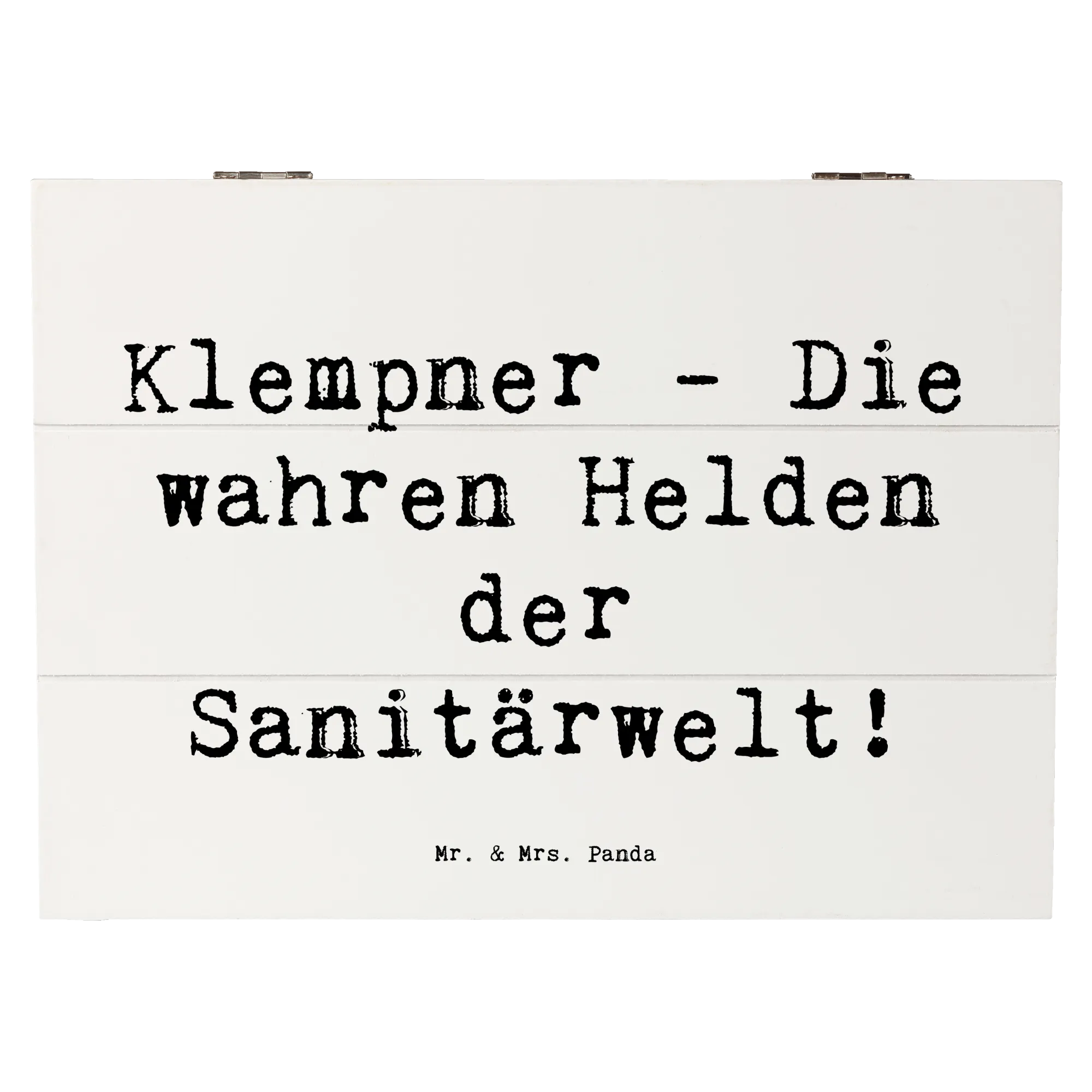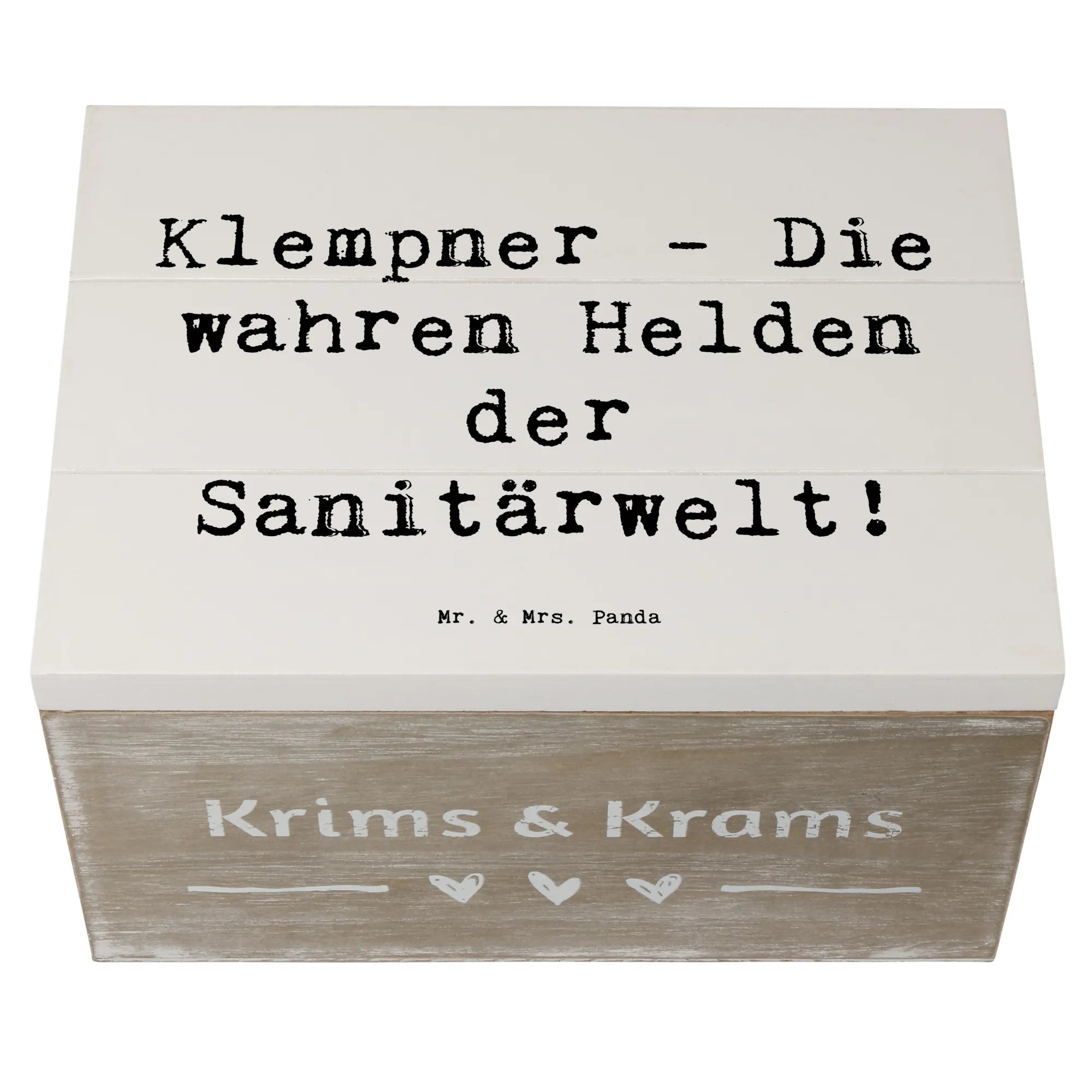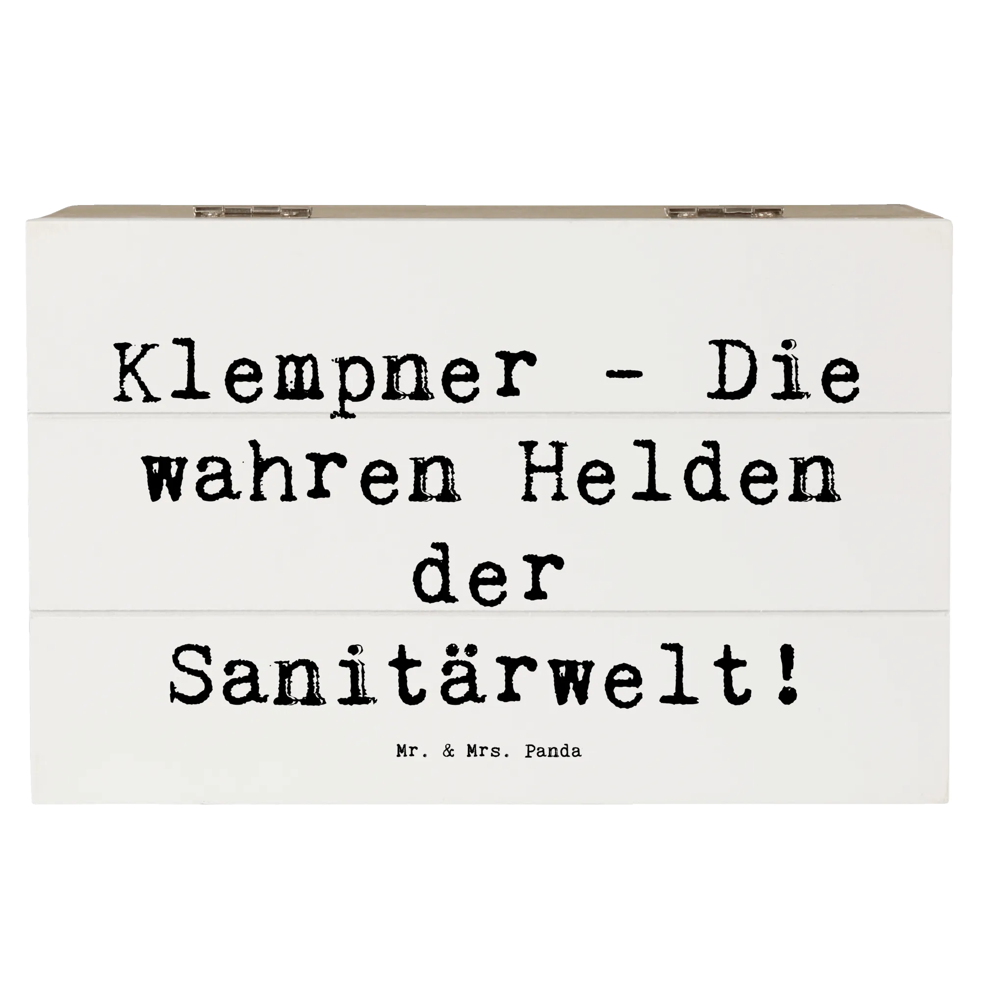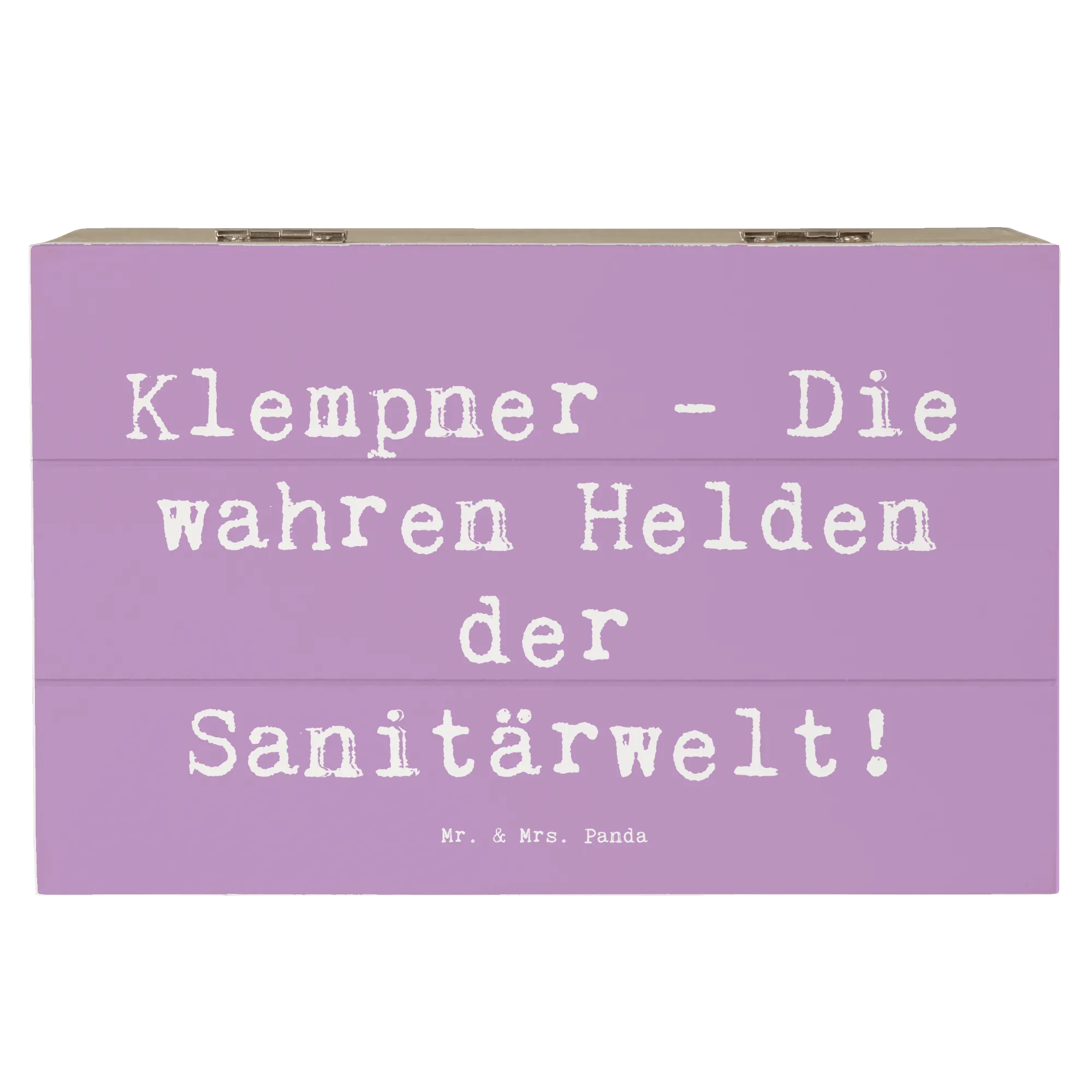 Die Holzkiste mit dem wundervollen Motiv "Klempner - Die wahren Helden der Sanitärwelt!" von Mr. & Mrs. Panda ist das perfekte Geschenk für alle, die in diesem Beruf arbeiten oder einfach großen Respekt vor den Fähigkeiten der Klempner haben. Diese zauberhafte Erinnerungskiste ist nicht nur geschmackvoll gestaltet, sondern bietet auch den idealen Platz für all Deine wertvollen Schätze und Erinnerungen.