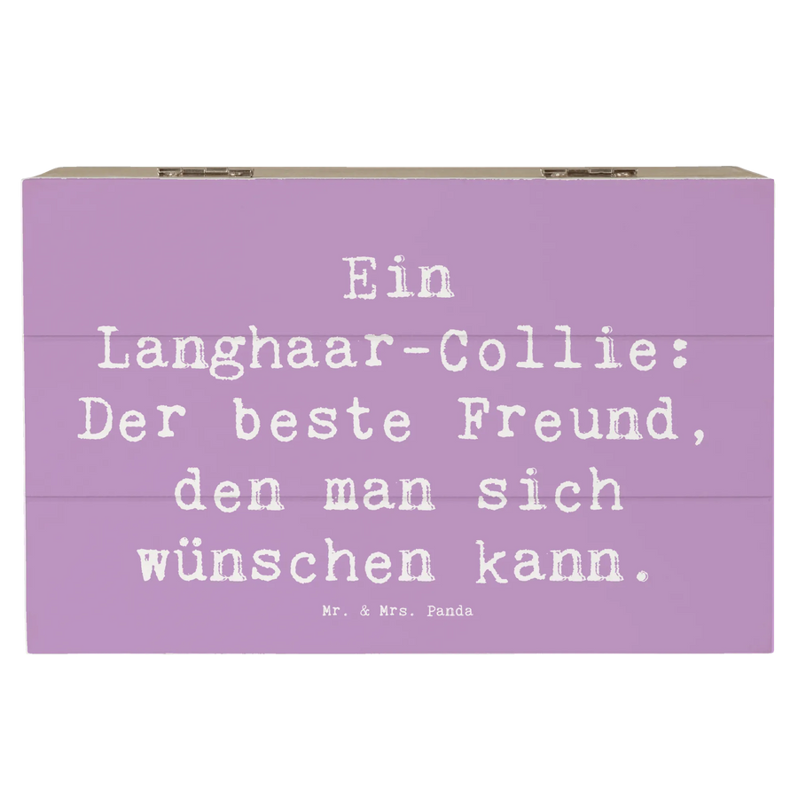 Die Holzkiste mit dem bezaubernden Motiv des Langhaar-Collies von Mr. & Mrs. Panda ist das perfekte Geschenk für alle Hundefreunde. Mit einem liebevollen Spruch, der besagt: "Ein Langhaar-Collie: Der beste Freund, den man sich wünschen kann", wird diese Kiste zum idealen Aufbewahrungsort für die schönsten Erinnerungen.