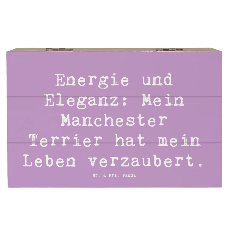 Der Spruch 'Energie und Eleganz: Mein Manchester Terrier hat mein Leben verzaubert.' verleiht der Kiste eine persönliche Note und macht sie zu einem besonderen Geschenk zu Anlässen wie Geburtstagen, Hochzeiten oder sogar zu Weihnachten.