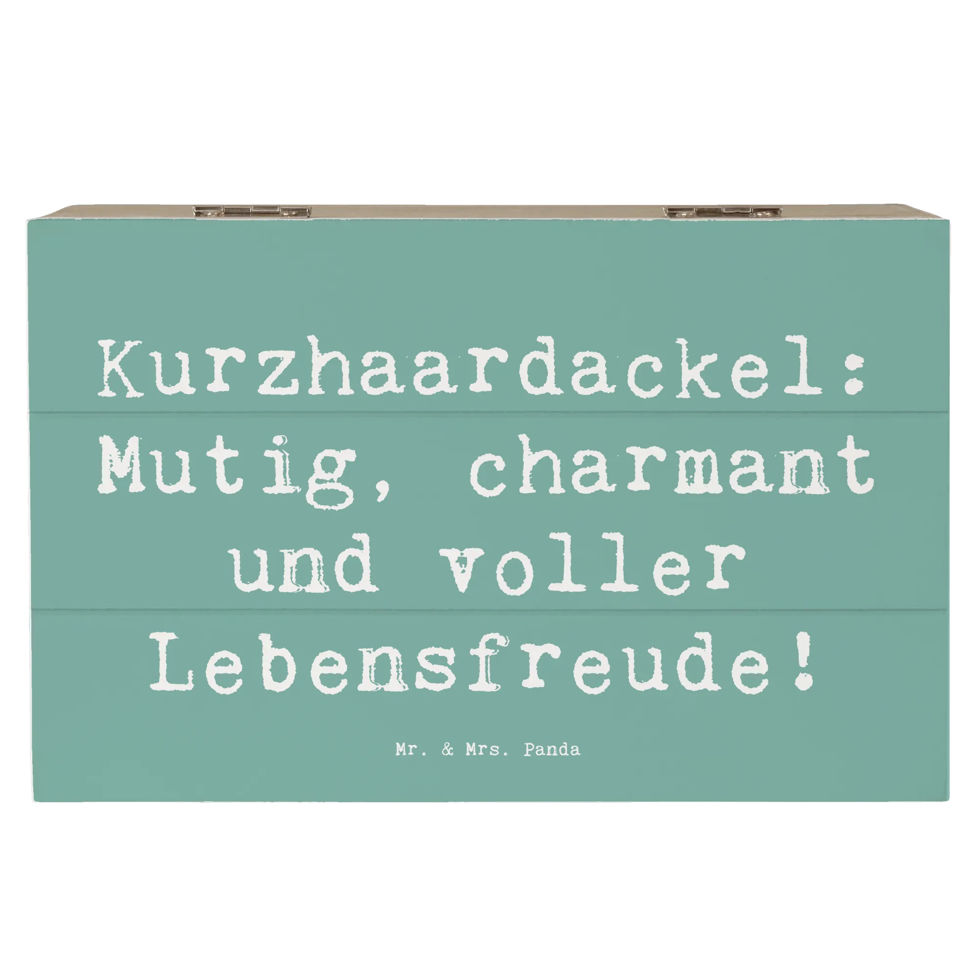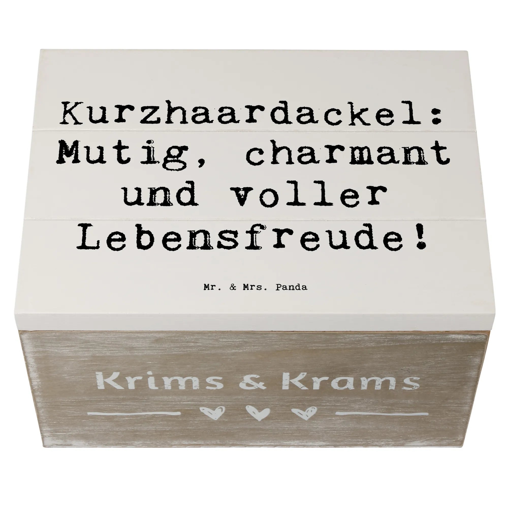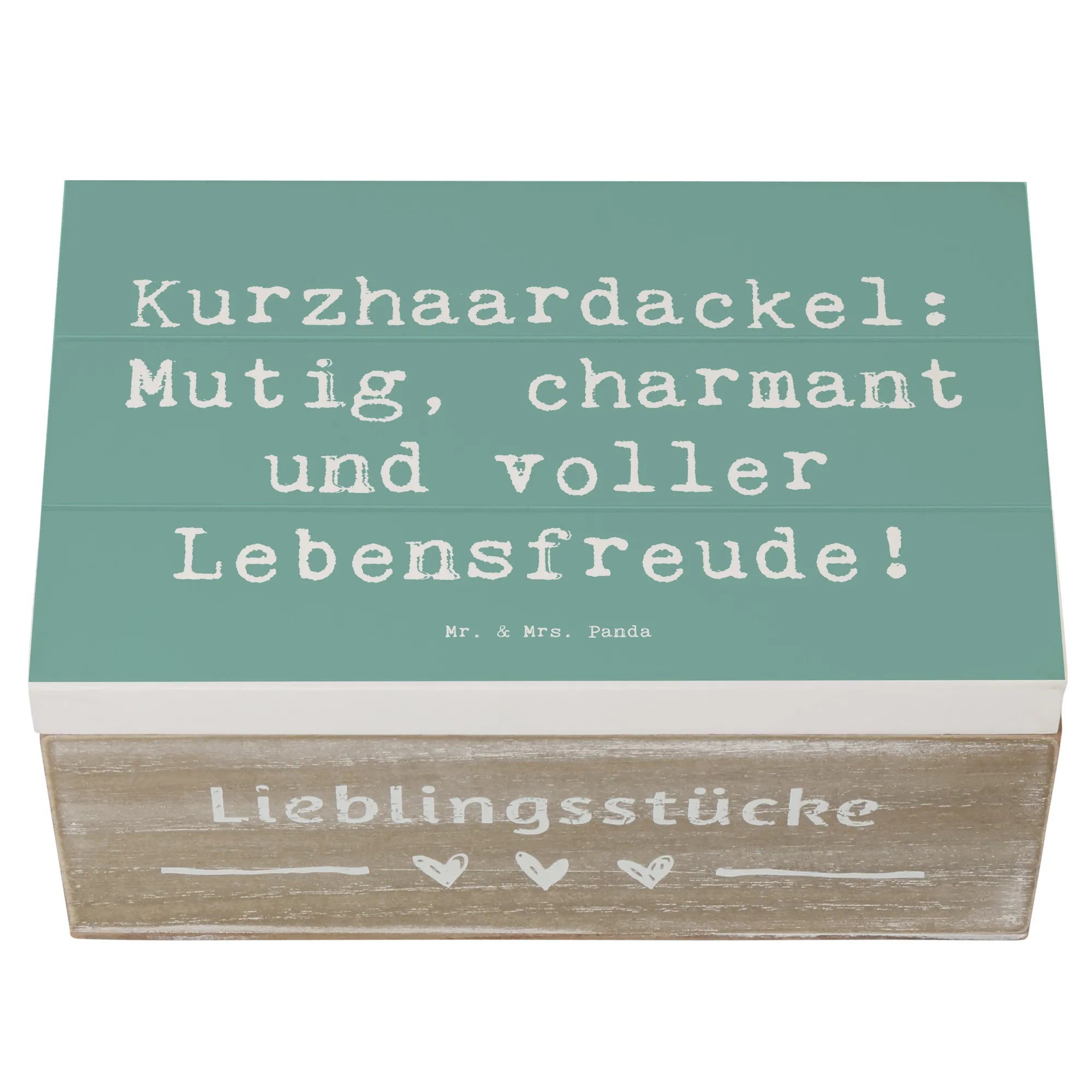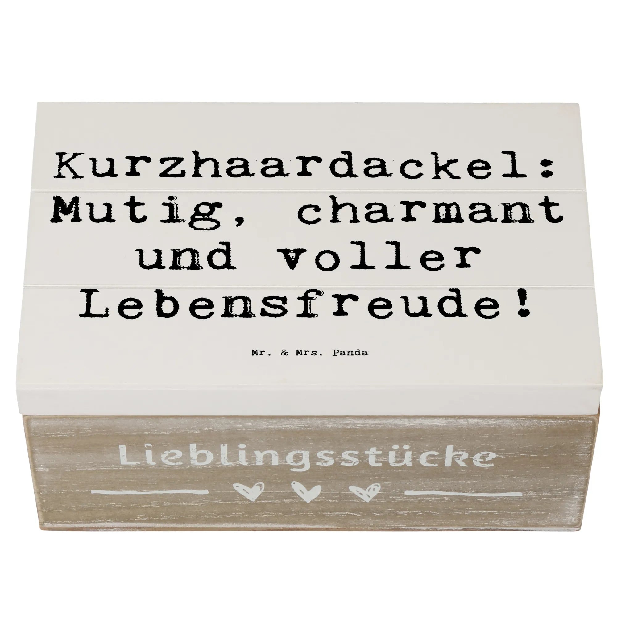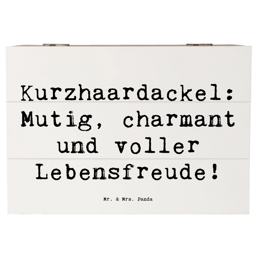 Entdecke die zauberhafte Holzkiste mit dem süßen Motiv des Kurzhaardackels von Mr. & Mrs. Panda! Diese wunderschöne Kiste ist nicht nur ein echter Blickfang, sondern auch die perfekte Aufbewahrungsbox für all Deine wertvollen Schätze. Ob als Erinnerungskiste für besondere Anlässe wie Kommunion, Konfirmation oder die unvergesslichen Momente der Kindheit – mit dieser Kiste hast Du einen stilvollen Platz für all Deine Erinnerungen. Mit den Maßen von 25 x 18 cm und einem Gewicht von 750 g passt sie perfekt in jedes Zuhause und bietet ausreichend Platz für Fotos, kleine Andenken und mehr.