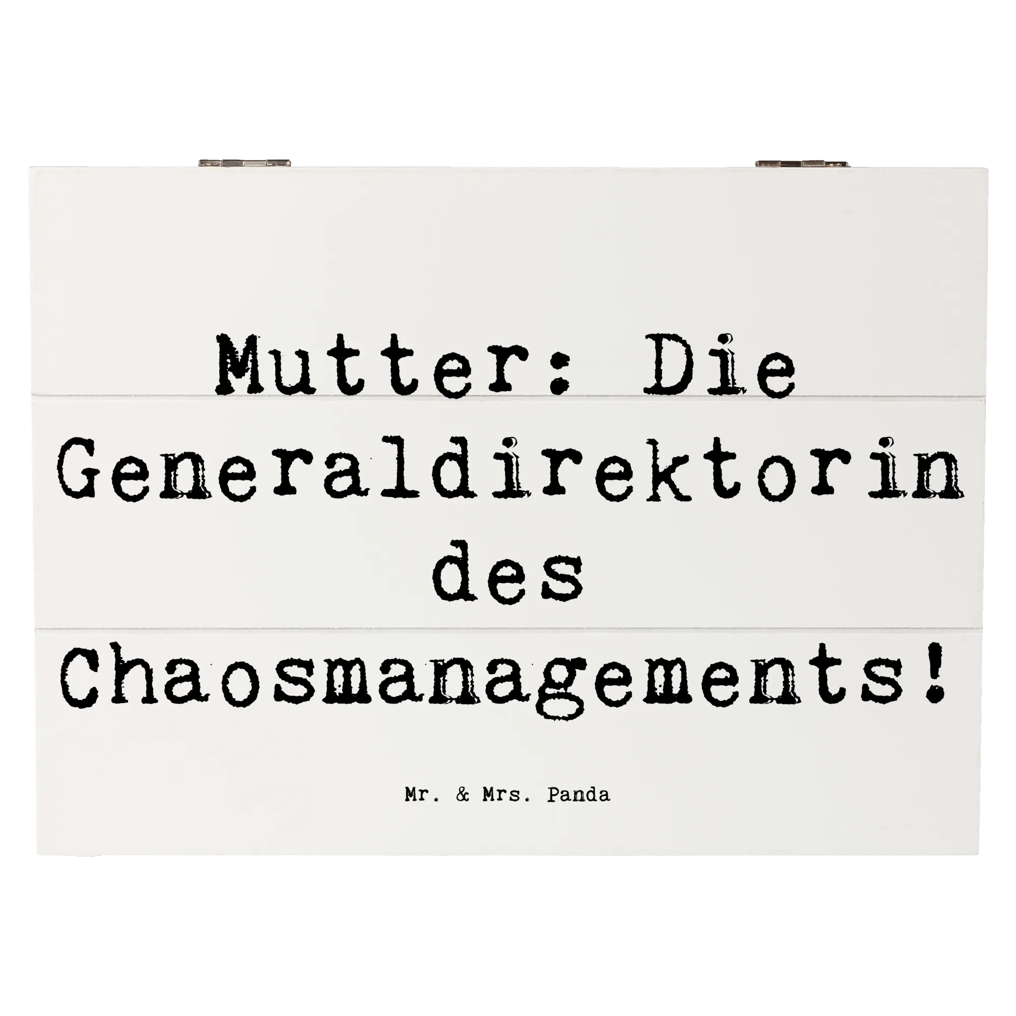 Die wunderschöne Holzkiste von Mr. & Mrs. Panda mit dem Motto 'Mutter: Die Generaldirektorin des Chaosmanagements!' ist das perfekte Geschenk für alle tollen Mütter. Diese praktische und zugleich dekorative Kiste ist nicht nur ein schöner Aufbewahrungsort für Erinnerungen, sondern auch eine liebevolle Hommage an die unerschütterliche Liebe und Fürsorge, die eine Mutter ihrem Kind schenkt.