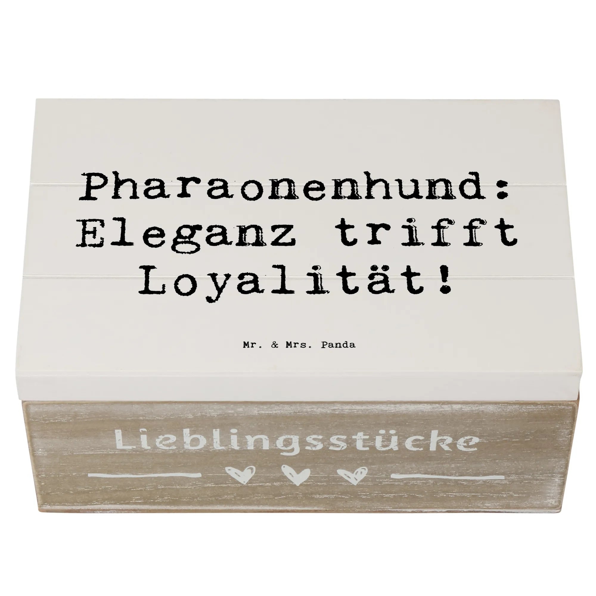 Das bezaubernde Motiv des Pharaonenhundes, das mit dem Spruch 'Pharaonenhund: Eleganz trifft Loyalität!' versehen ist, sorgt für ein Lächeln bei jedem, der sie sieht. Die Hunderassen Kollektion von Mr. & Mrs. Panda umfasst liebevoll gestaltete Designs, die das Herz jedes Hundeliebhabers höherschlagen lassen. Diese Kiste ist nicht nur ein praktisches Aufbewahrungsobjekt, sondern wird auch zum Blickfang in jedem Raum.