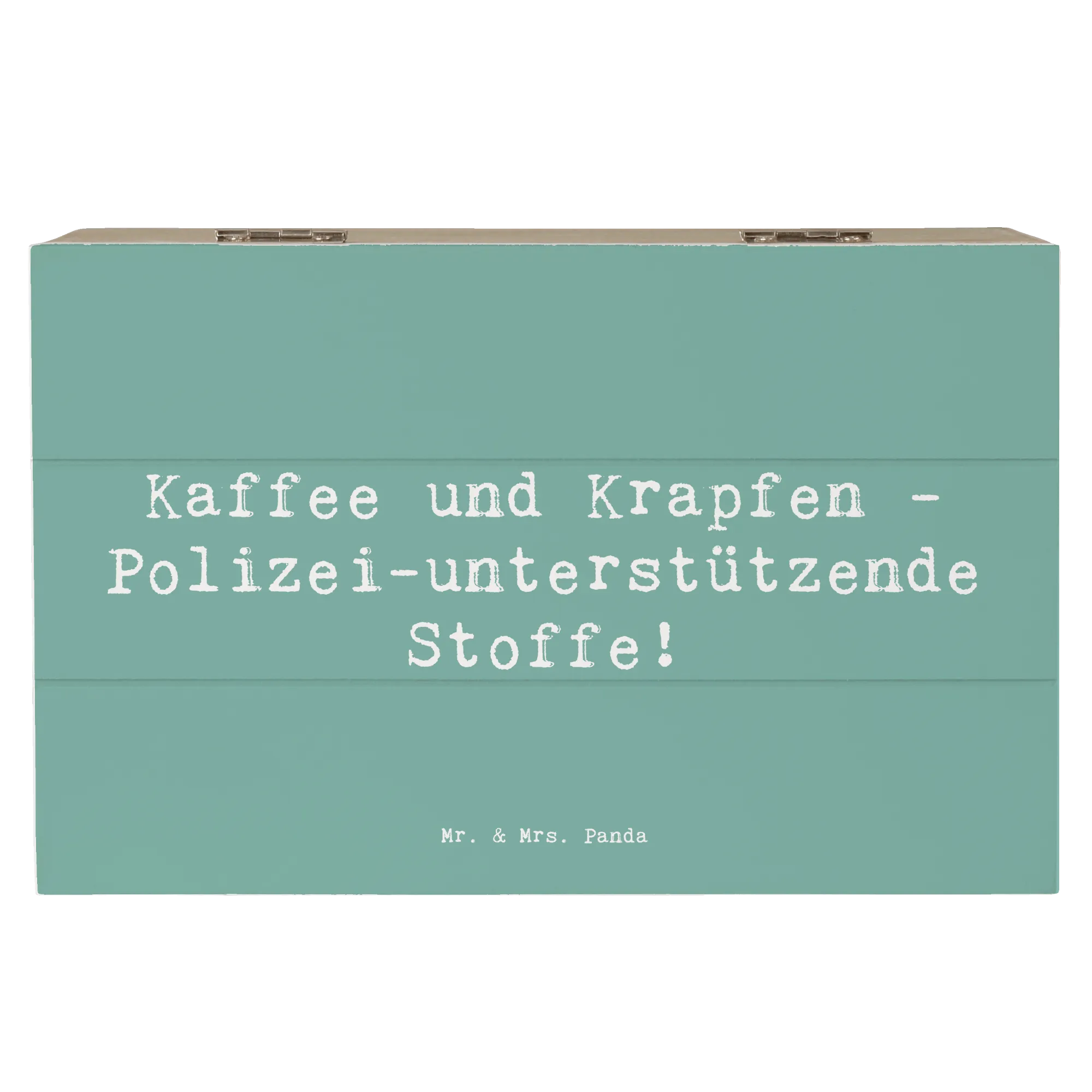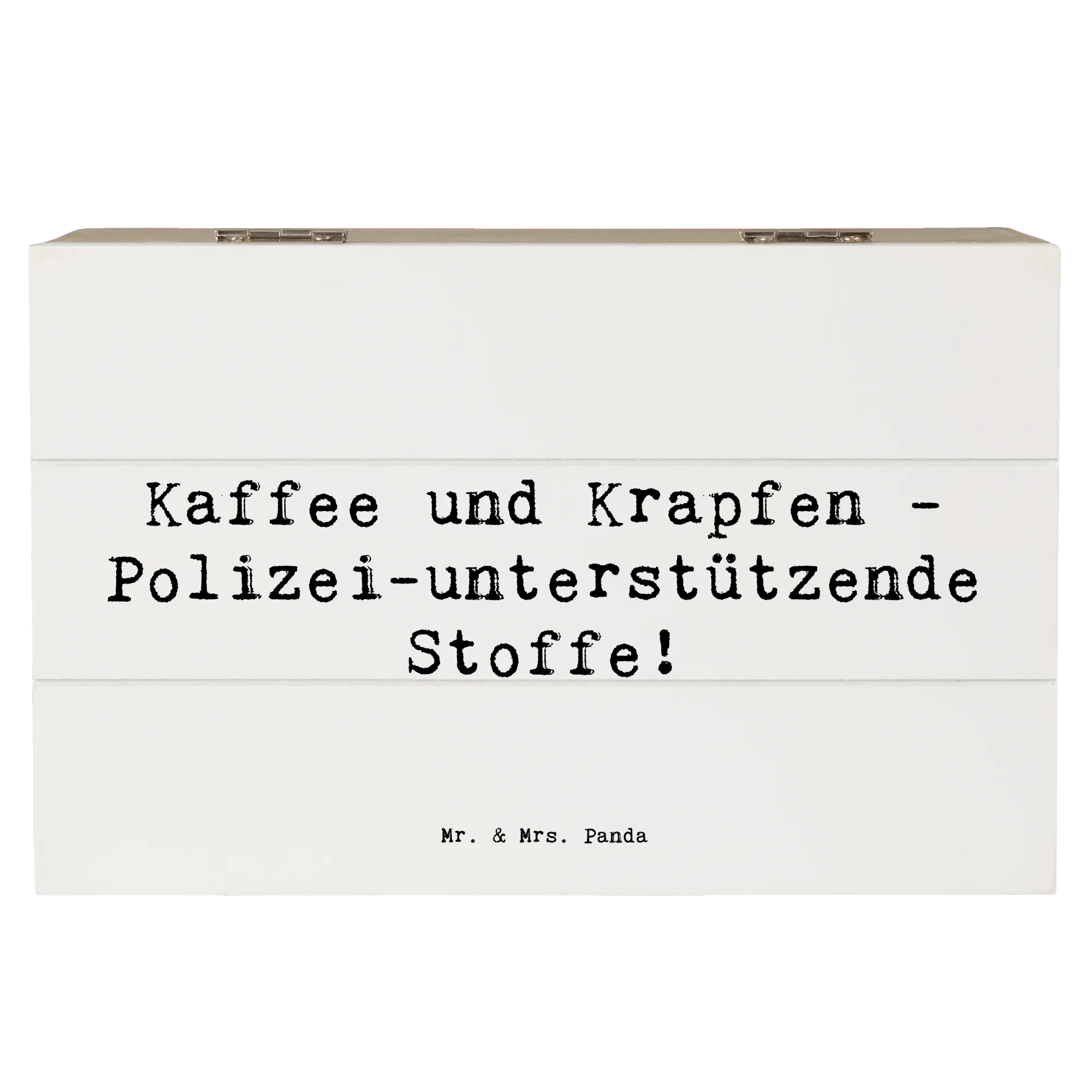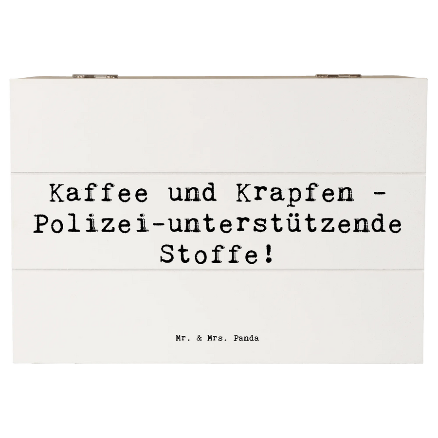 Die wunderschöne Holzkiste mit dem Polizisten-Motiv von Mr. & Mrs. Panda ist das perfekte Geschenk für alle, die den Beruf des Polizisten würdigen oder lieben. Mit einem charmanten Spruch "Kaffee und Krapfen - Polizei-unterstützende Stoffe!" bringt diese Kiste Freude in jedes Zuhause.