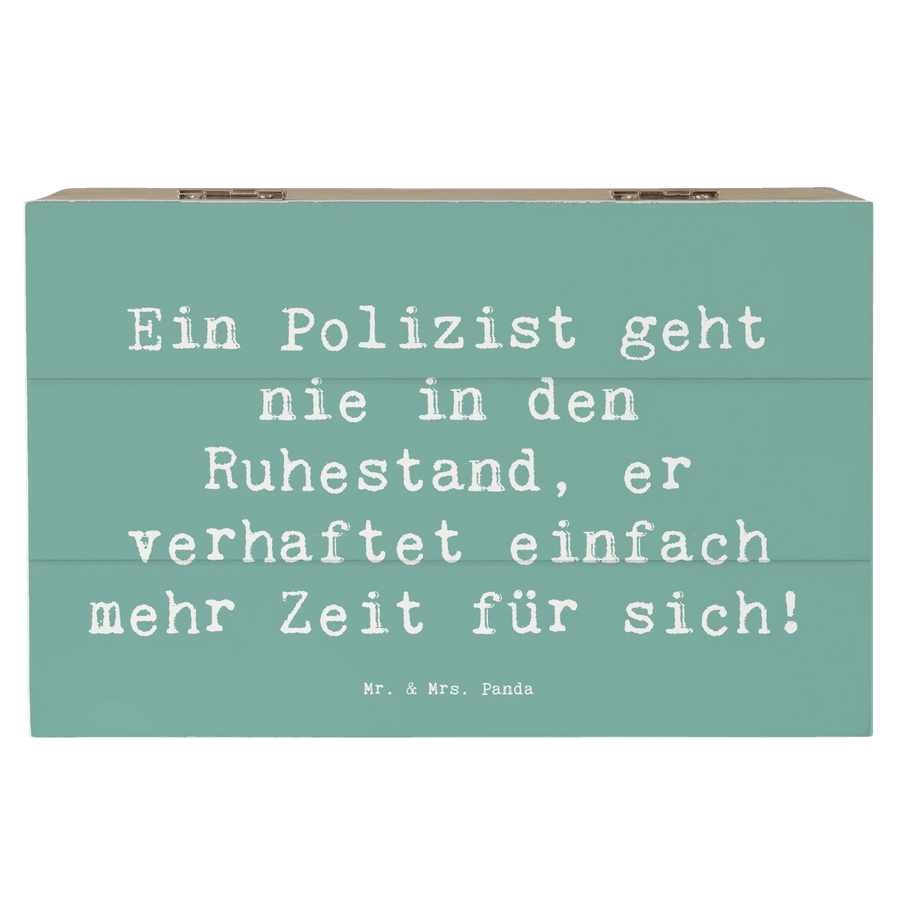 Entdecke die wunderbare Holzkiste von Mr. & Mrs. Panda mit dem süßen Motiv eines Polizisten und dem Spruch "Ein Polizist geht nie in den Ruhestand, er verhaftet einfach mehr Zeit für sich!".