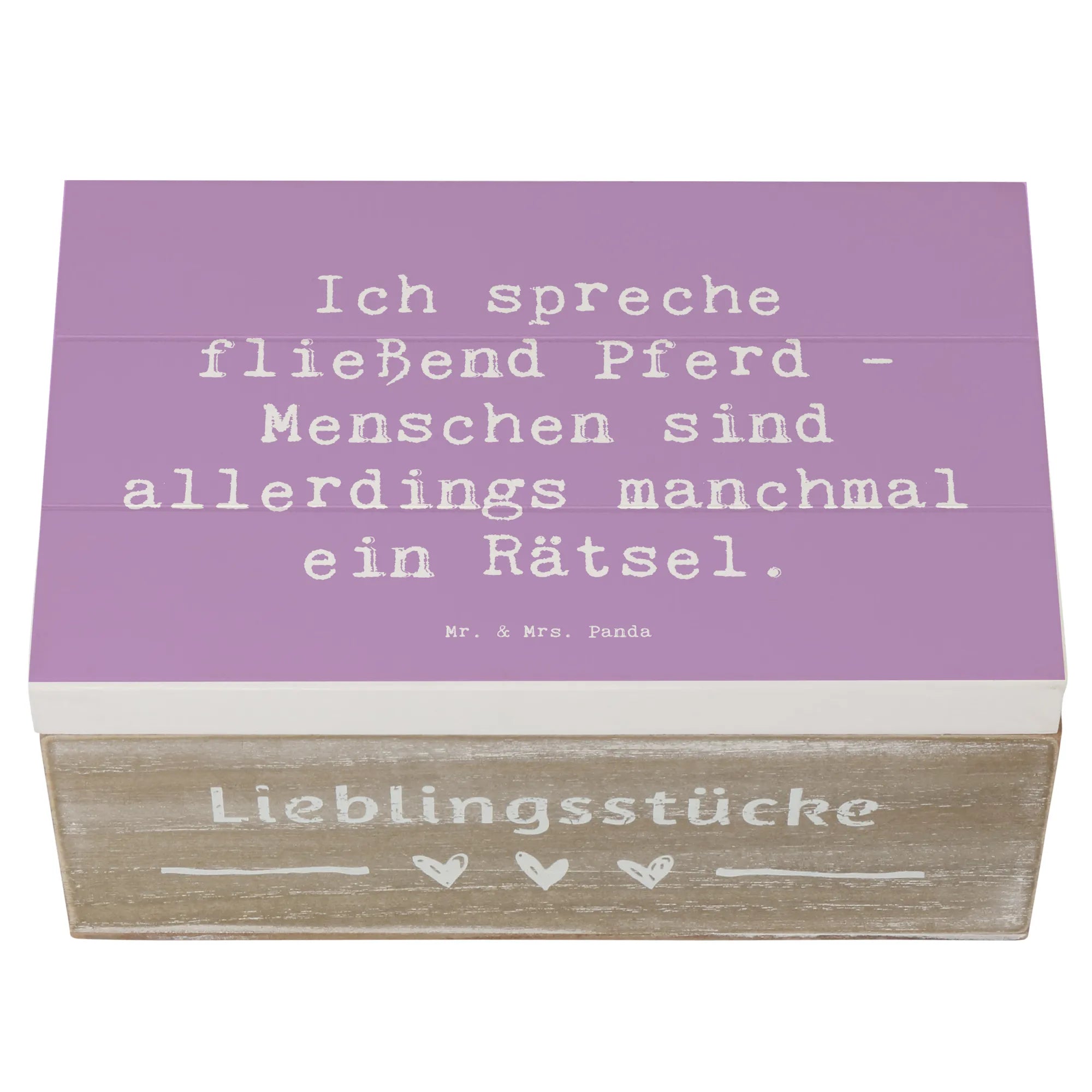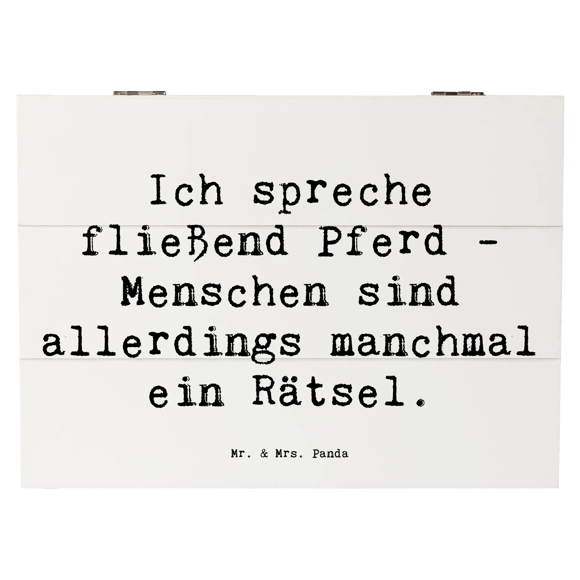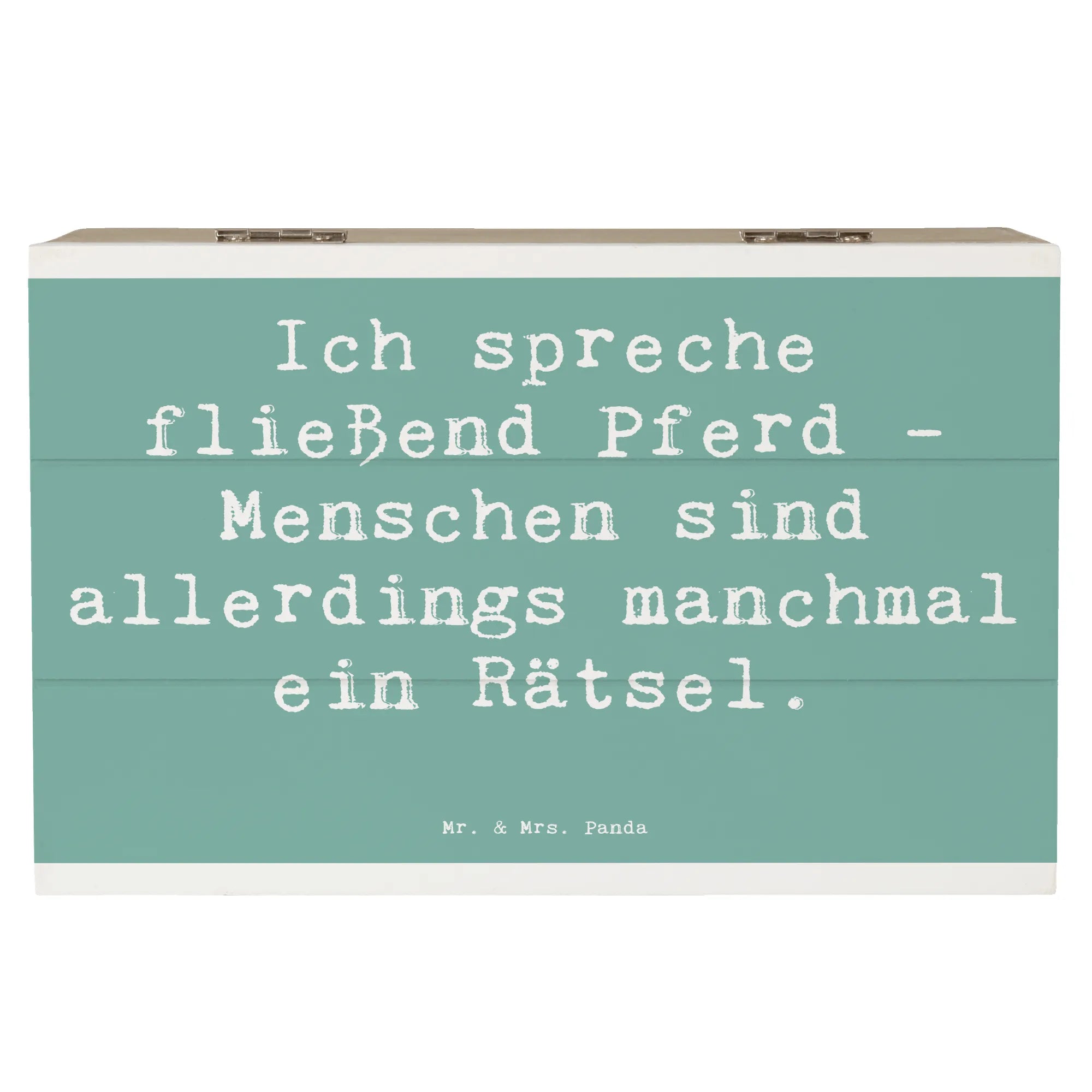 Die wunderschöne Holzkiste von Mr. & Mrs. Panda ist nicht nur ein einfaches Aufbewahrungsobjekt, sondern ein echtes Liebhaberstück für alle Pferdefans! Mit dem liebevollen Spruch "Ich spreche fließend Pferd - Menschen sind allerdings manchmal ein Rätsel." wird diese Kiste schnell zum besonderen Highlight in deinem Zuhause.