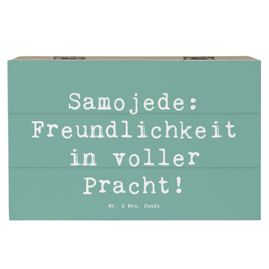 Diese wunderschöne Holzkiste von Mr. & Mrs. Panda ist der perfekte Aufbewahrungsort für all deine wertvollen Schätze! Mit dem niedlichen Motiv des Samojede, das mit dem Spruch "Samojede: Freundlichkeit in voller Pracht!" verziert ist, bringt diese Kiste nicht nur einen Hauch von Liebe in dein Zuhause, sondern ist auch eine ganz besondere Erinnerungskiste für verschiedene Anlässe.