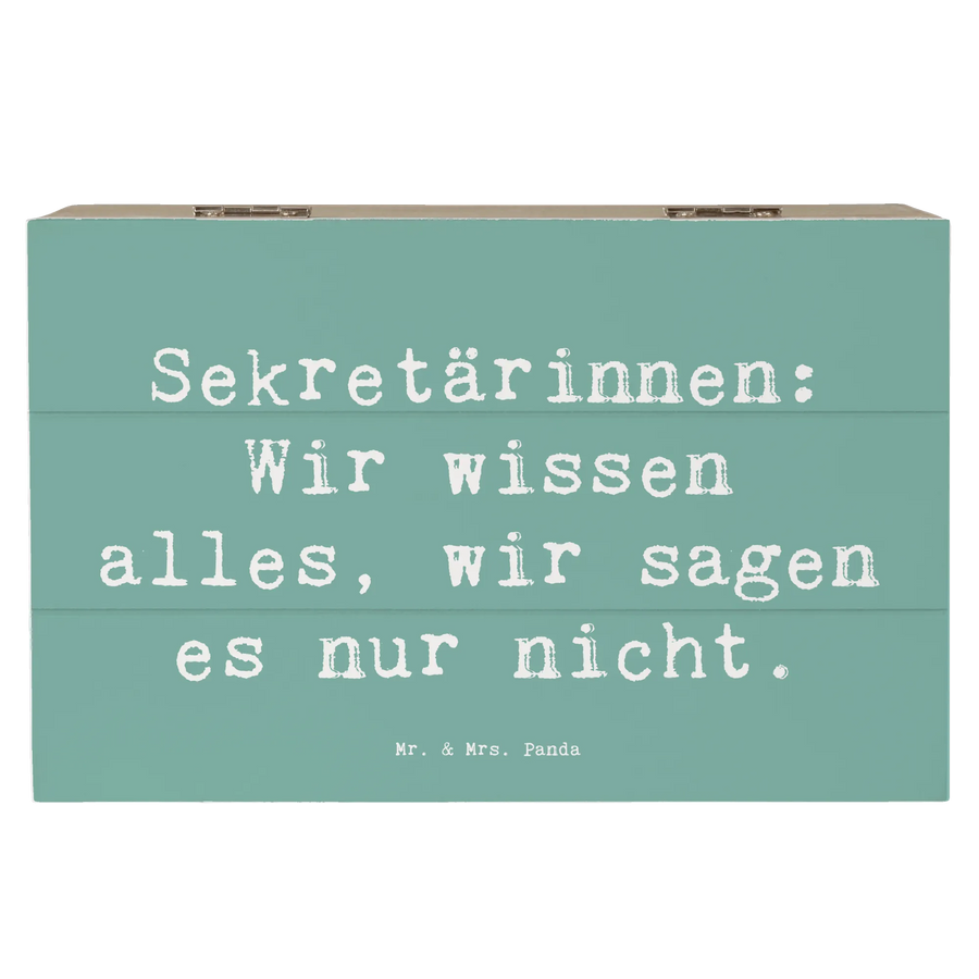 Die wunderschöne Holzkiste von Mr. & Mrs. Panda ist der perfekte Aufbewahrungsort für all deine wertvollen Erinnerungen. Mit einem charmanten Motiv für Sekretärinnen und dem Spruch "Sekretärinnen: Wir wissen alles, wir sagen es nur nicht." ist diese Kiste nicht nur praktisch, sondern auch ein echter Blickfang!